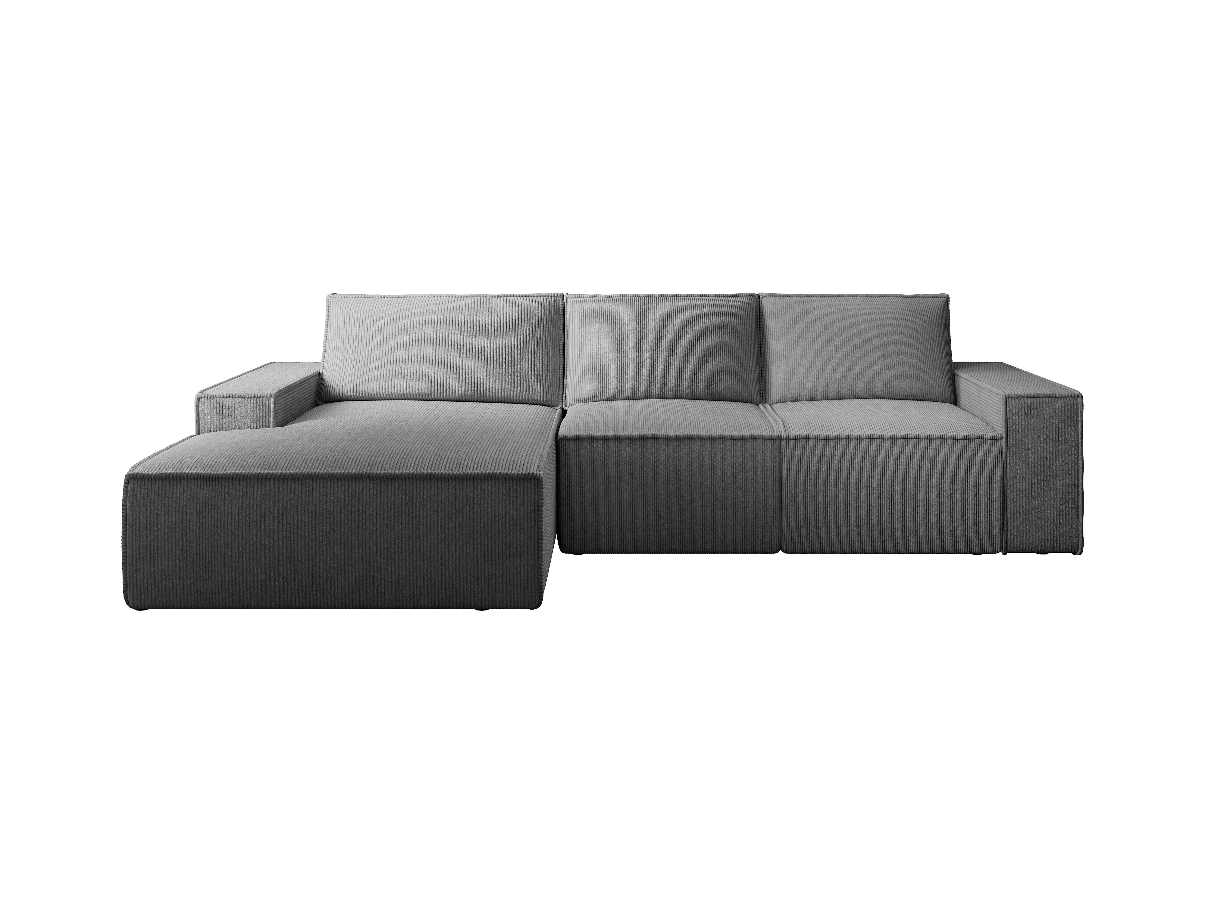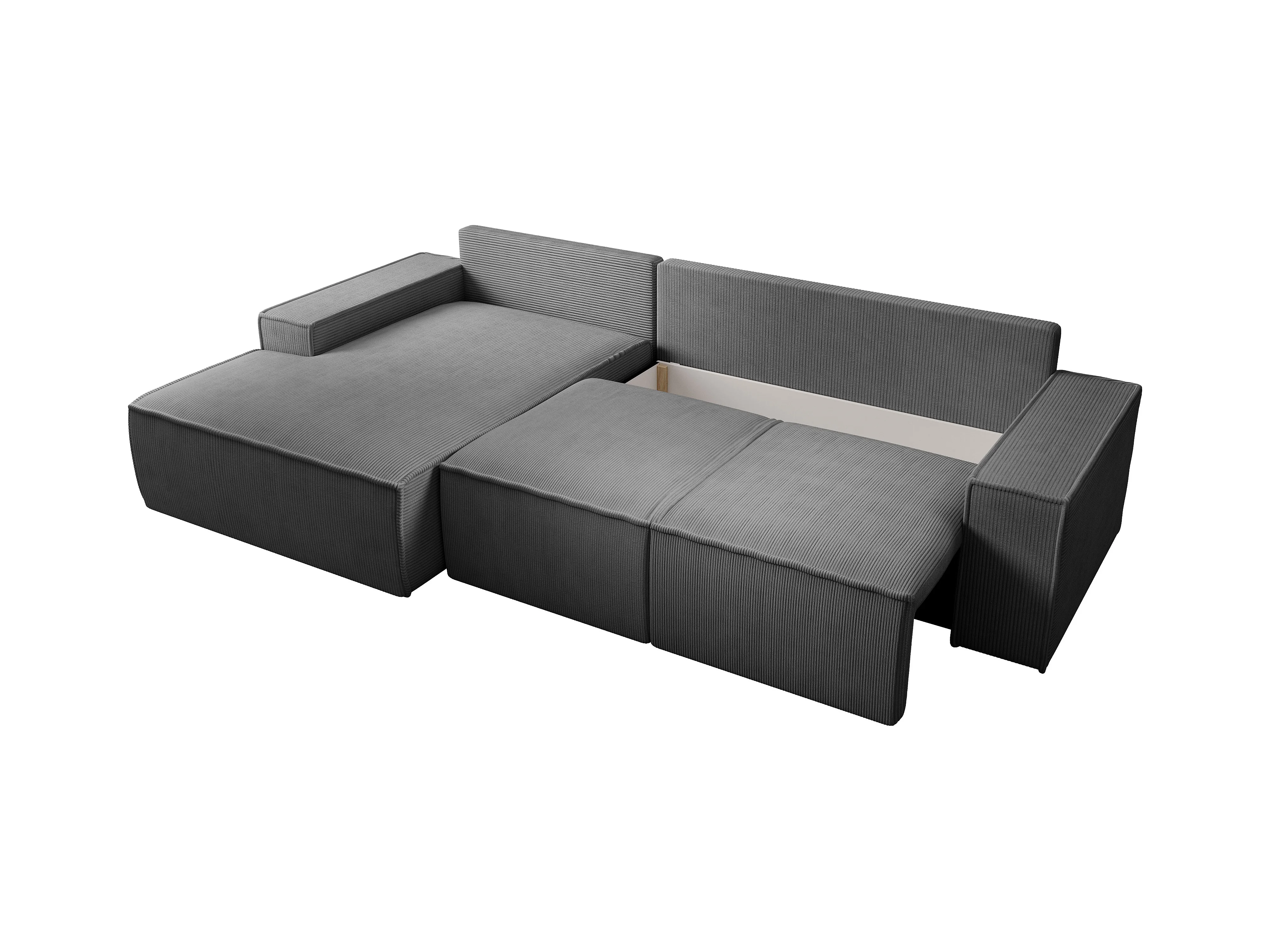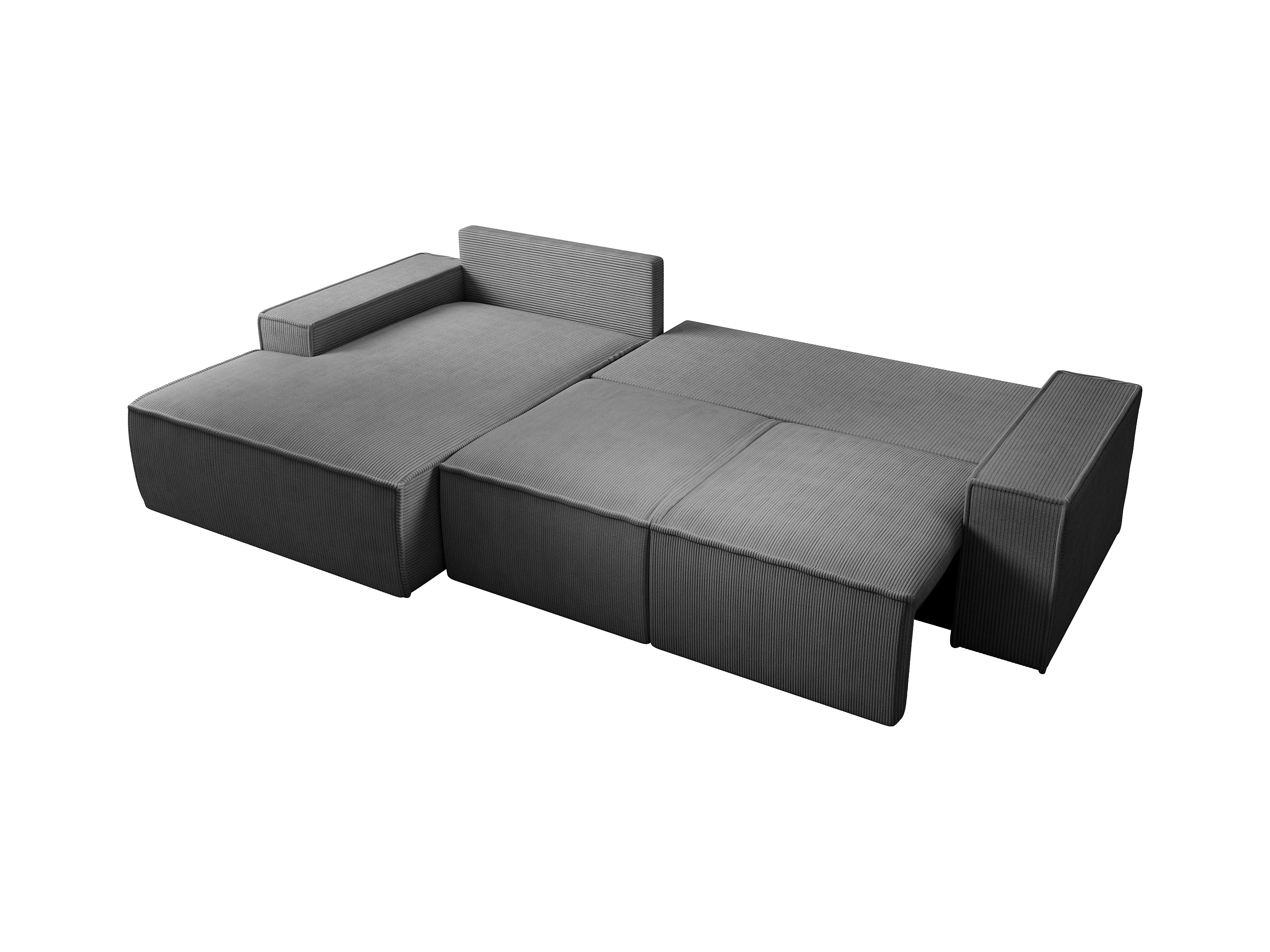 Grand canapé d'angle gauche convertible en velours côtelé gris anthracite AMELIA