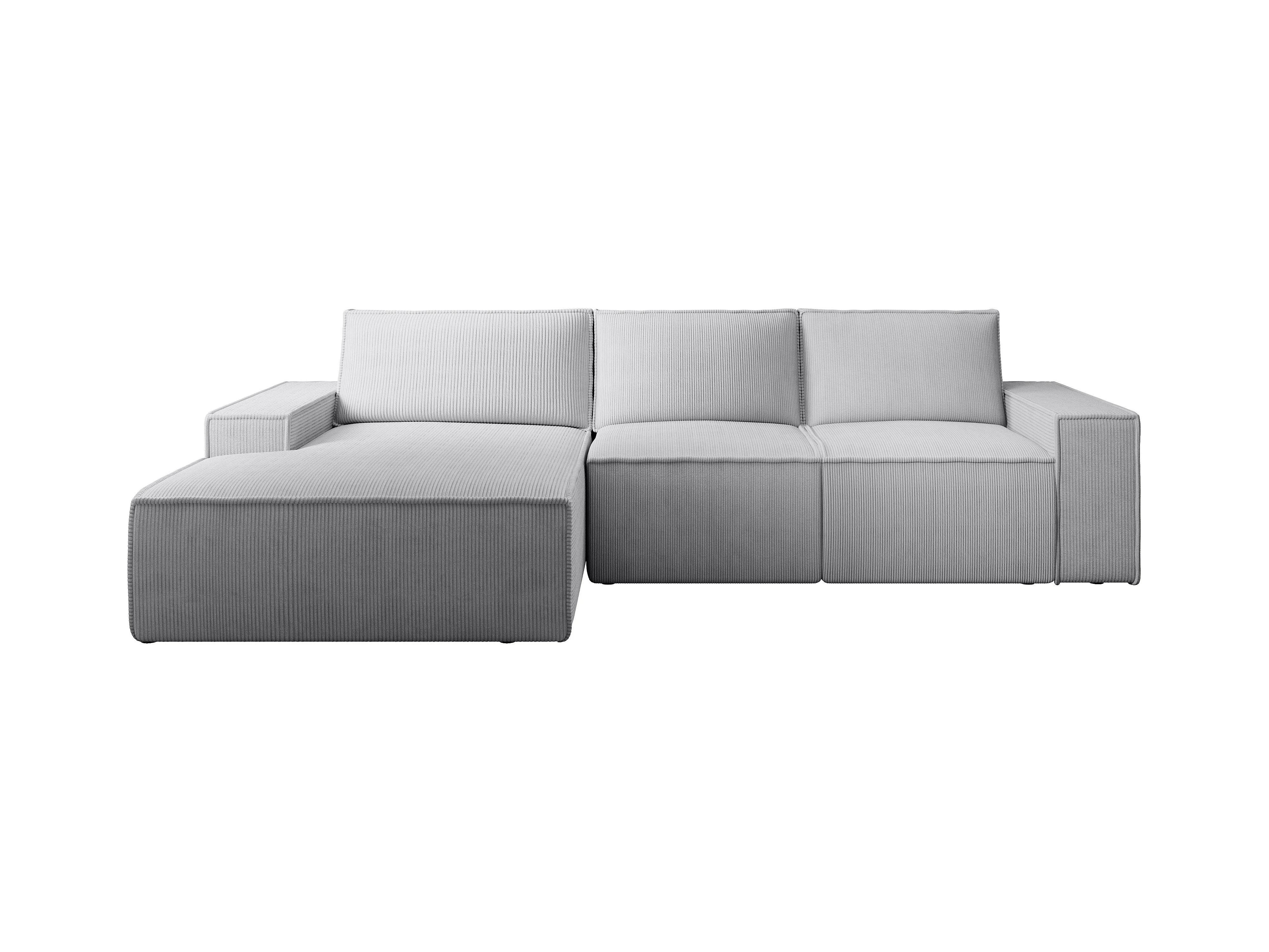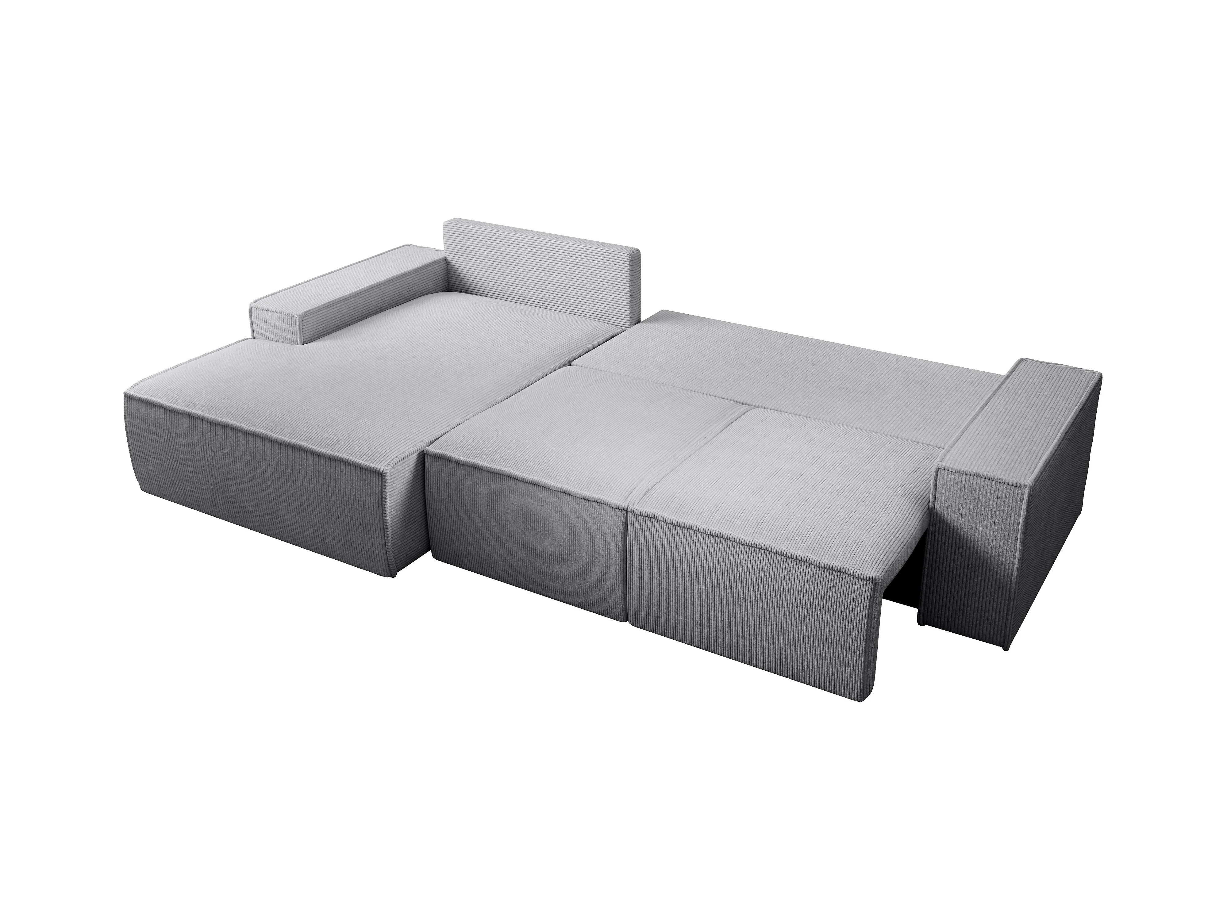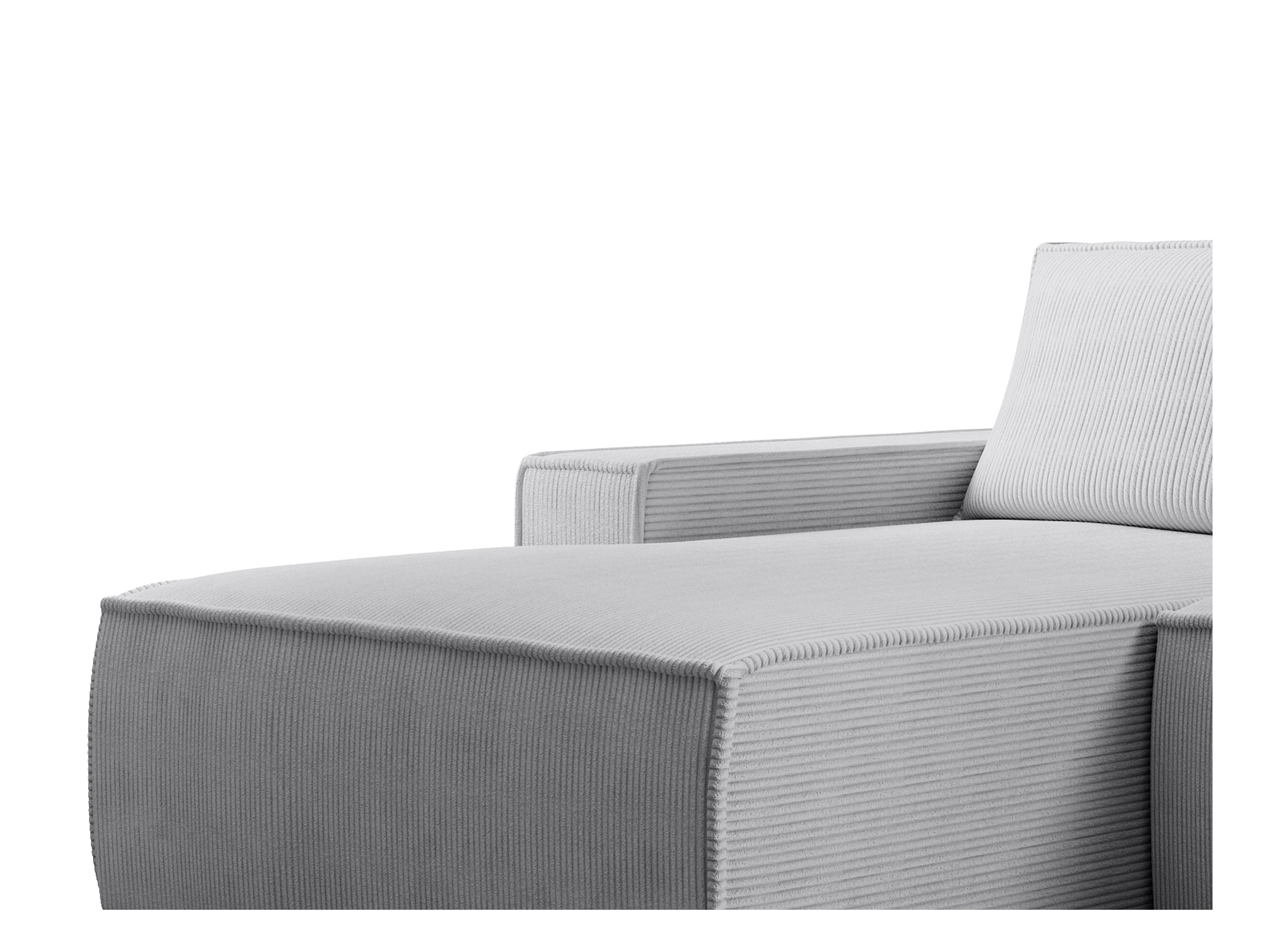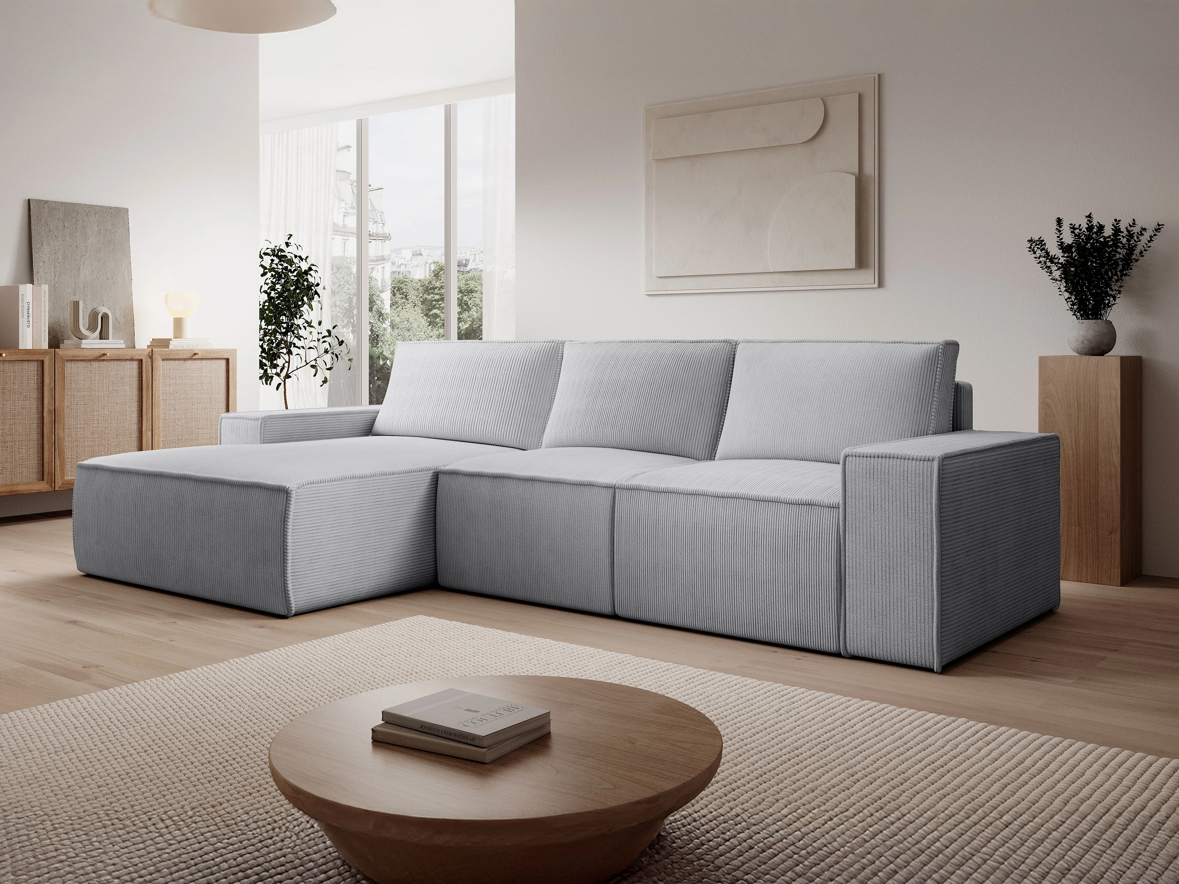Grand canapé d'angle gauche convertible en velours côtelé gris clair AMELIA