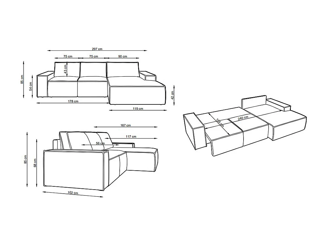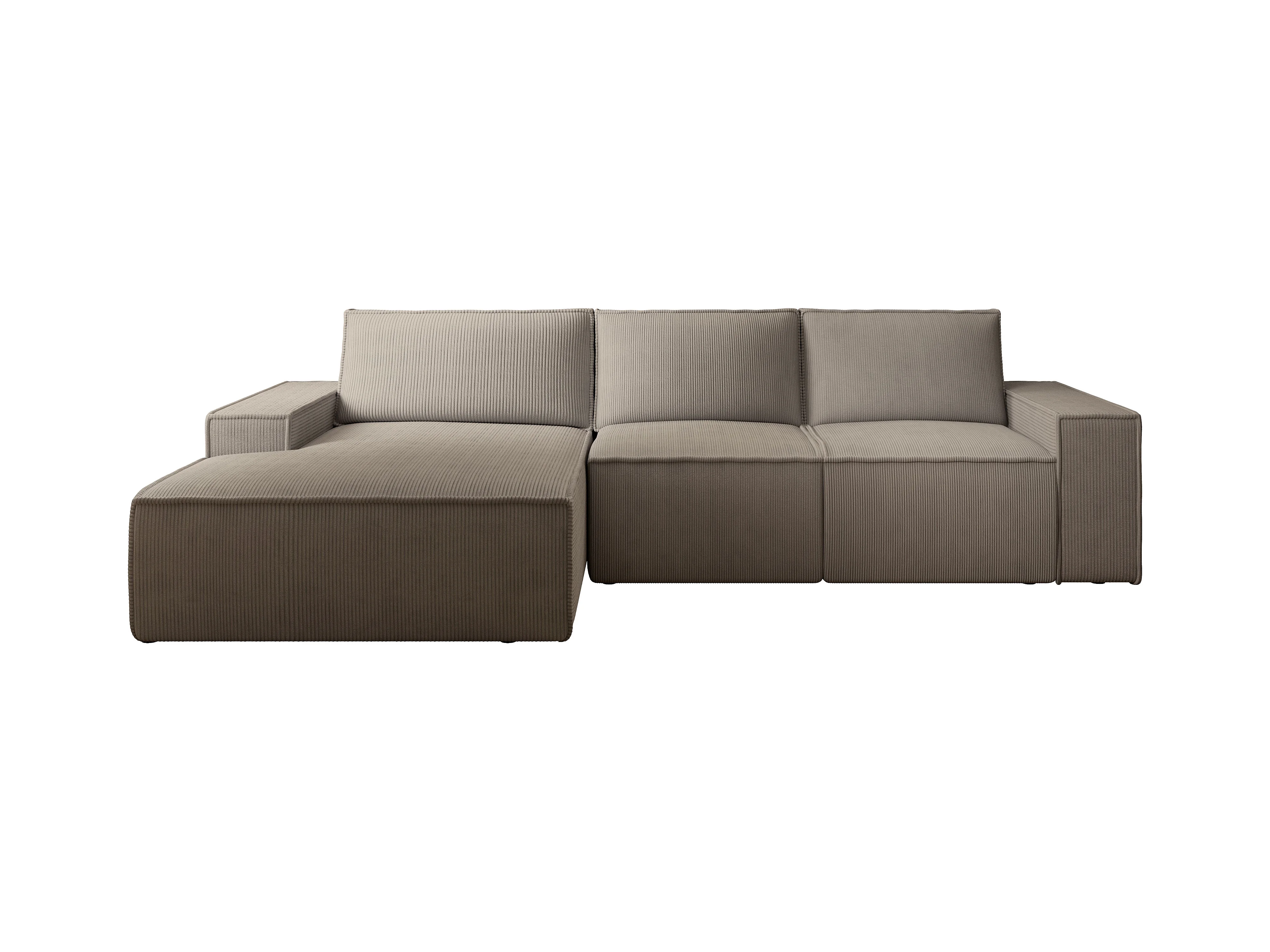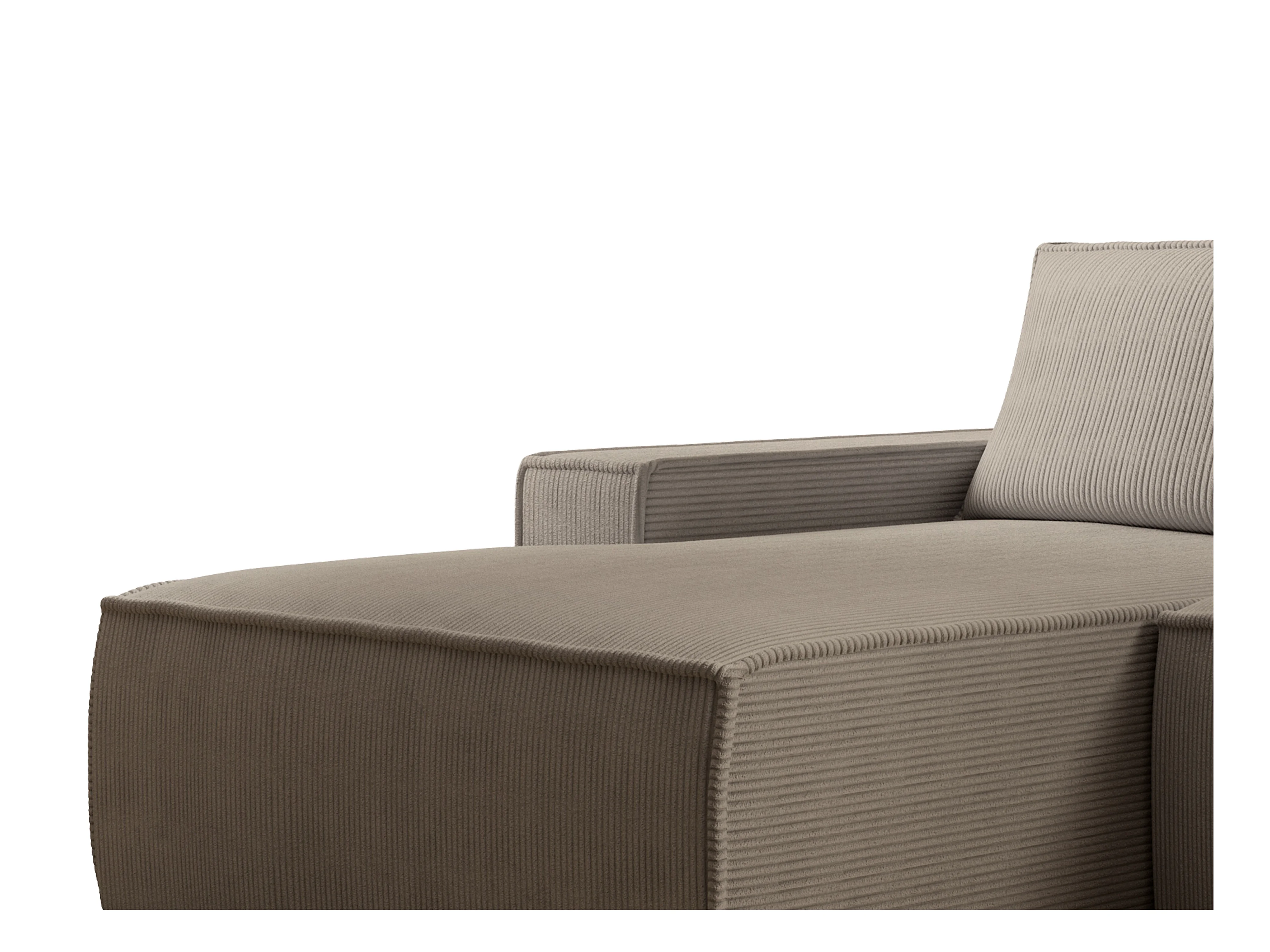Grand canapé d'angle gauche convertible en velours côtelé taupe AMELIA