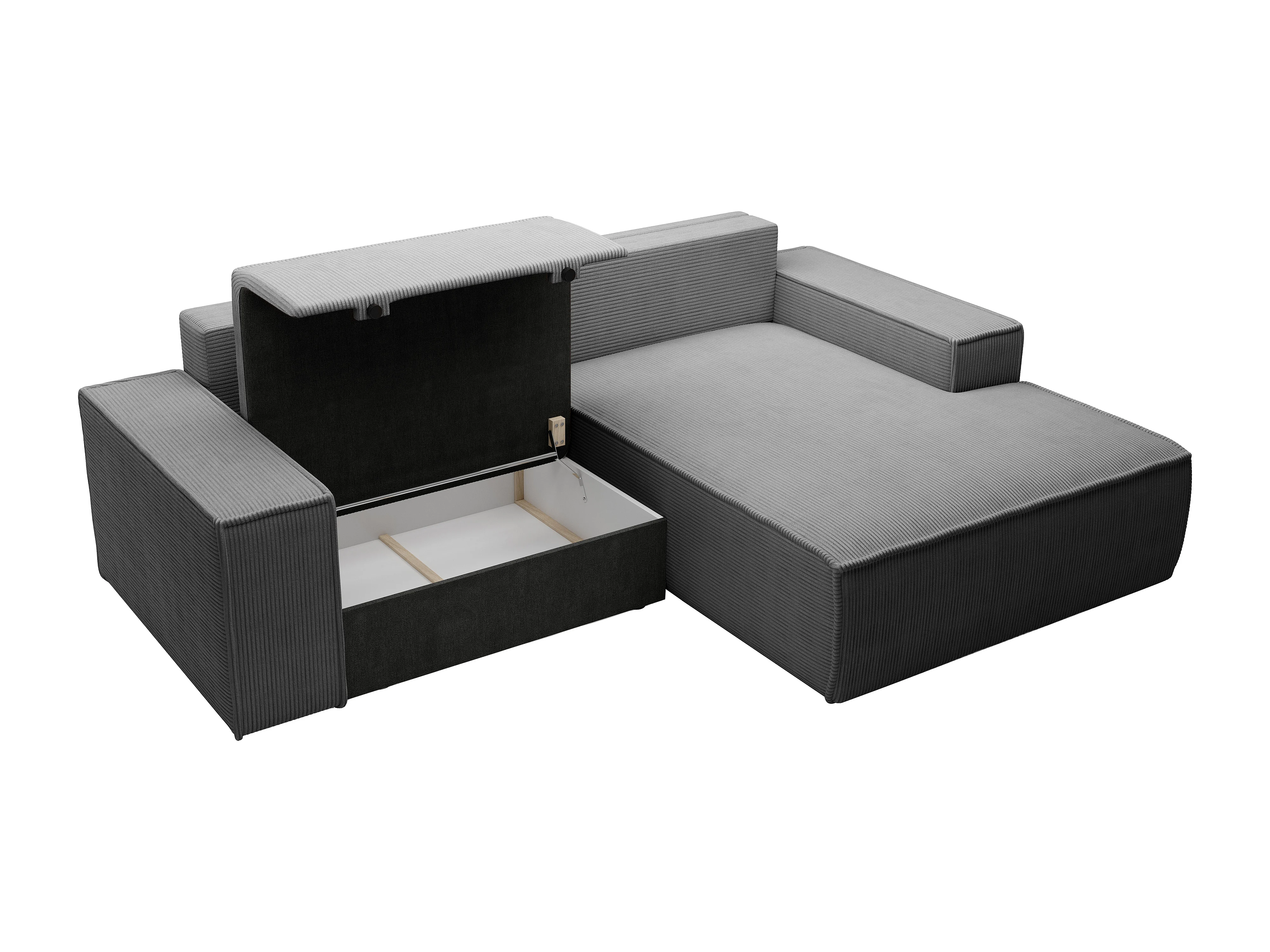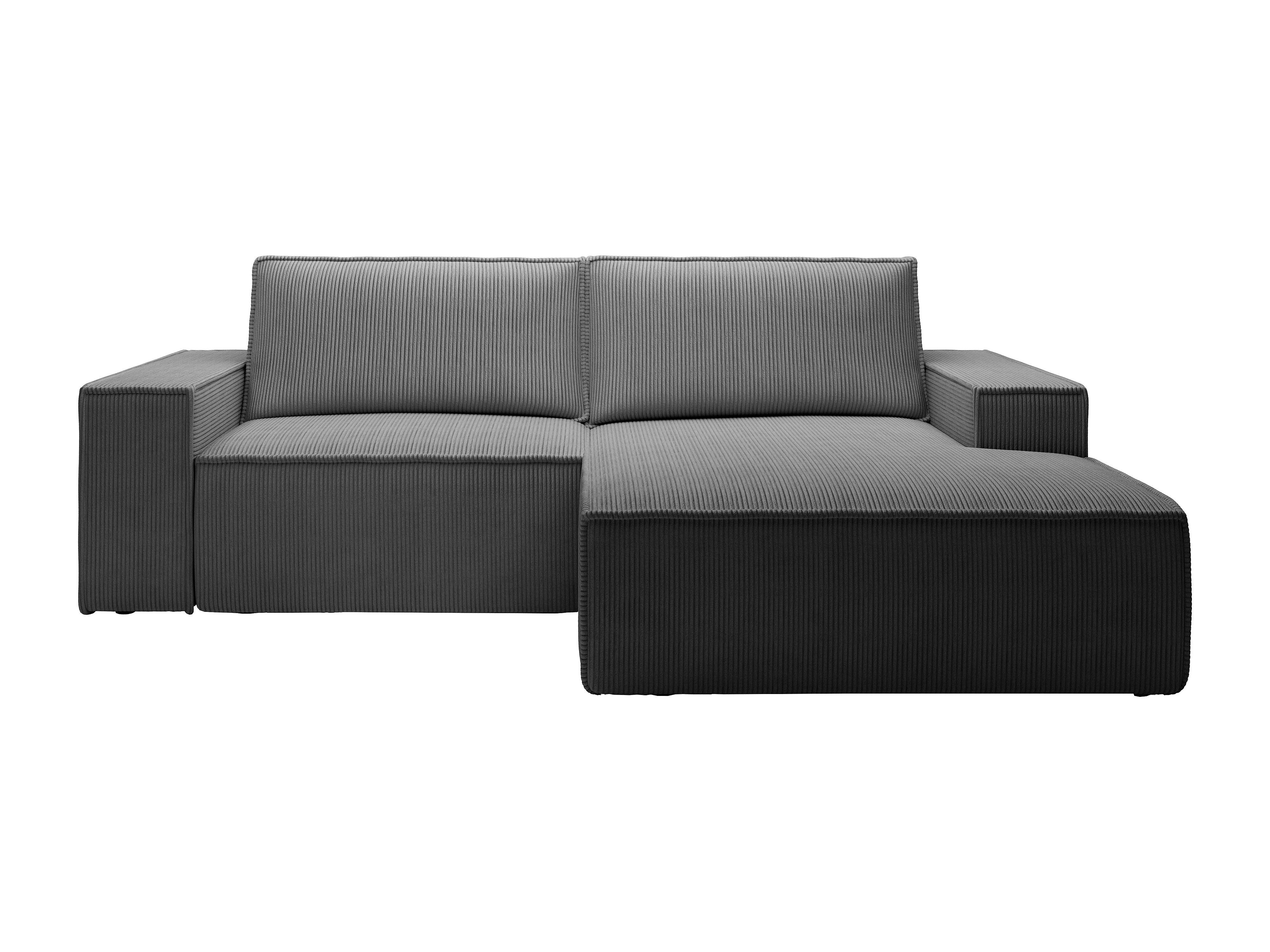 Petit canapé d'angle droit convertible en velours côtelé gris anthracite AMELIA