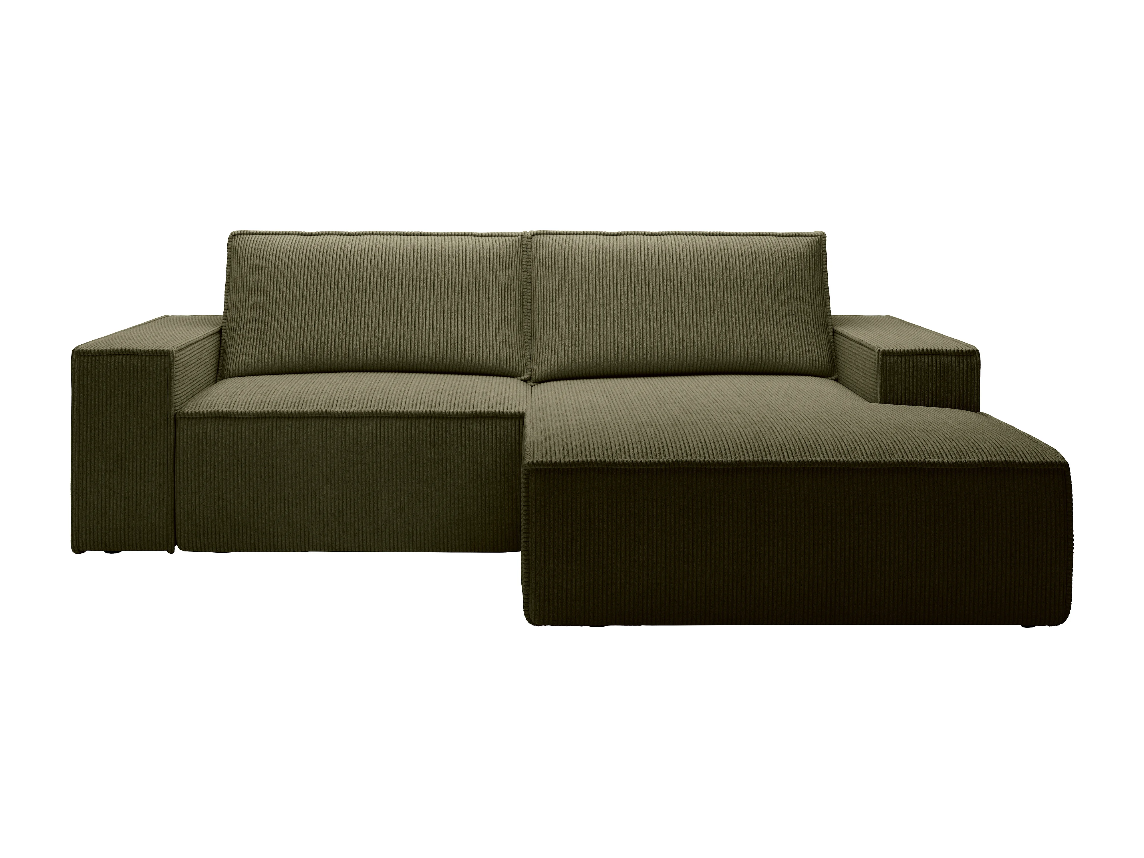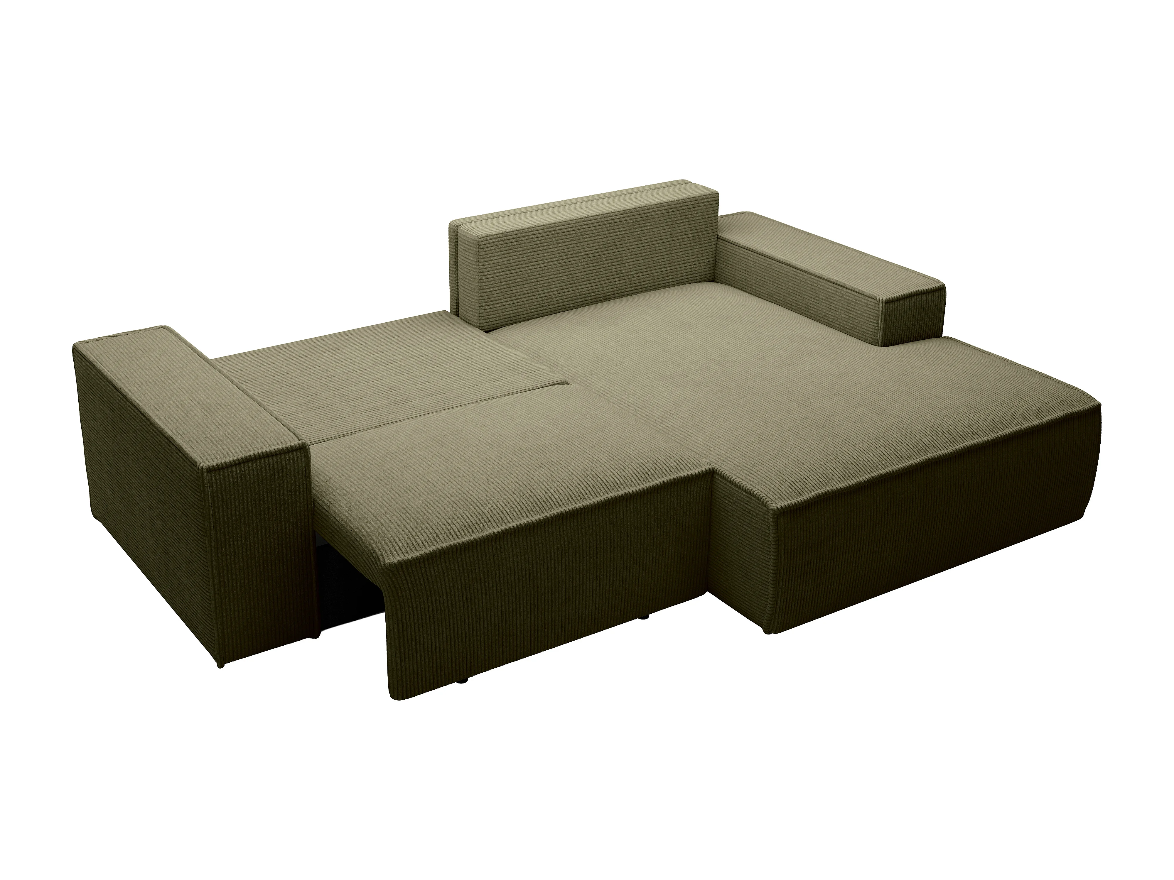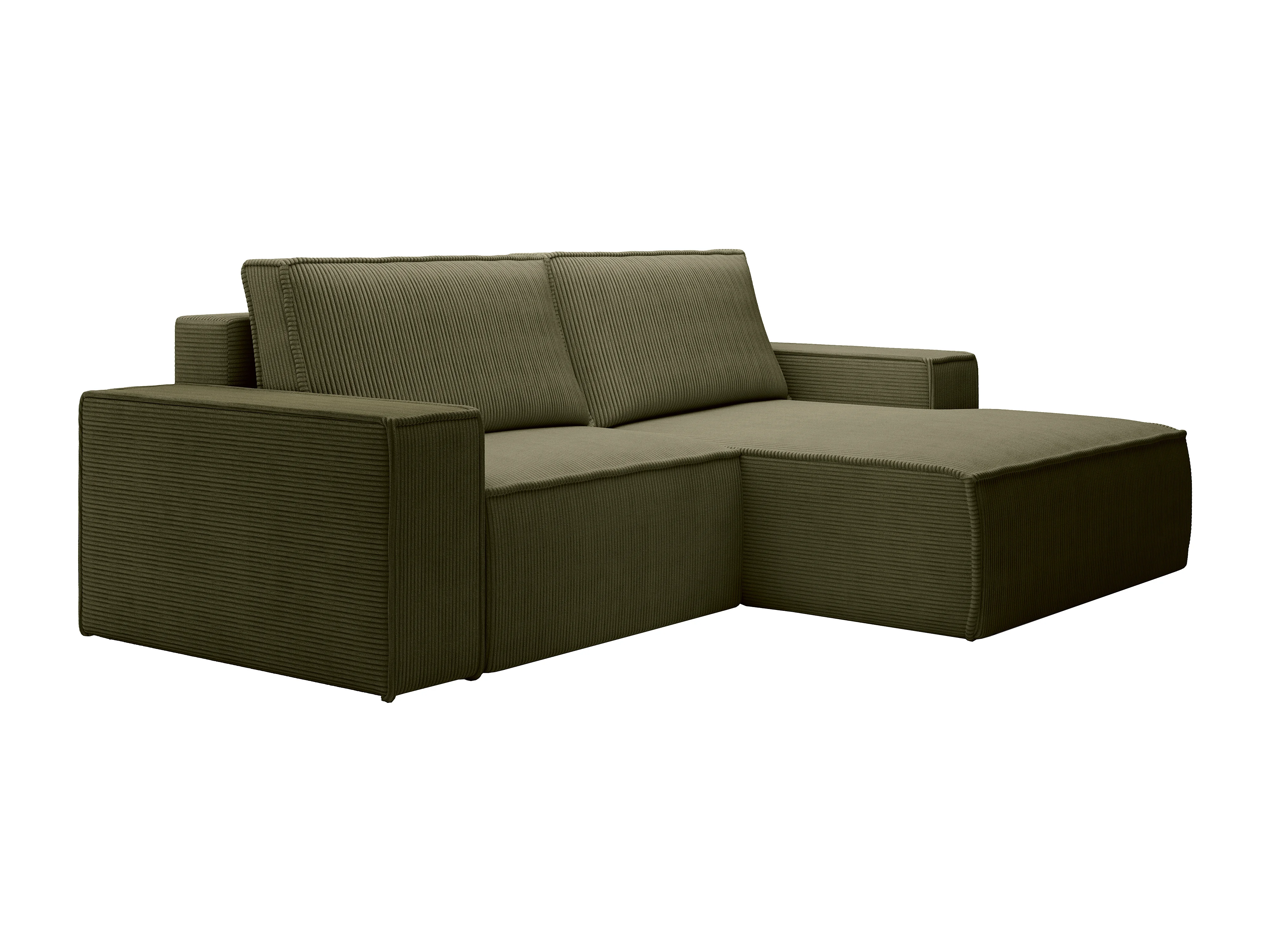 Petit canapé d'angle droit convertible en velours côtelé vert kaki AMELIA