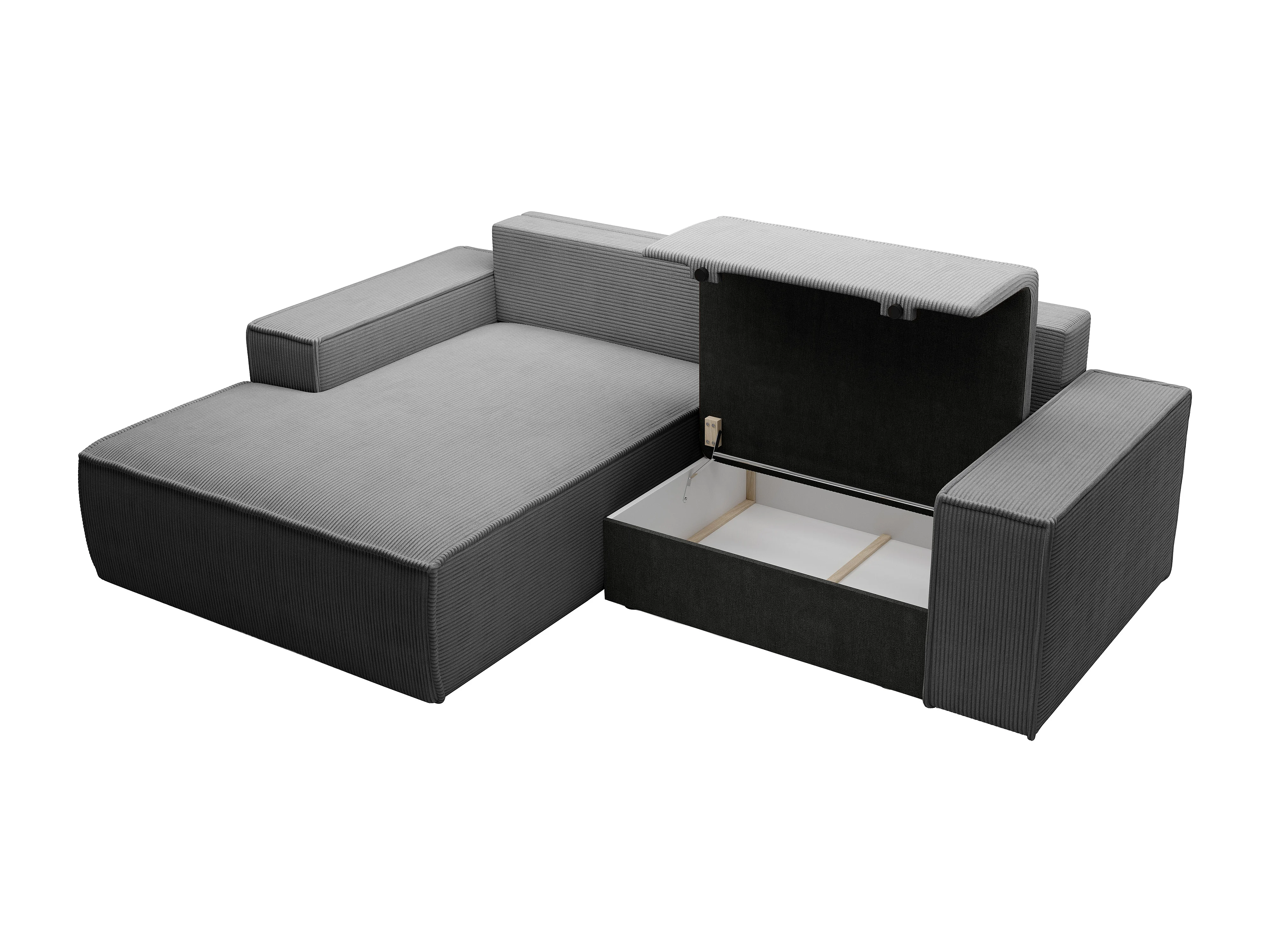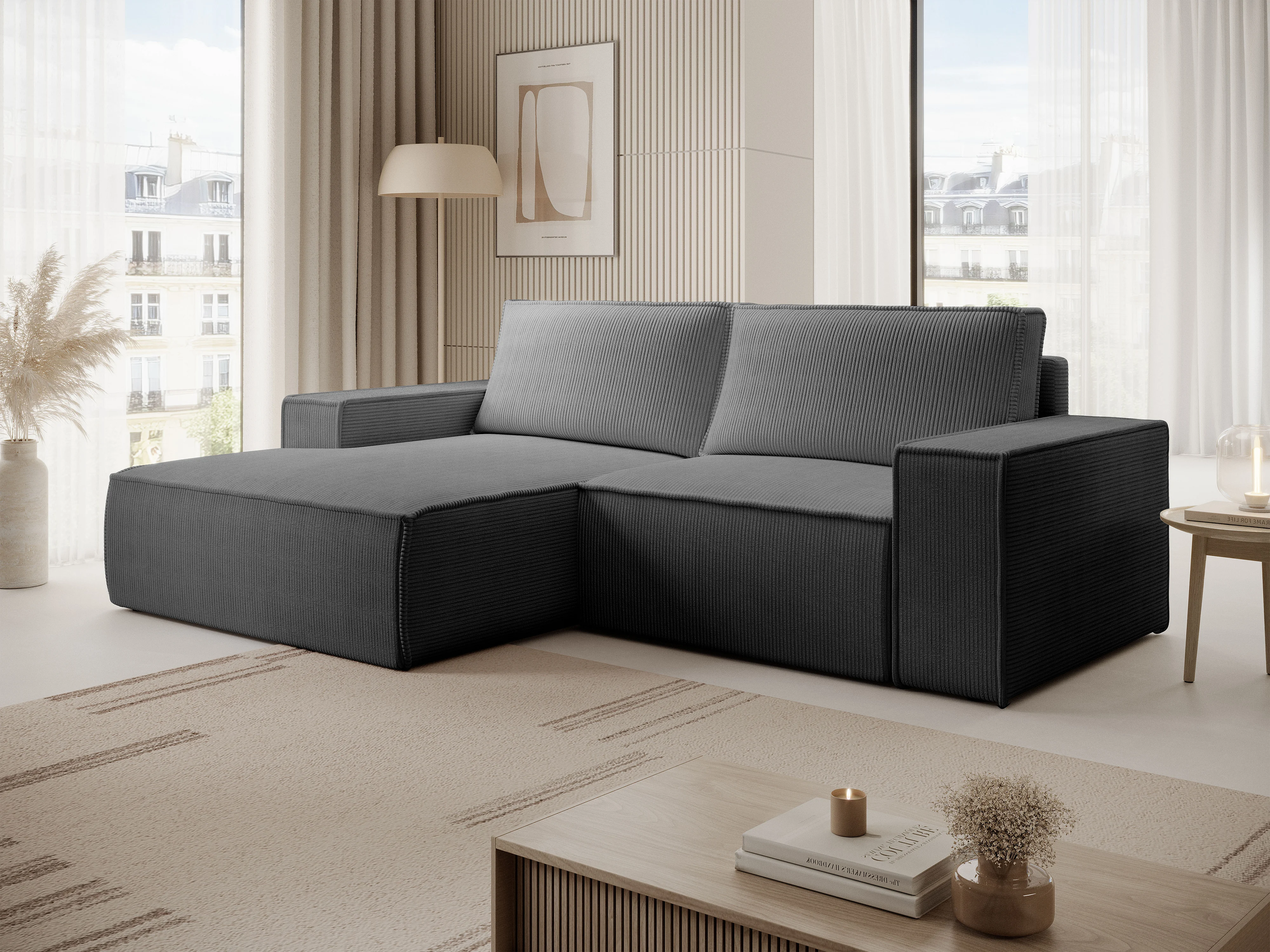 Petit canapé d'angle gauche convertible en velours côtelé gris anthracite AMELIA
