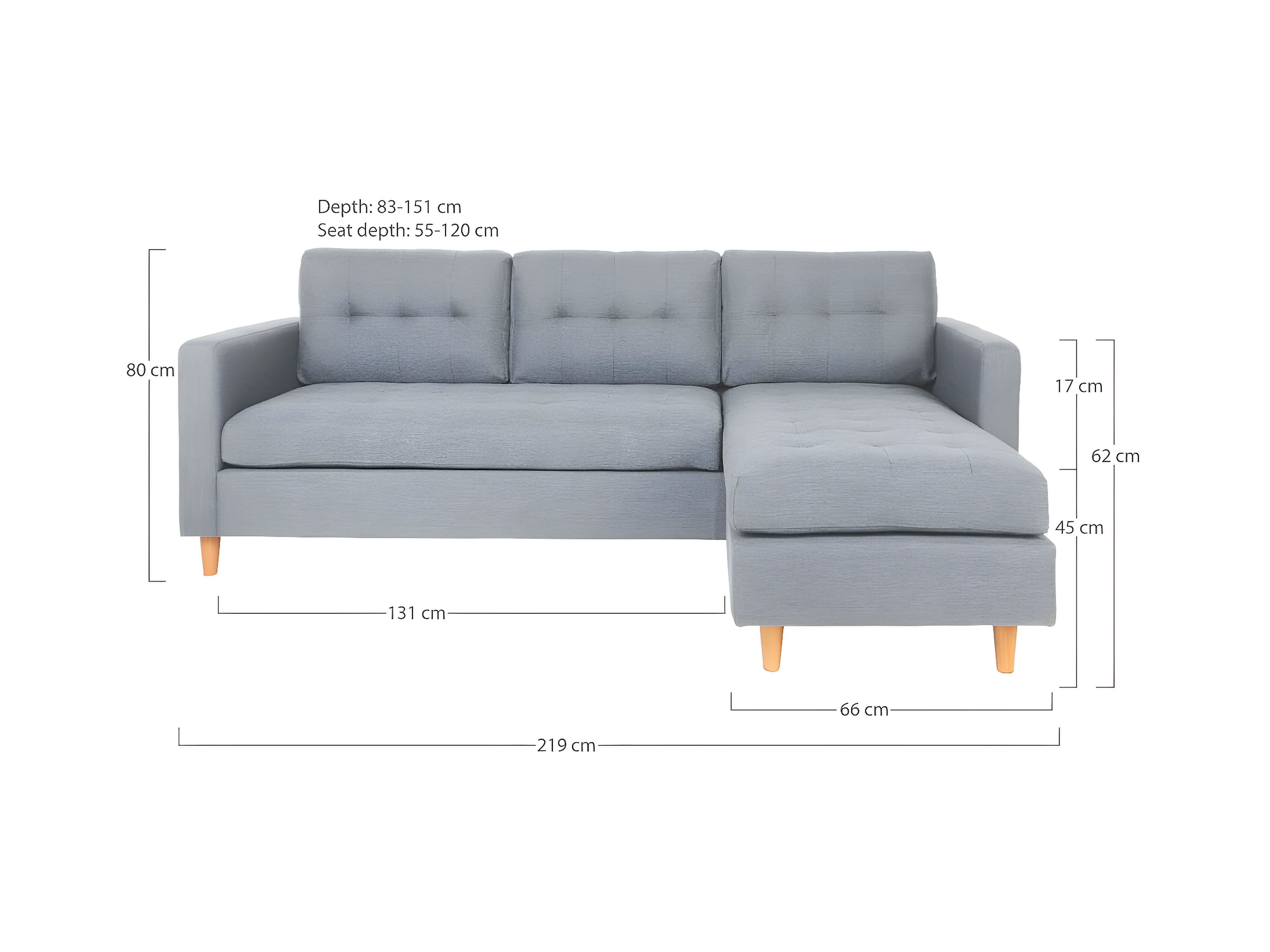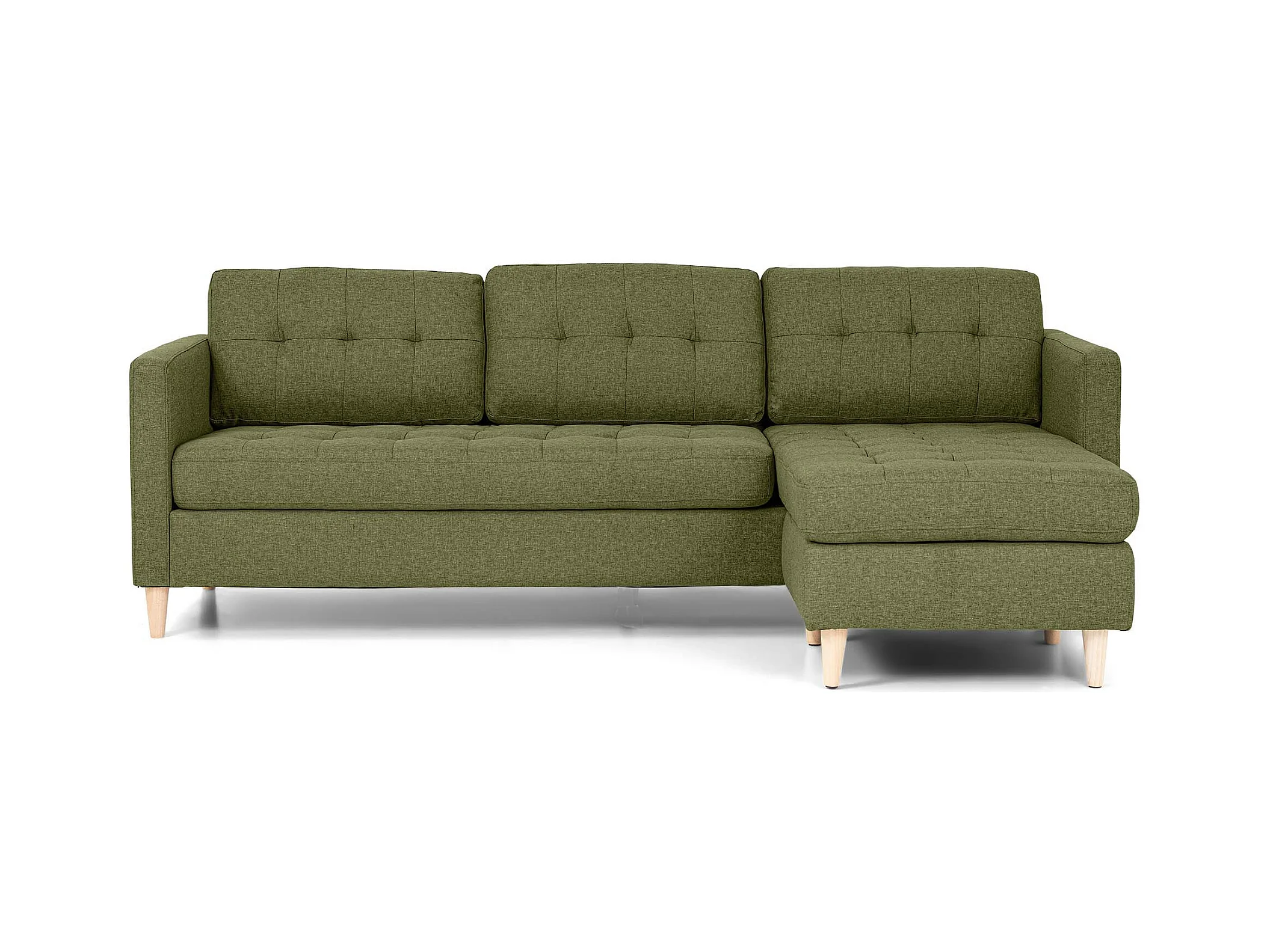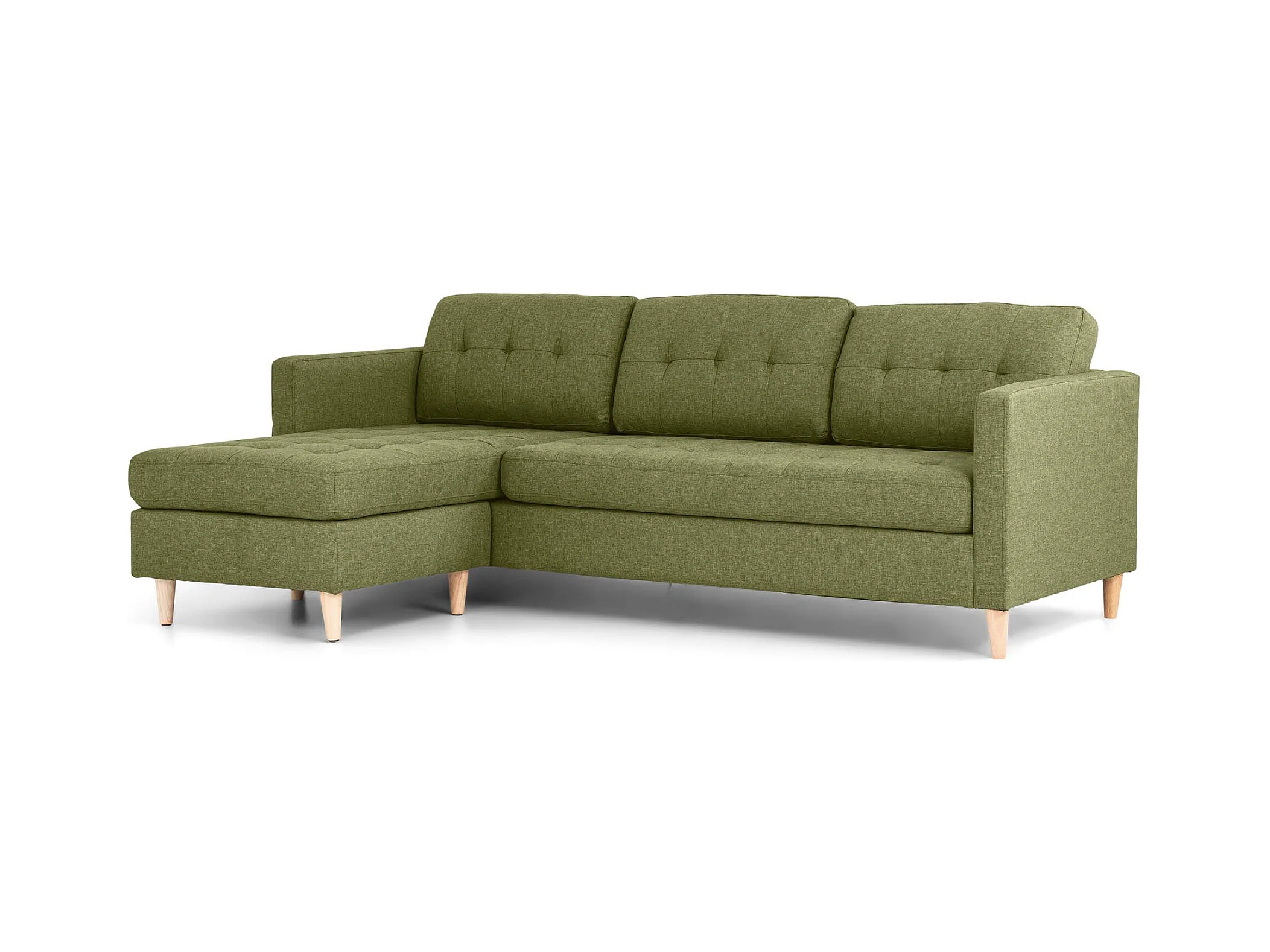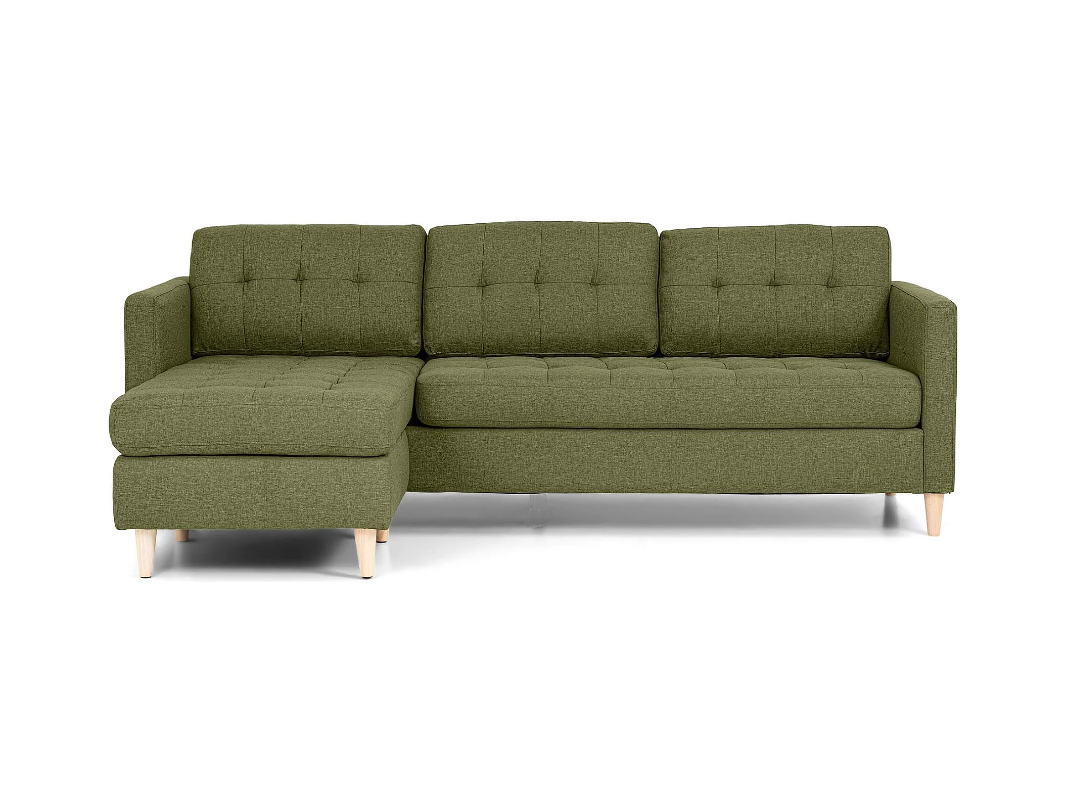 Mars Sofa, Canapé avec chaise longue réversible à droite ou à gauche, en tissu vert avec pieds en bois.
