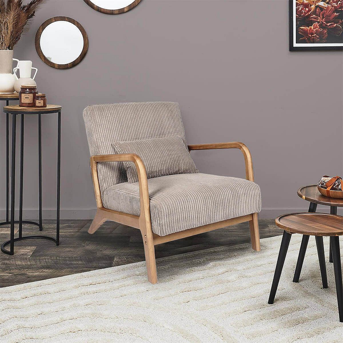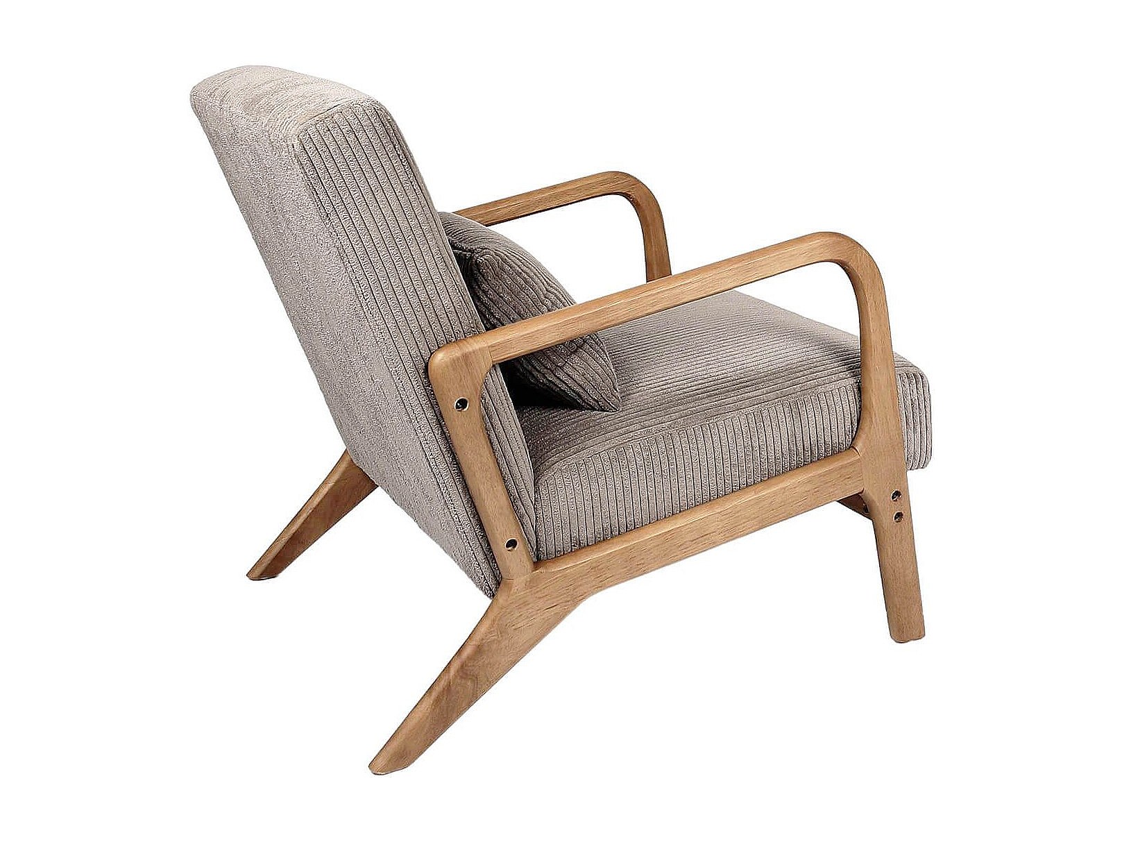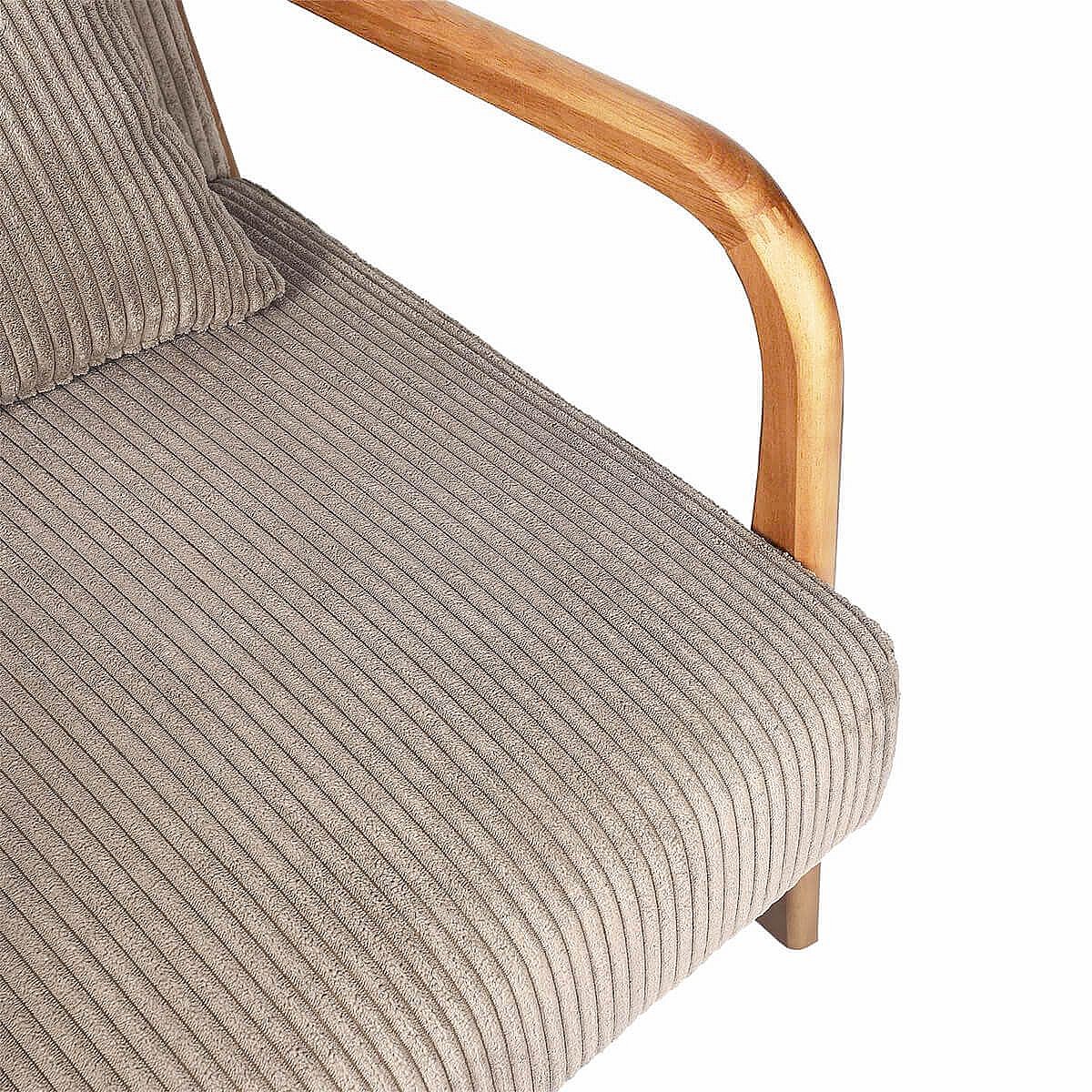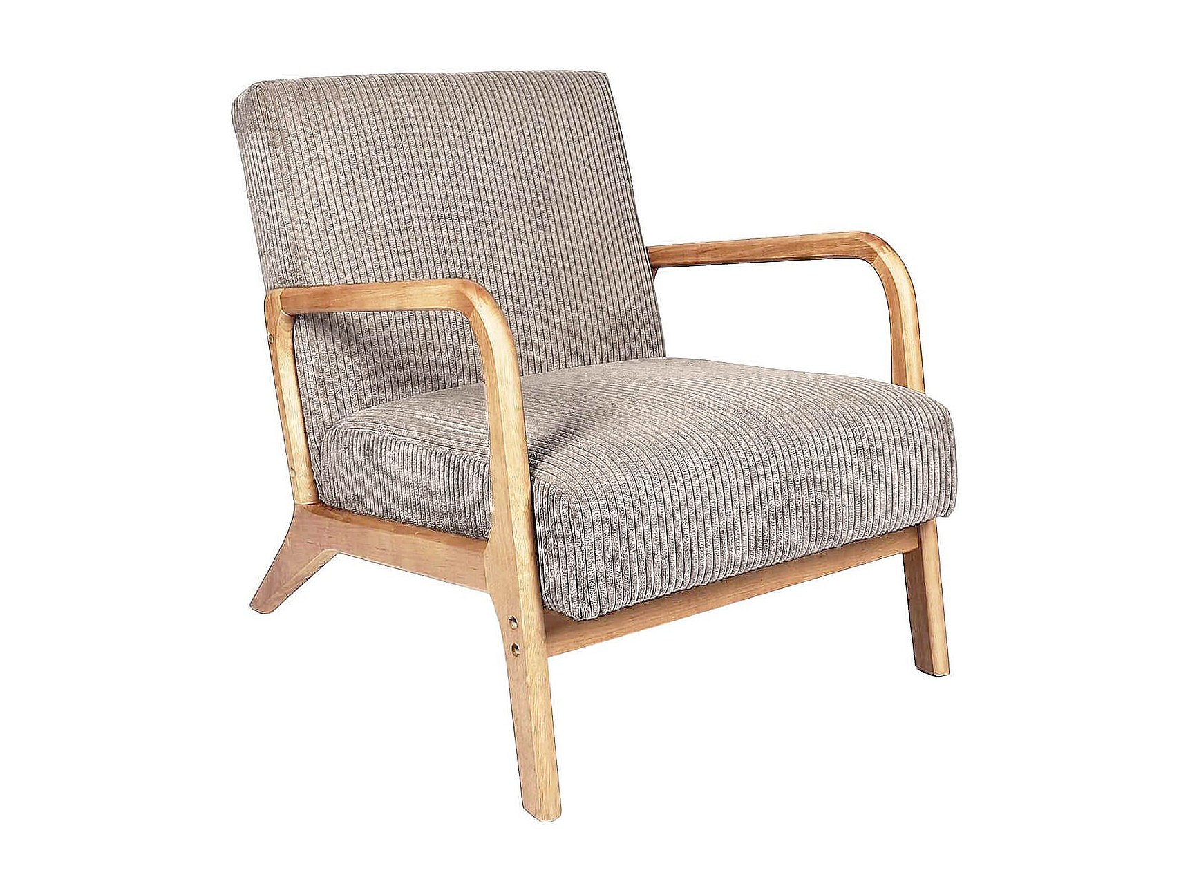 AMORY - Fauteuil en velours côtelé coloris taupe pieds et accoudoirs en hévéa