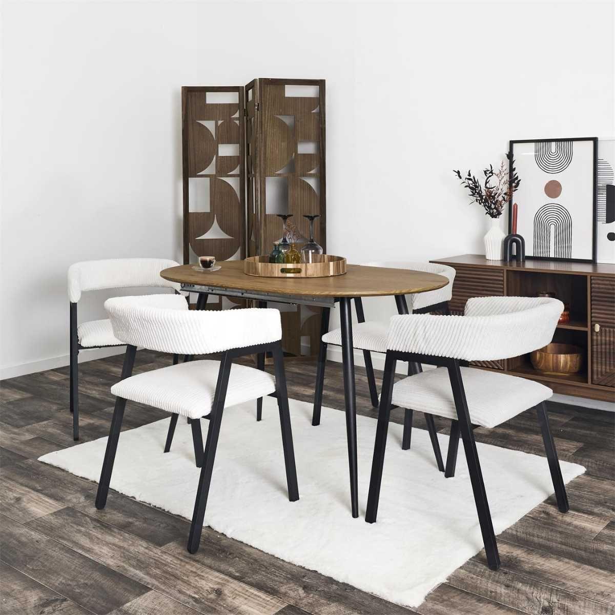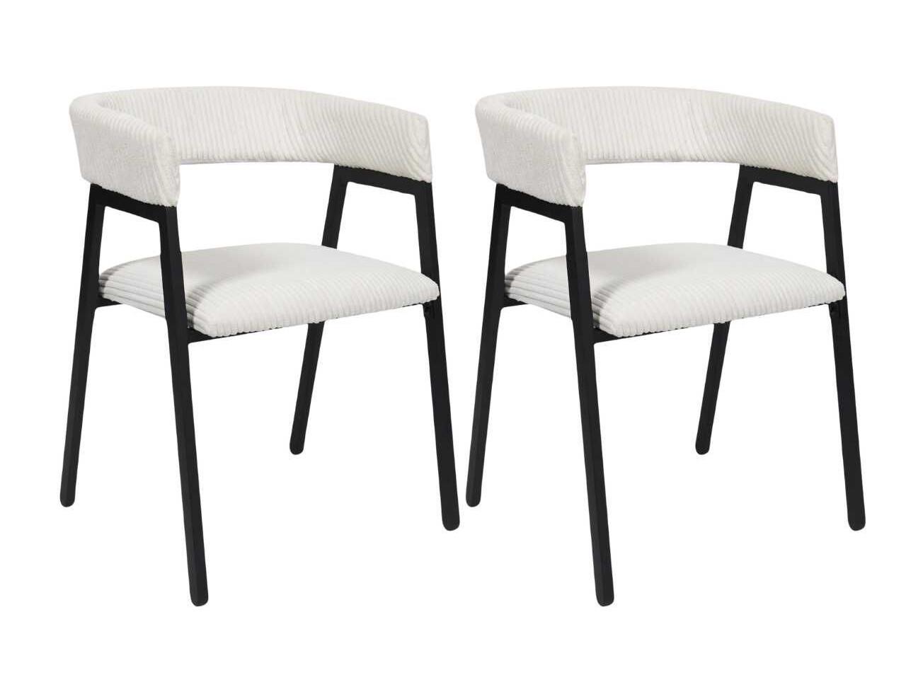 AMORY - Lot de 2 fauteuils de table design en métal et velours côtelé coloris crème