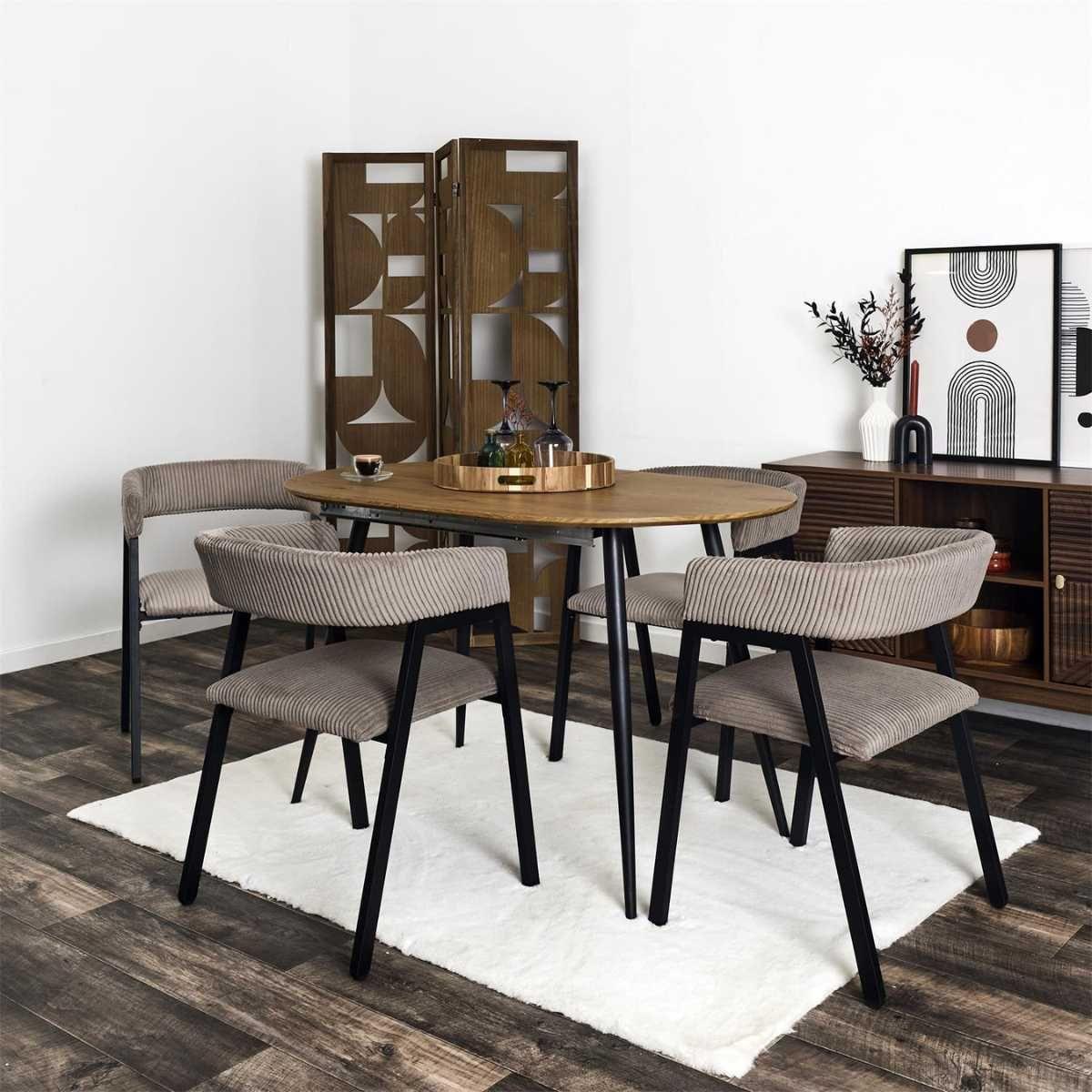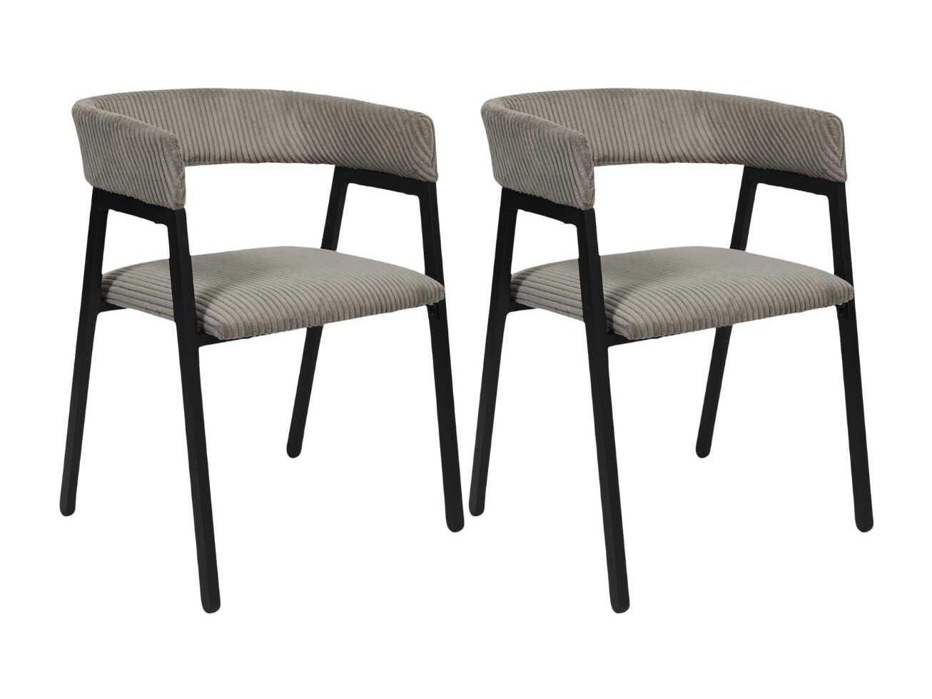 AMORY - Lot de 2 fauteuils de table design en métal et velours côtelé coloris taupe