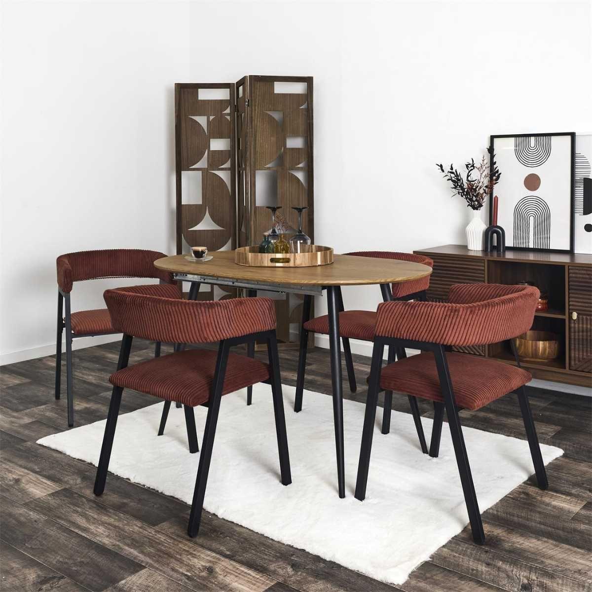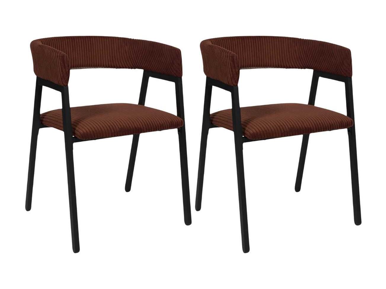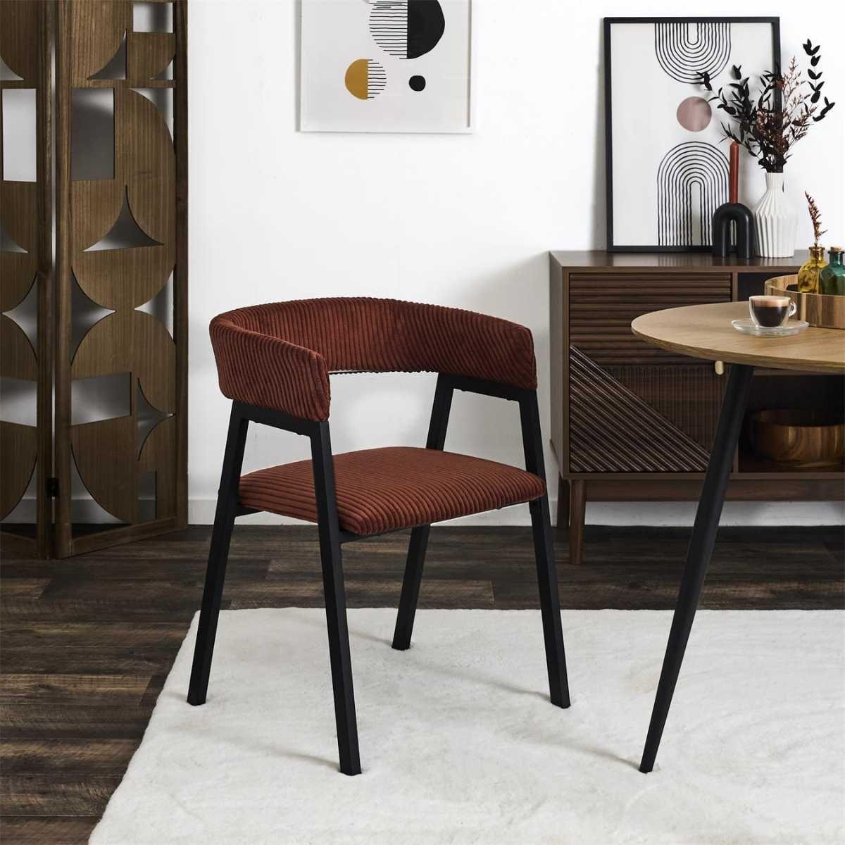 AMORY - Lot de 2 fauteuils de table design en métal et velours côtelé coloris terracotta