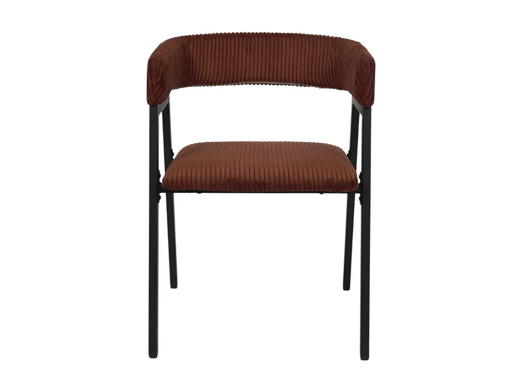 Lot de 2 fauteuils de table design en métal et velours côtelé coloris terracotta - AMORY