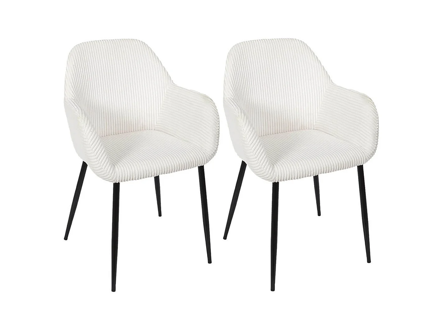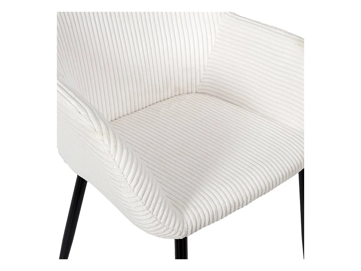 AMORY - Lot de 2 fauteuils de table en velours côtelé coloris crème