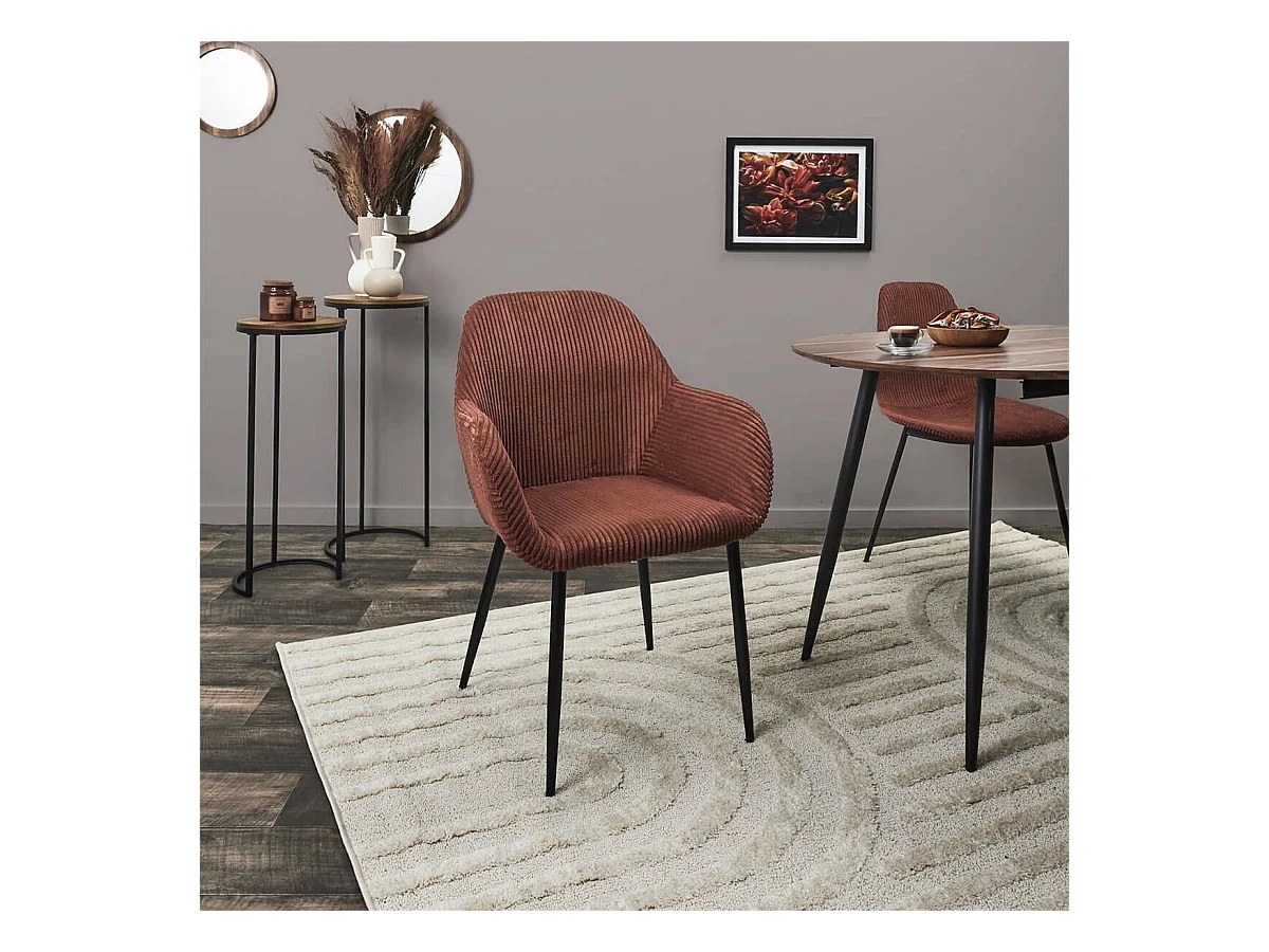 AMORY - Lot de 2 fauteuils de table en velours côtelé coloris terracotta