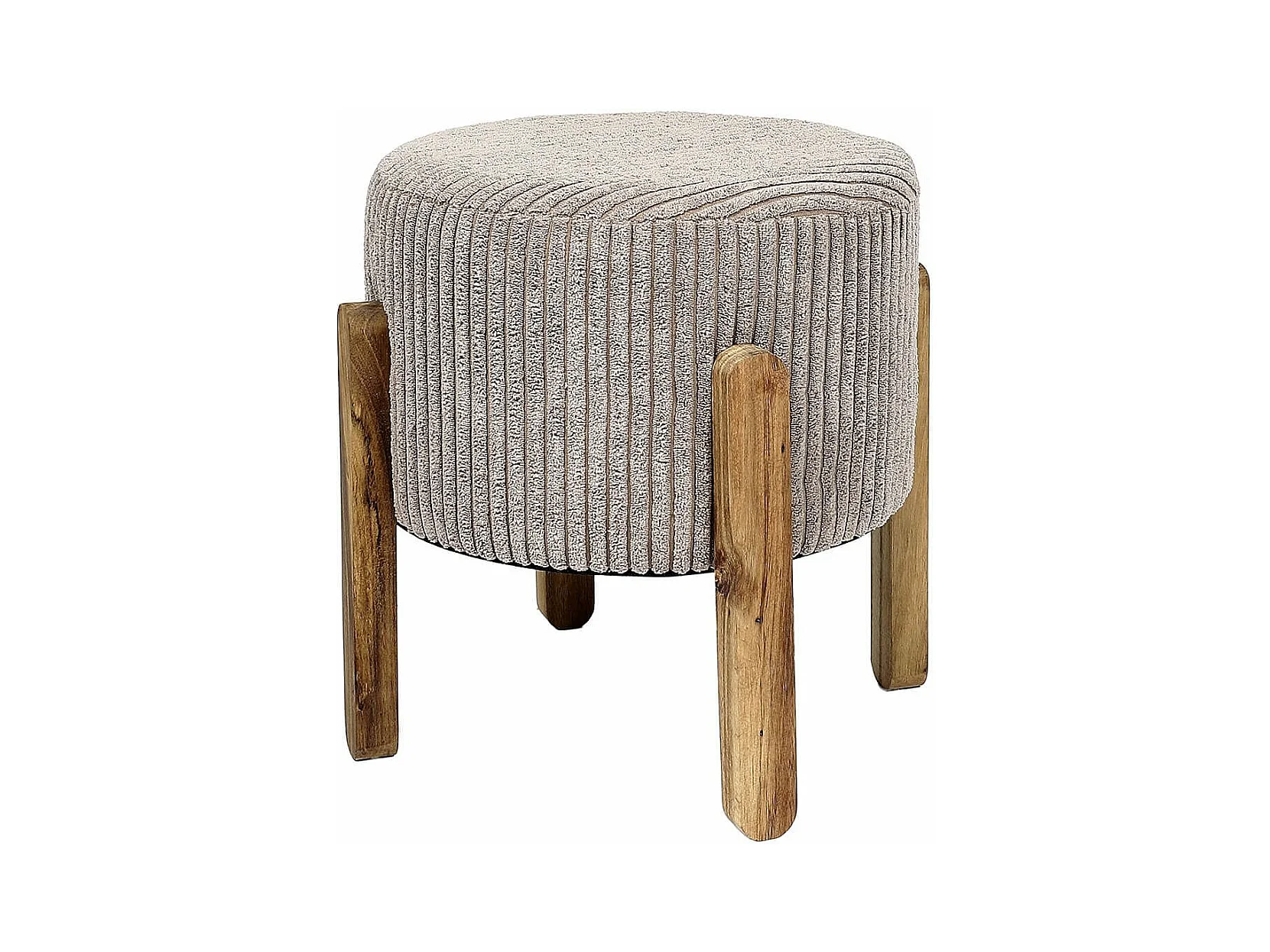 AMORY - Lot de 2 Tabourets en velours côtelé coloris taupe pieds en acacia