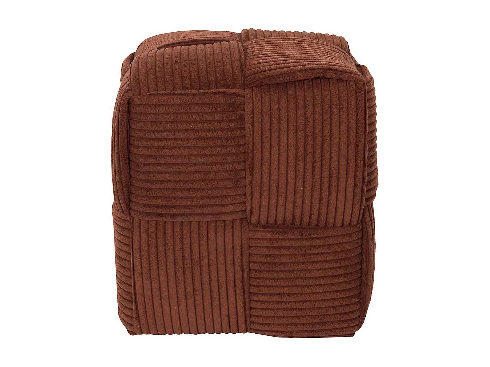 Pouf cube en velours côtelé tressé coloris terracotta - AMORY