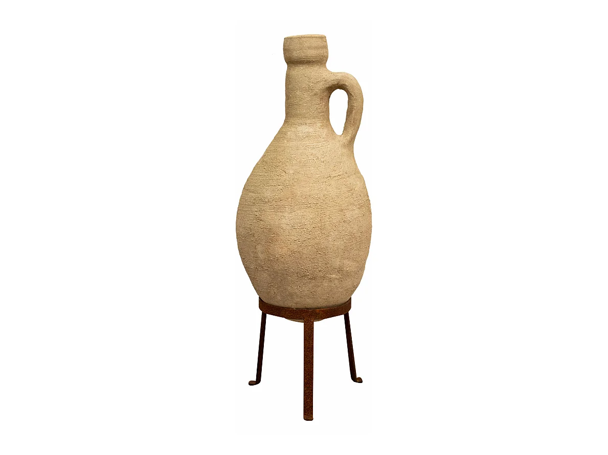 Vase sur Pied Design "Taches" 37cm Blanc & Ocre