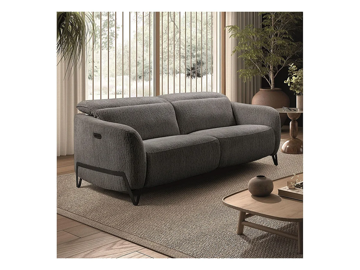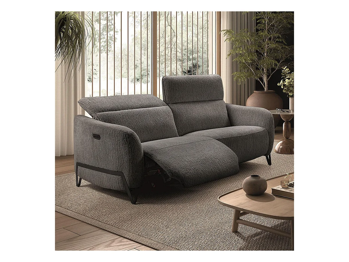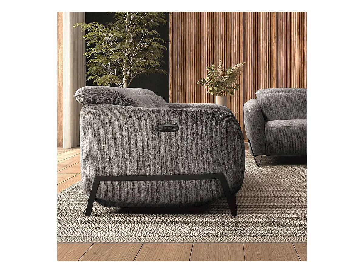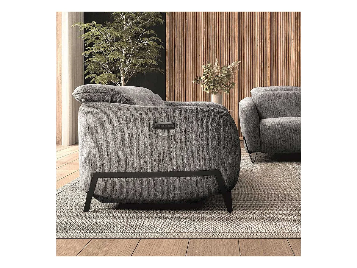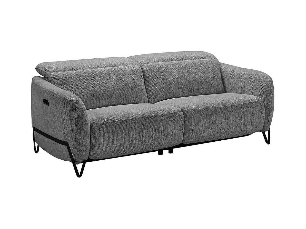 Canapé relax électrique 3 places tissu polyester gris - AMSTEN