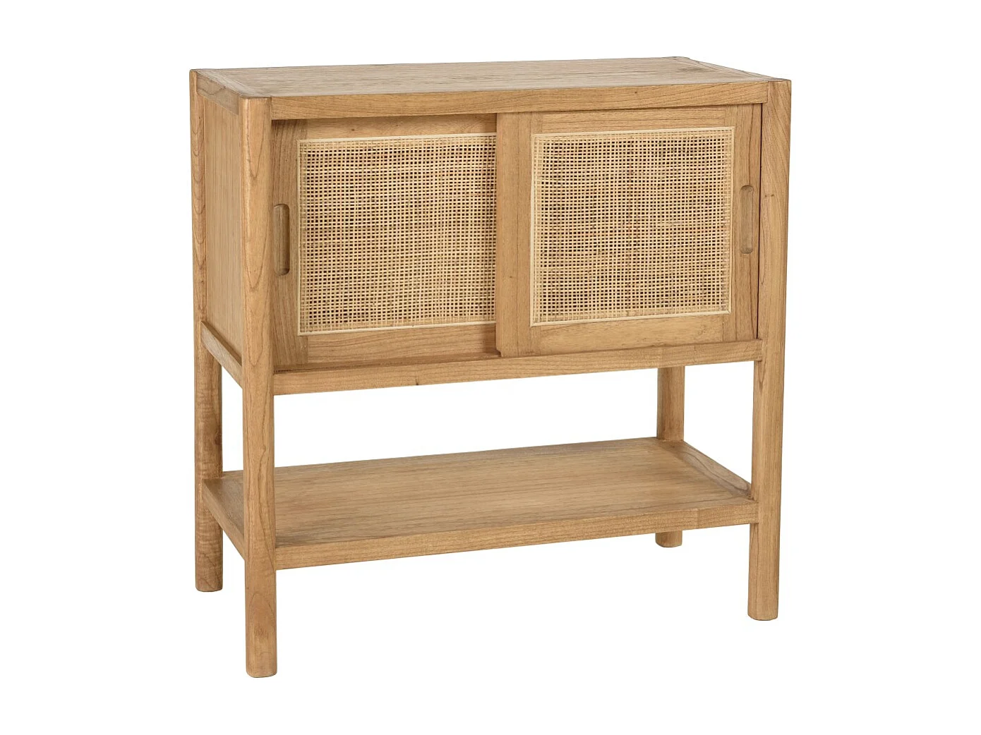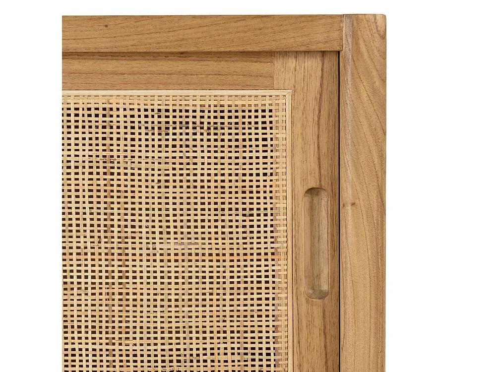 AMY - Buffet 2 étagères 2 portes coulissantes en mindi et rotin naturel AMY
