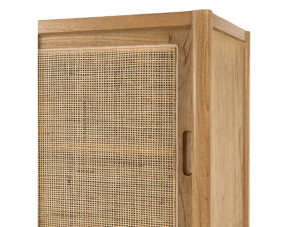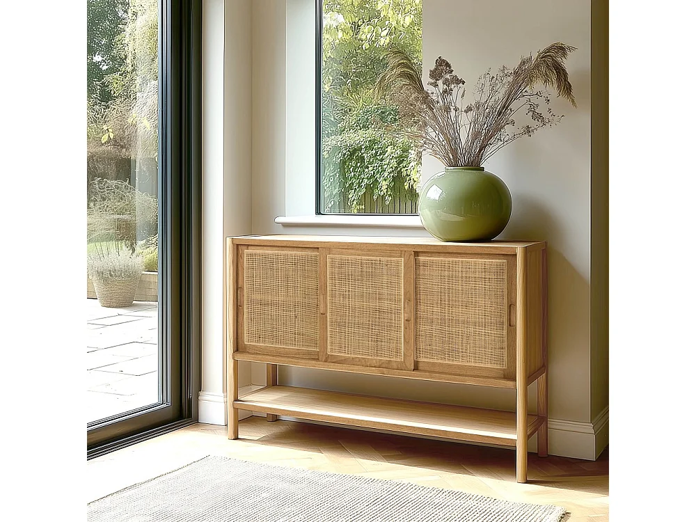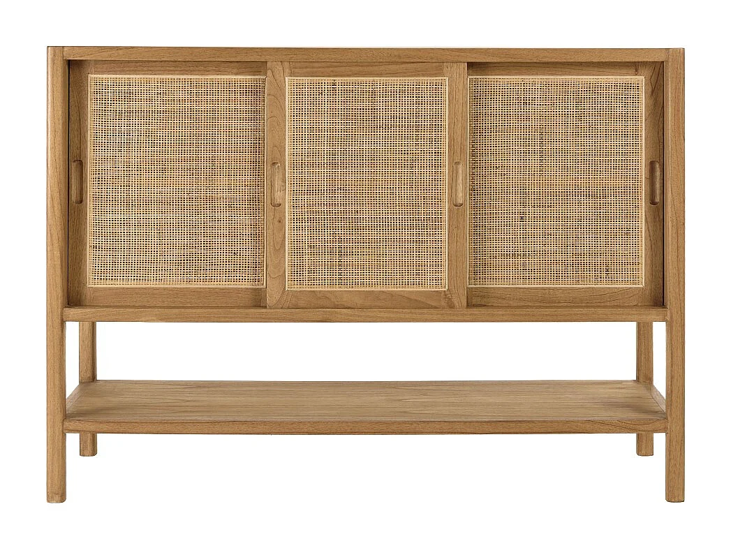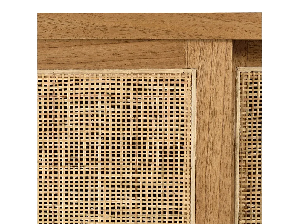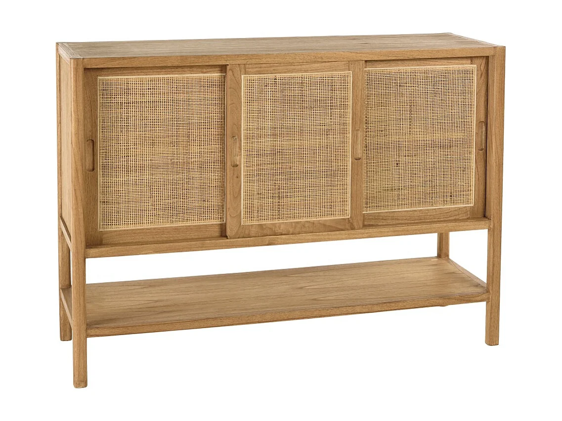 AMY - Buffet 2 étagères 3 portes coulissantes en mindi et rotin naturel AMY