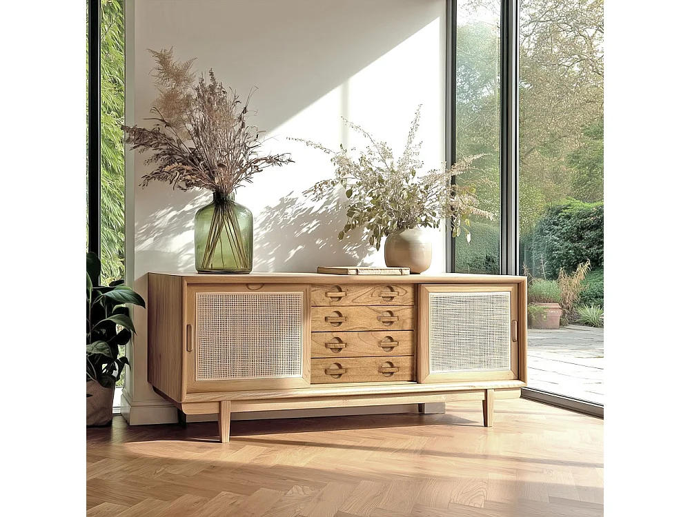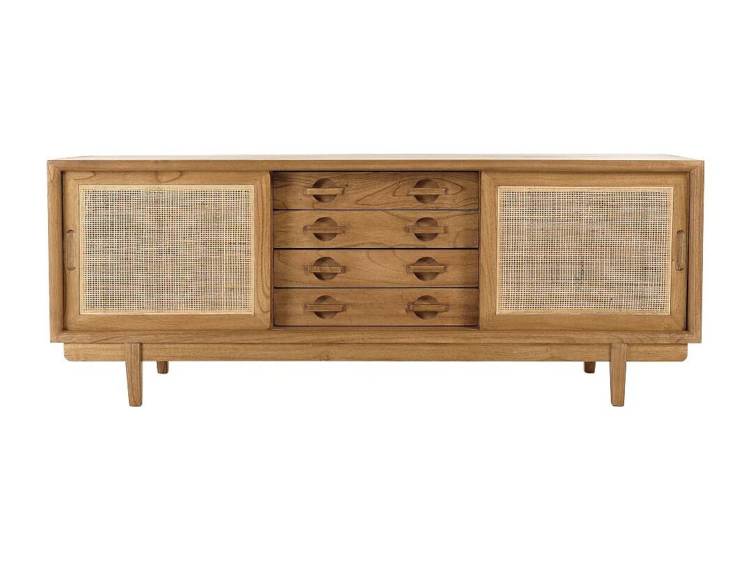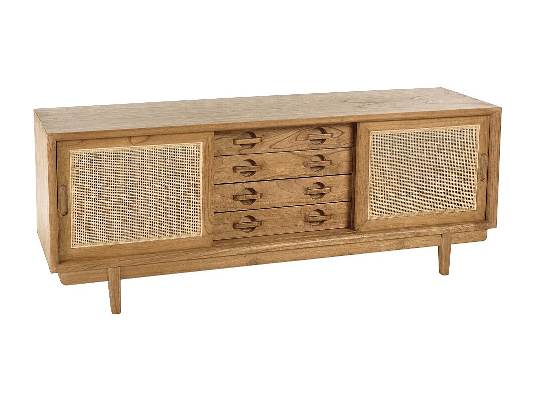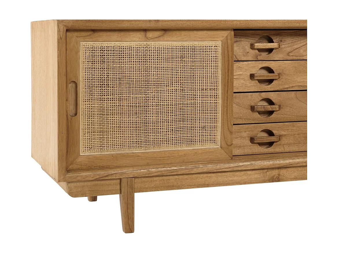 AMY - Meuble TV en bois de mindi et rotin naturel AMY