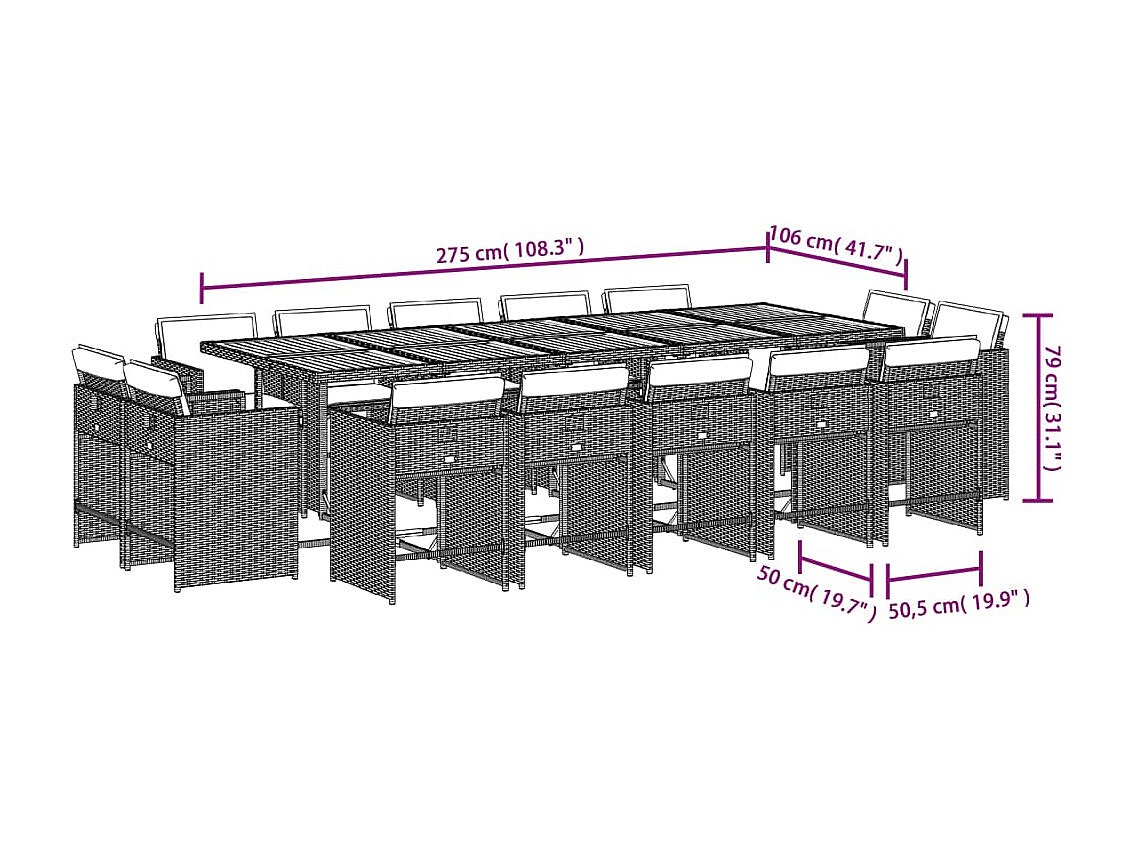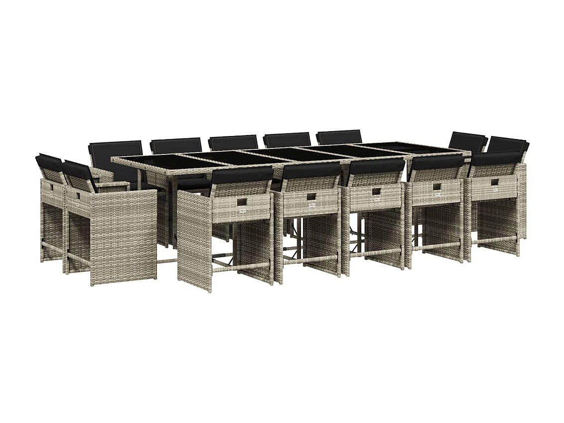 An Daingean Ensemble à manger de jardin et coussins 15 pcs gris clair rotin