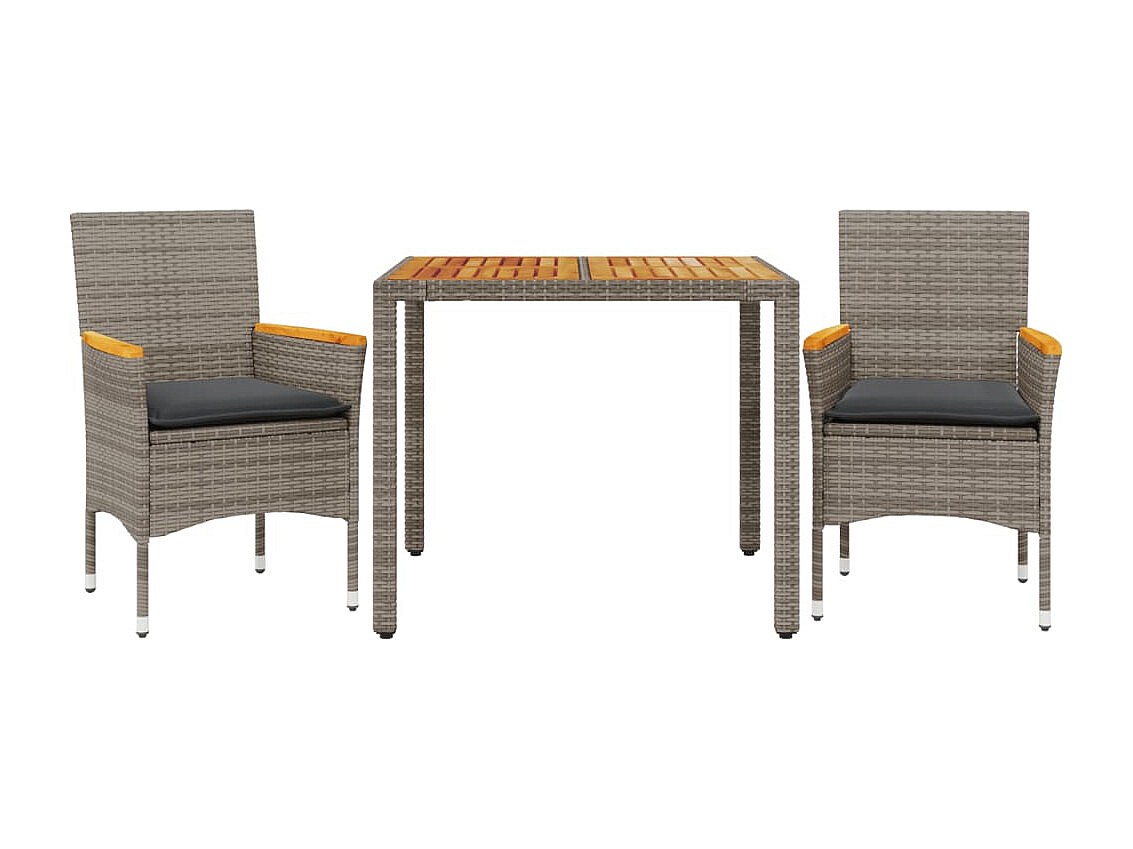 Ana Luisa Ensemble à manger de jardin et coussins 3 pcs gris rotin acacia