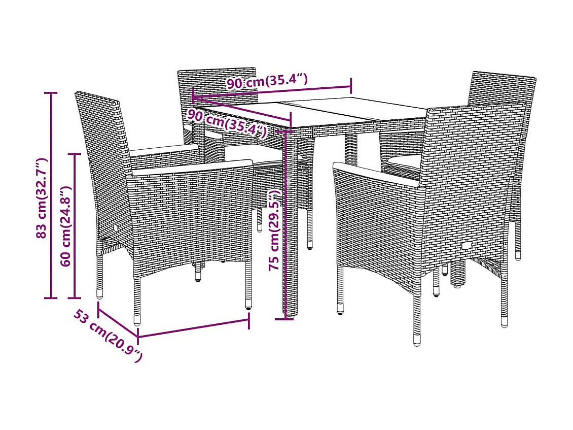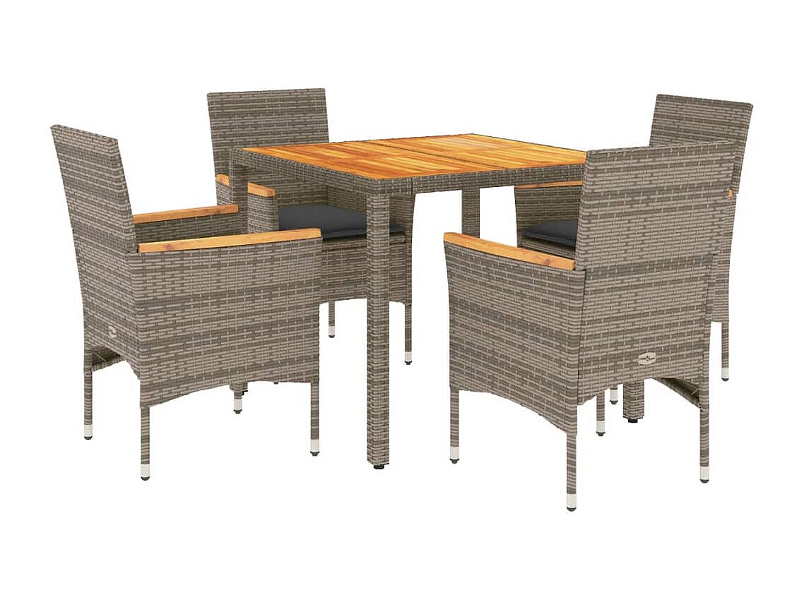 Ana Luisa Ensemble à manger de jardin et coussins 5 pcs gris rotin acacia