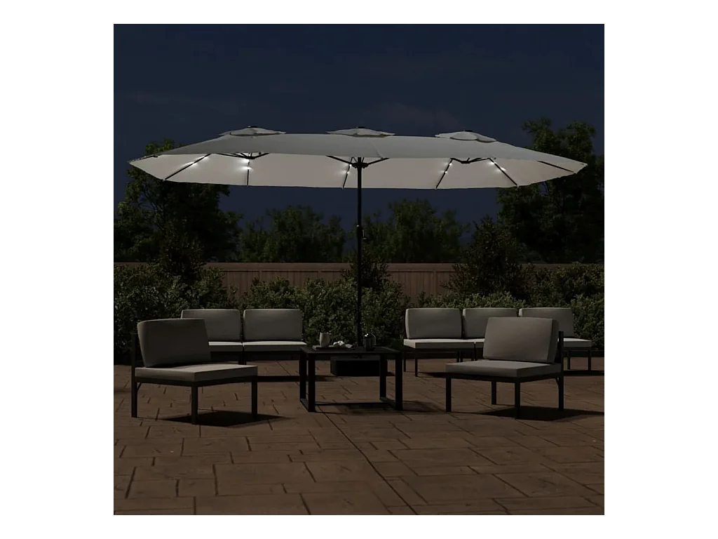 Anderson Parasol de jardin à double tête avec LED blanc sable 449x265 cm