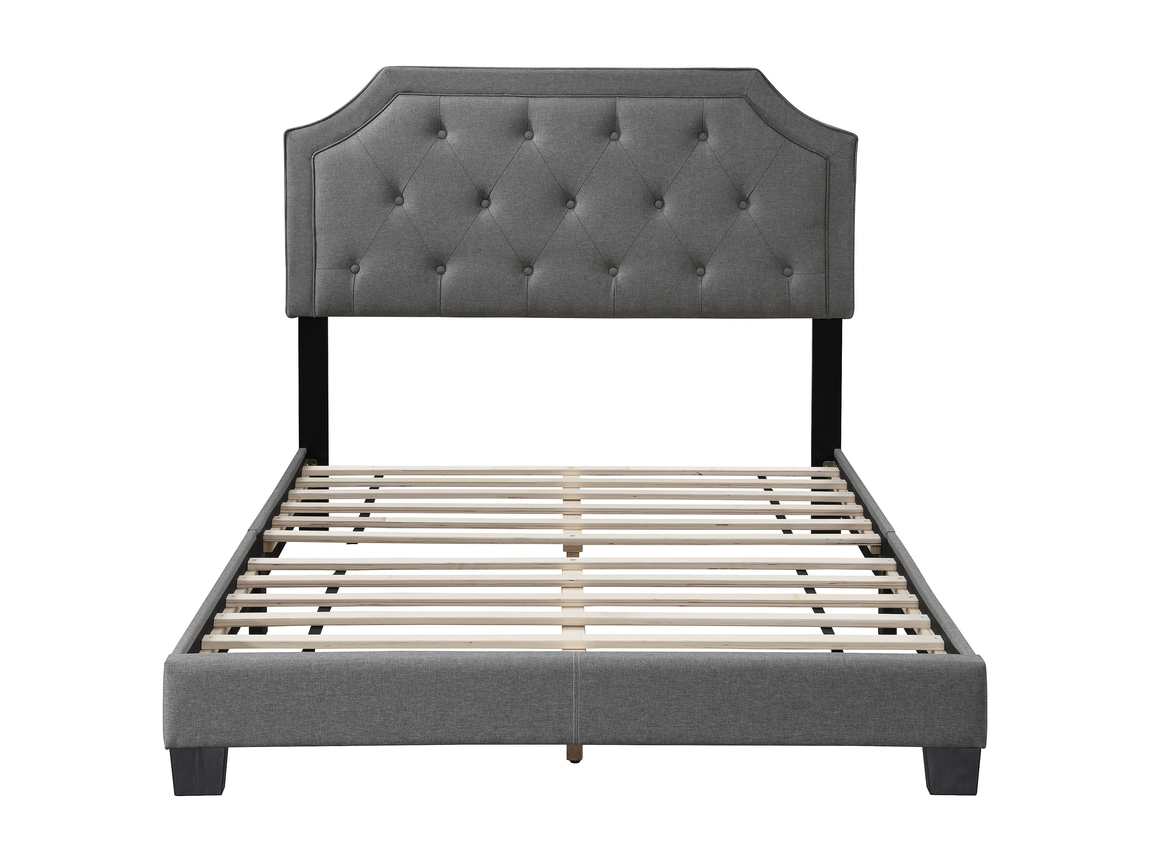 Lit 140 x 190 cm avec tête de lit capitonnée - Gris clair + Matelas - ANDEYO