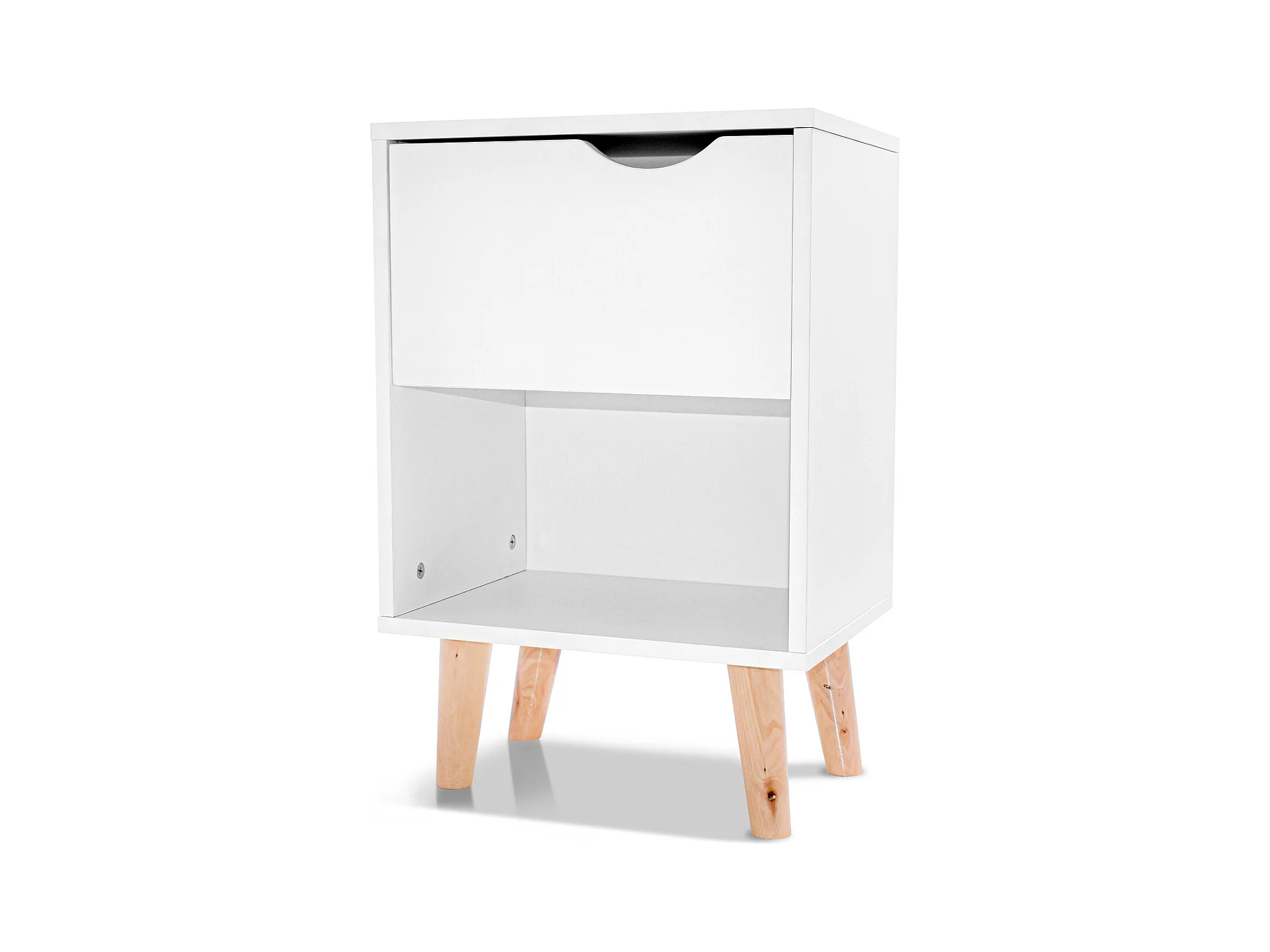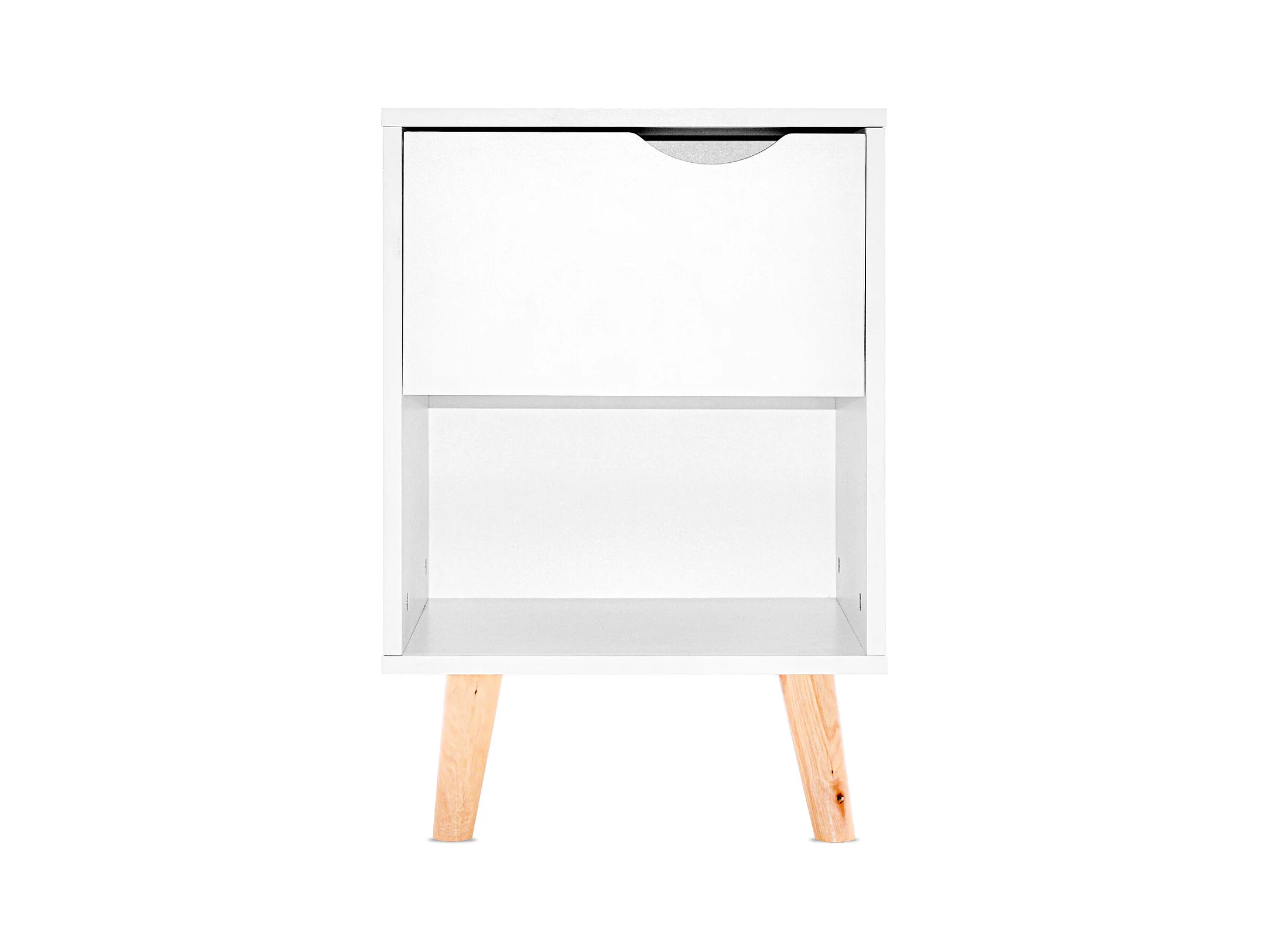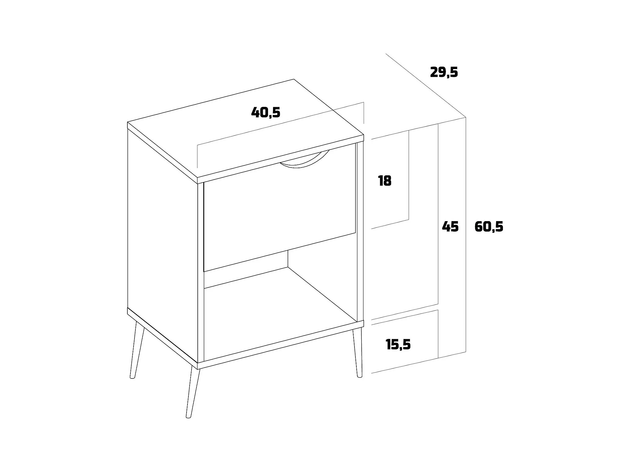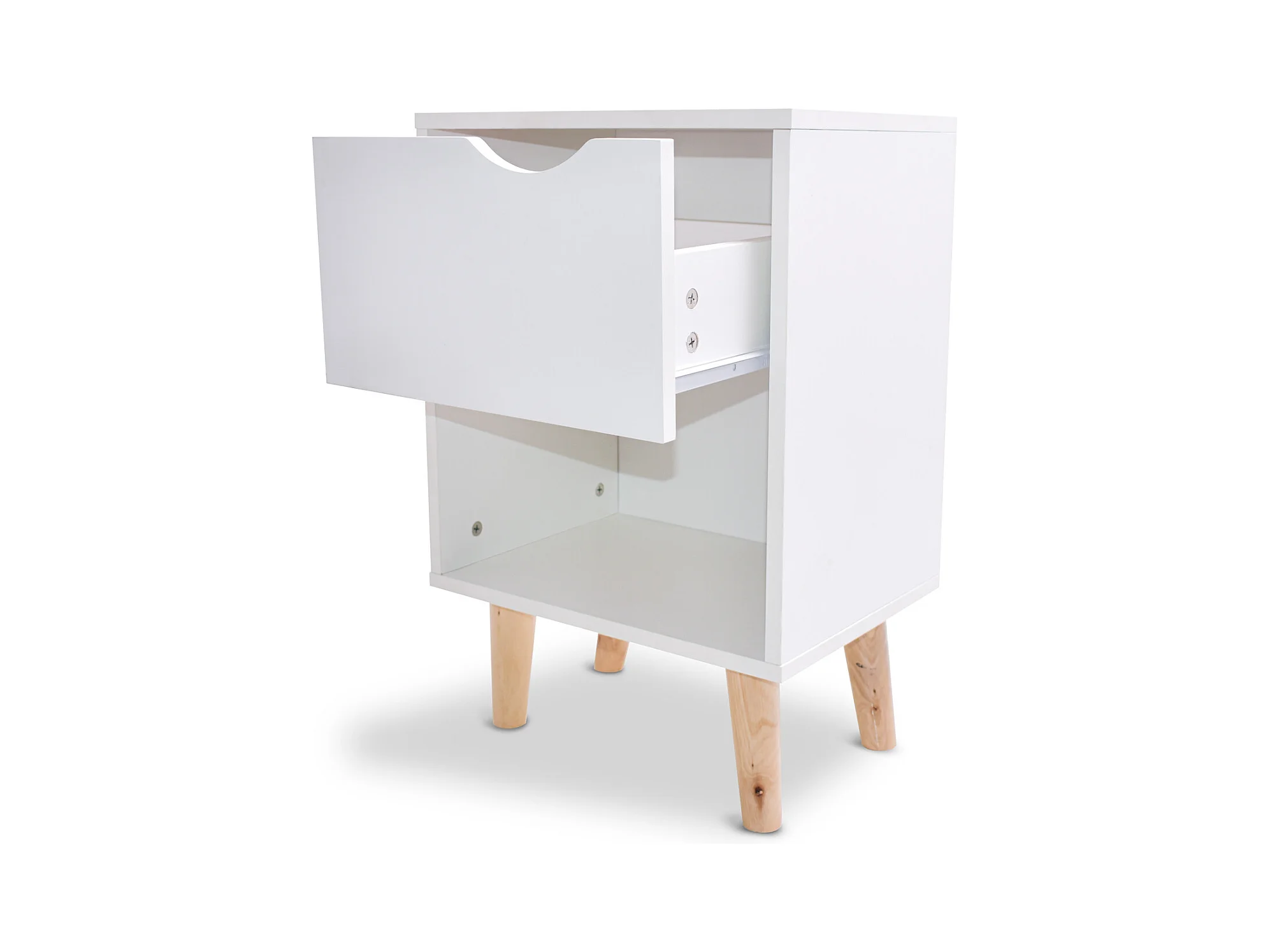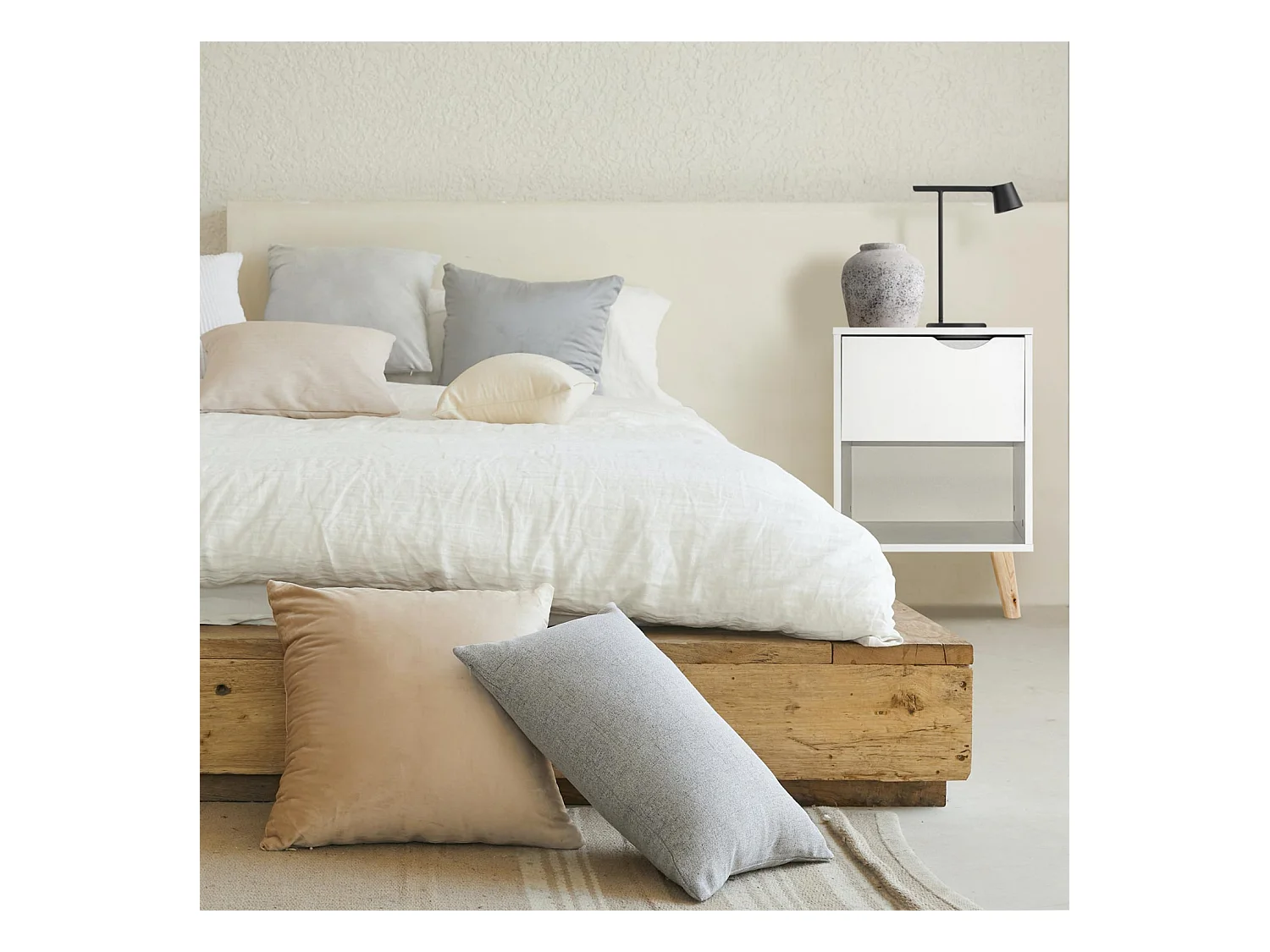 Andrea - Table De Chevet En Bois Avec Tiroir Et Large Étagère.