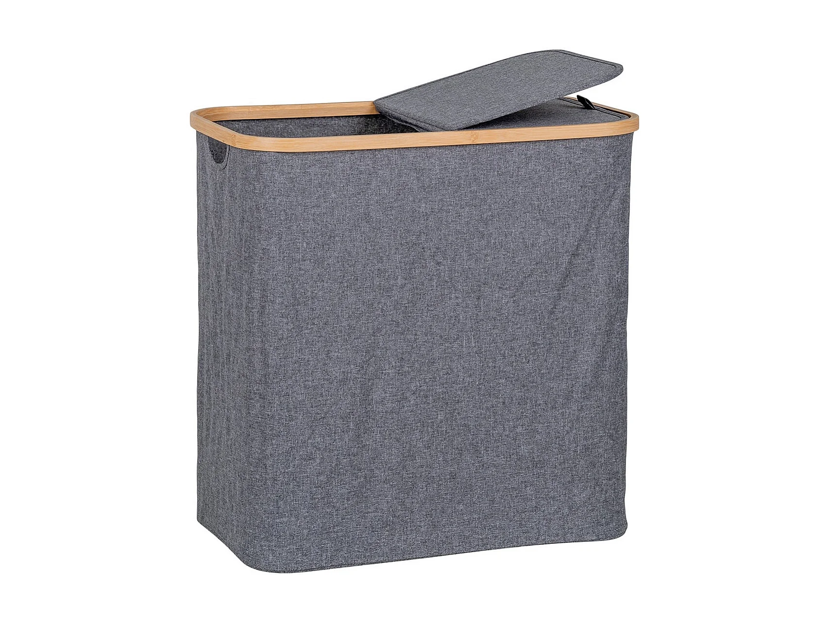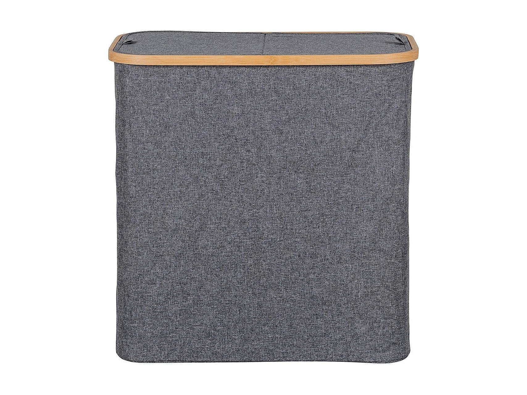 ANDREW - Panière à Linge en Tissu Gris et Bambou Double Abattants