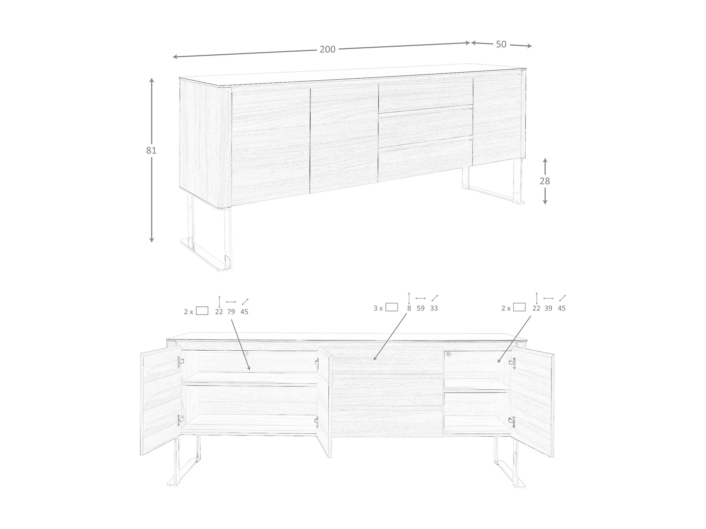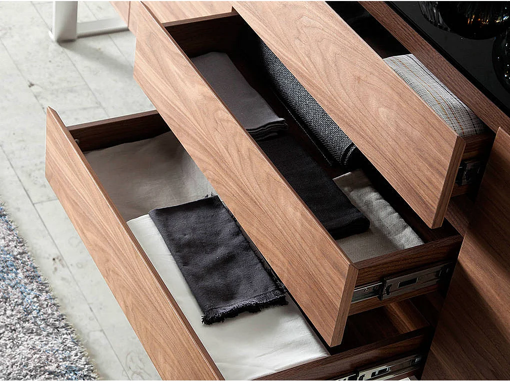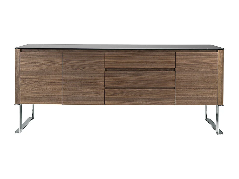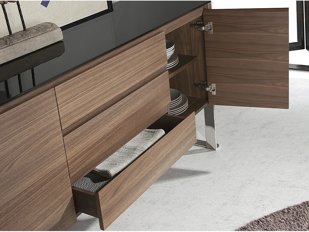 Buffet noyer, acier chromé et plateau en verre noir 3060 ANGEL CERDA