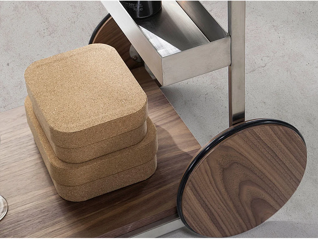 Chariot minibar en acier et noyer 3116 ANGEL CERDA