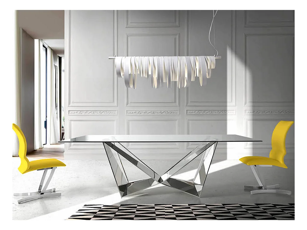 Table à manger rectangulaire verre trempé et acier chromé 1049 ANGEL CERDA