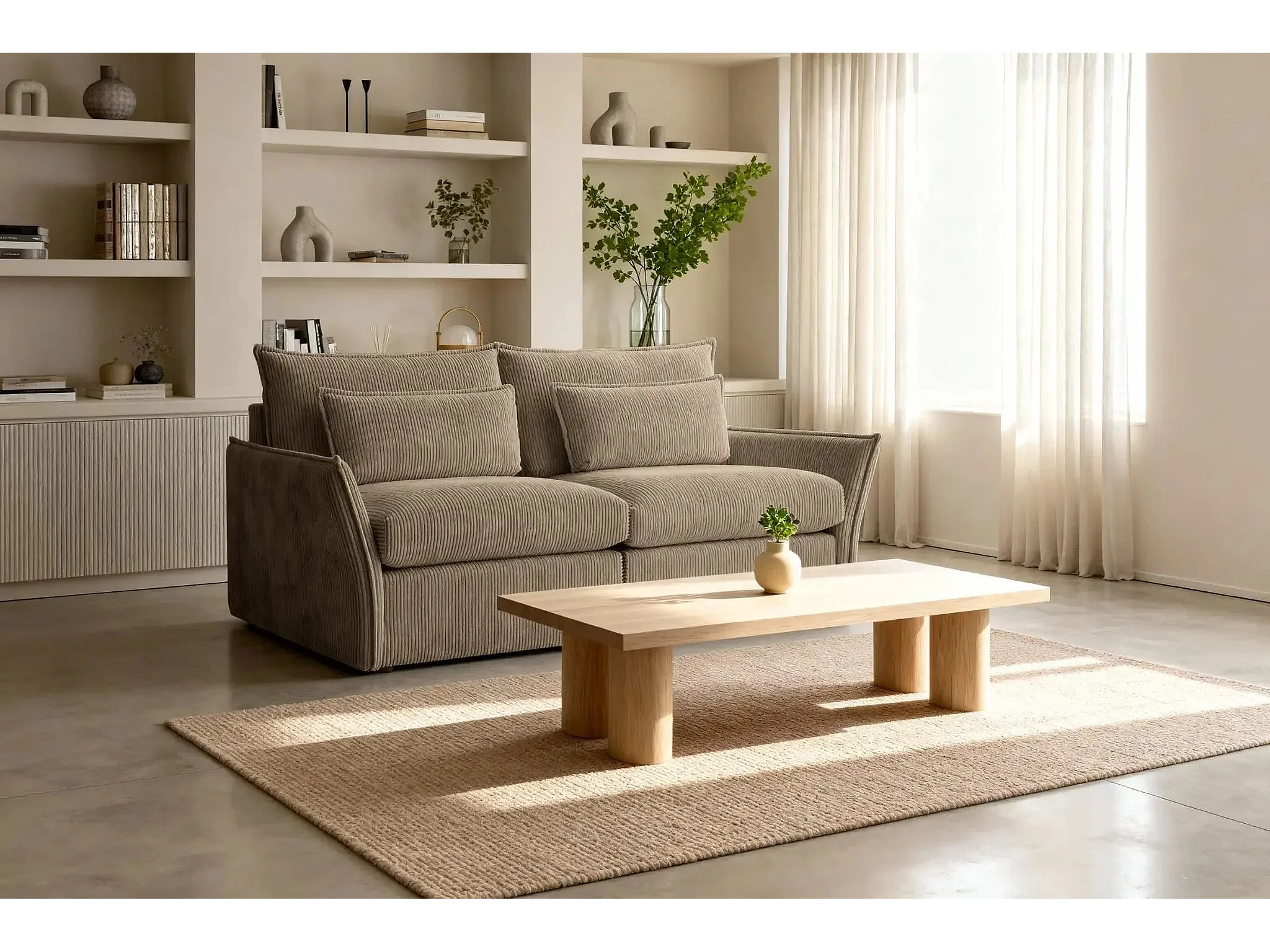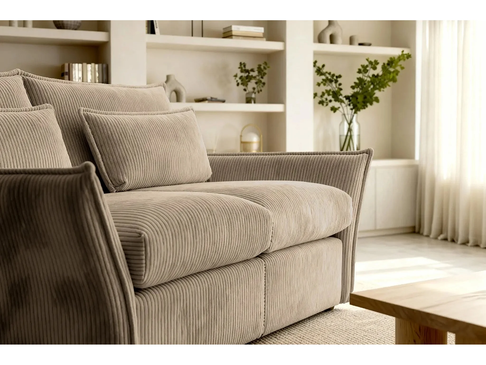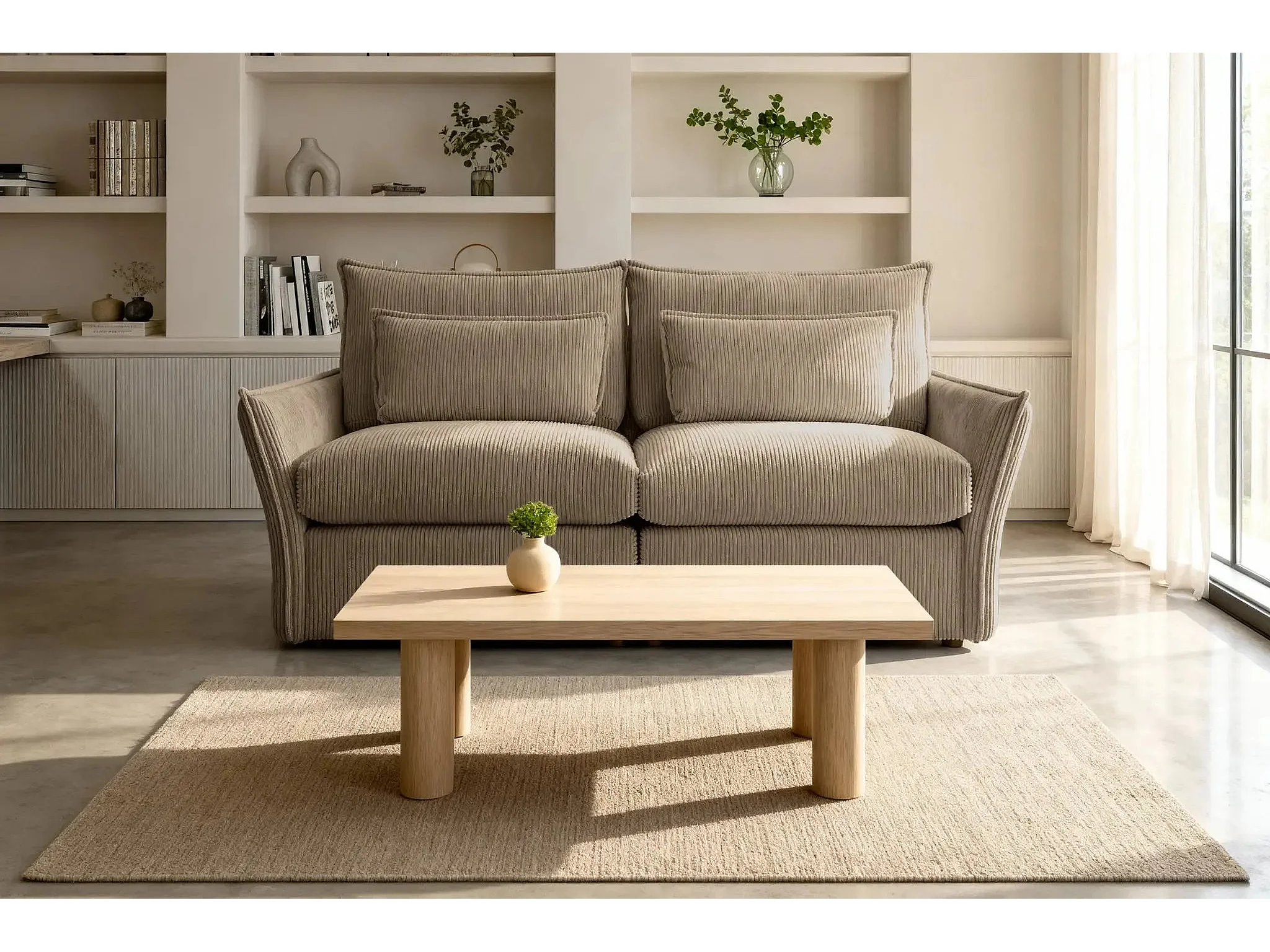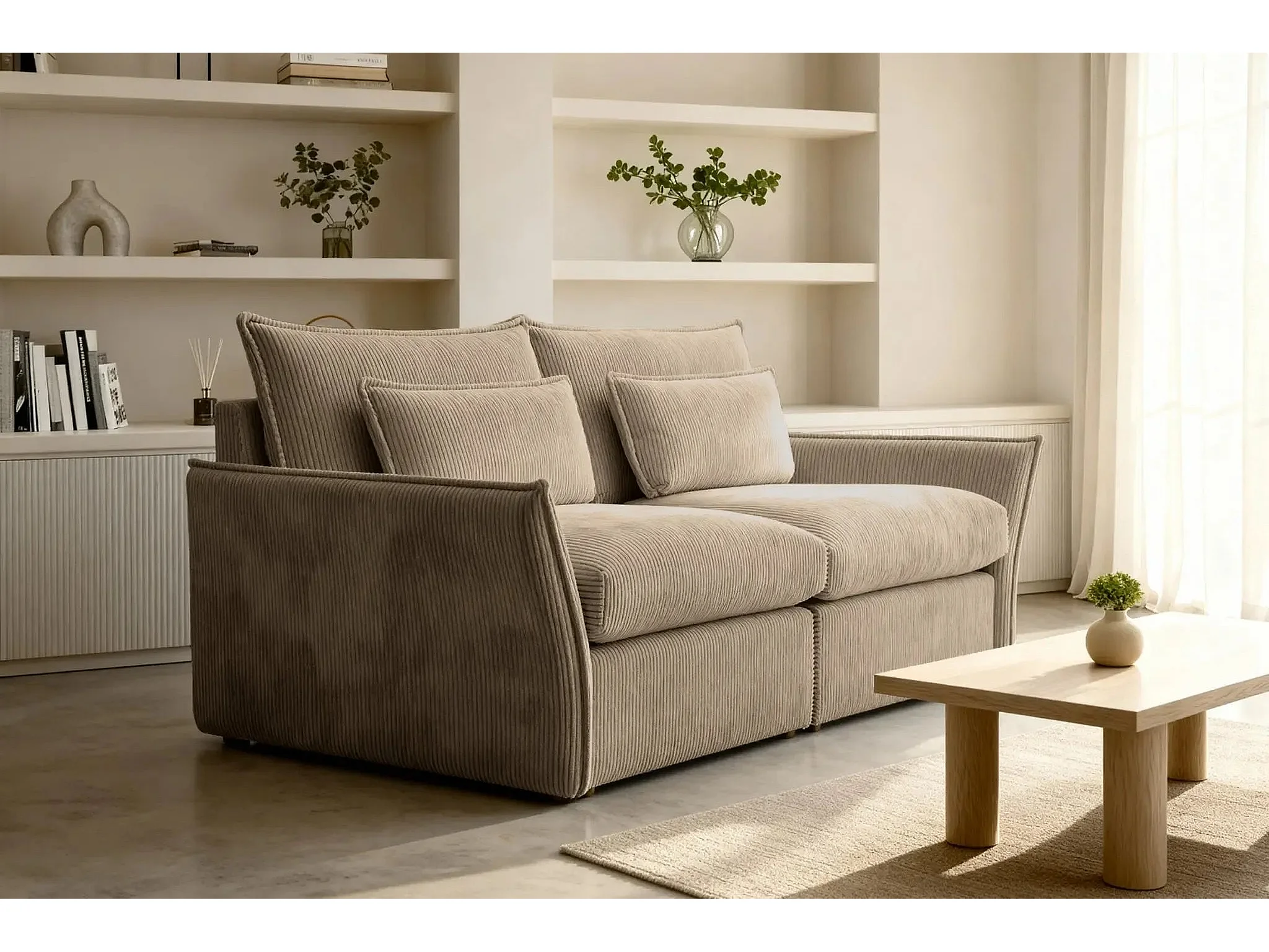 ANGELE - Canapé droit velours côtelé 2 places - Café
