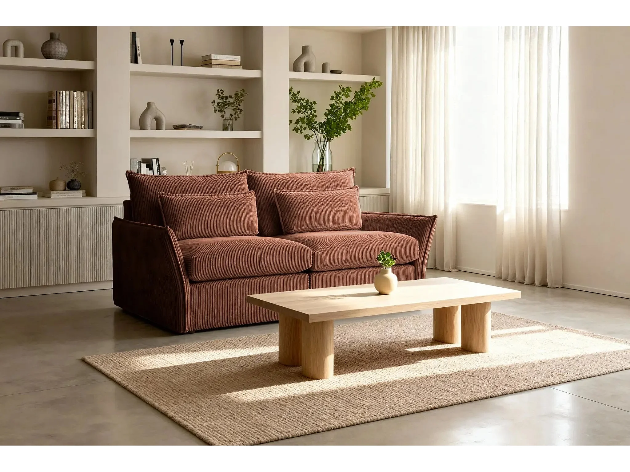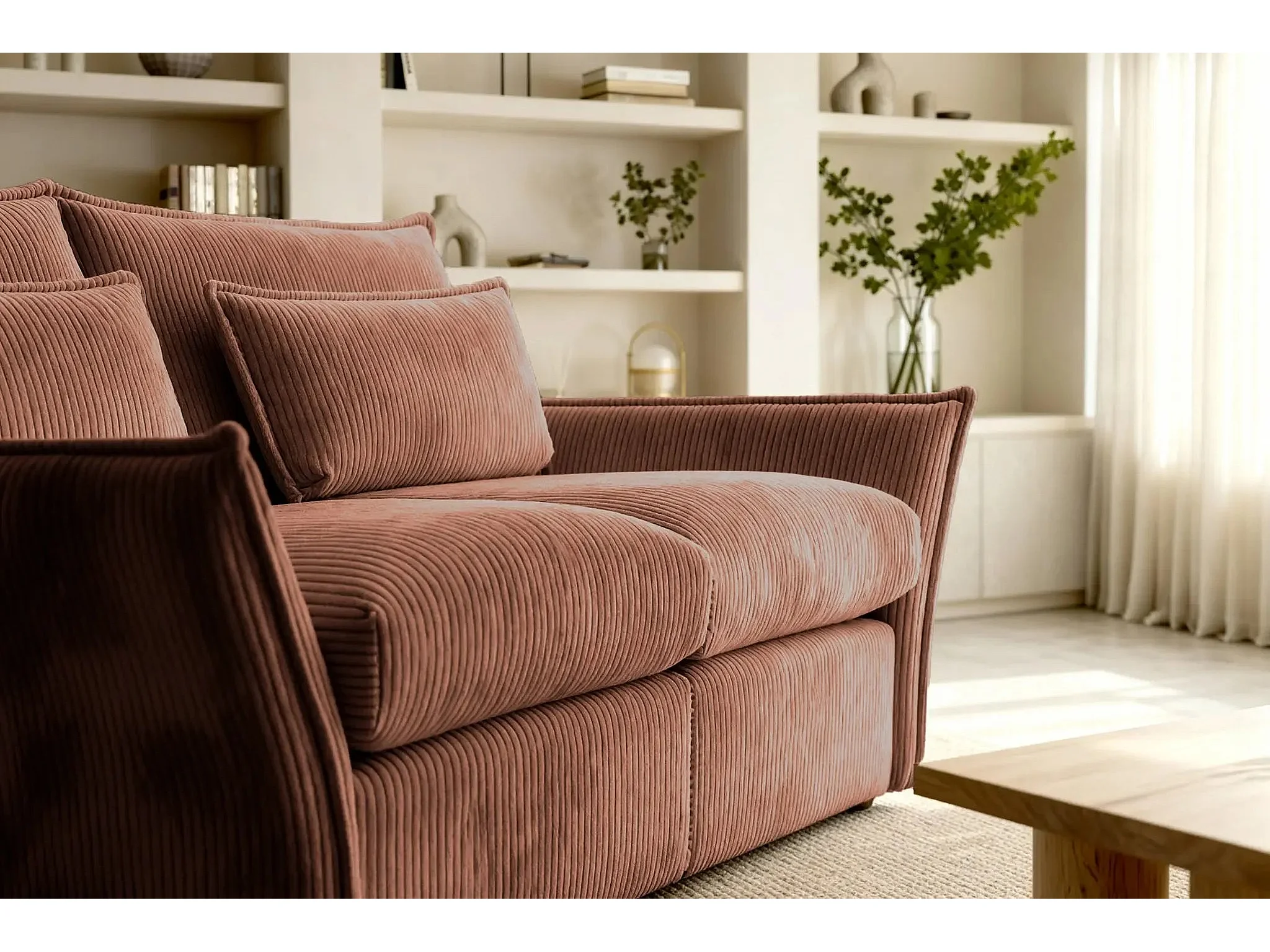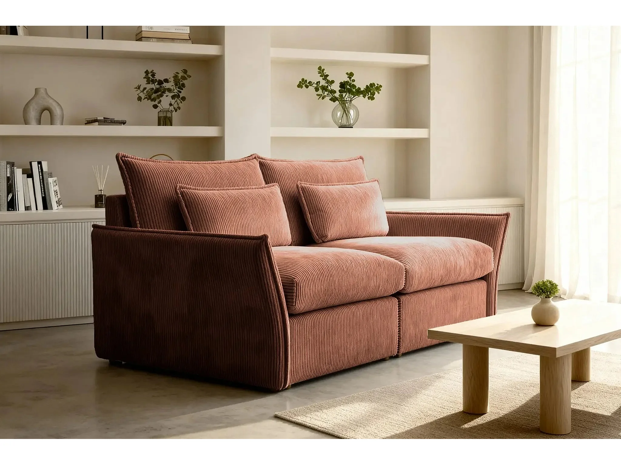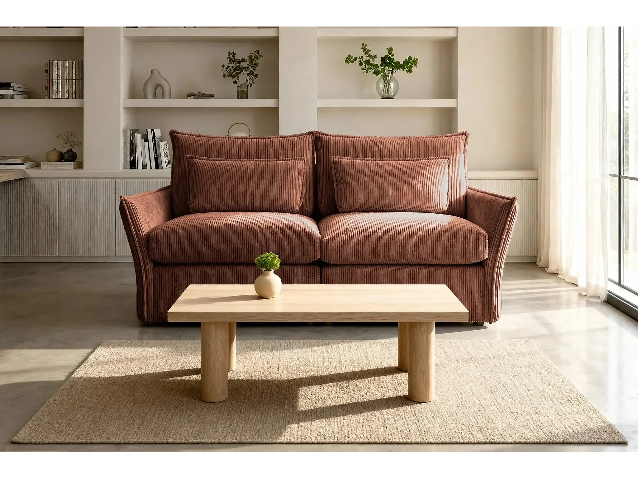 ANGELE - Canapé droit velours côtelé 2 places - Terracotta