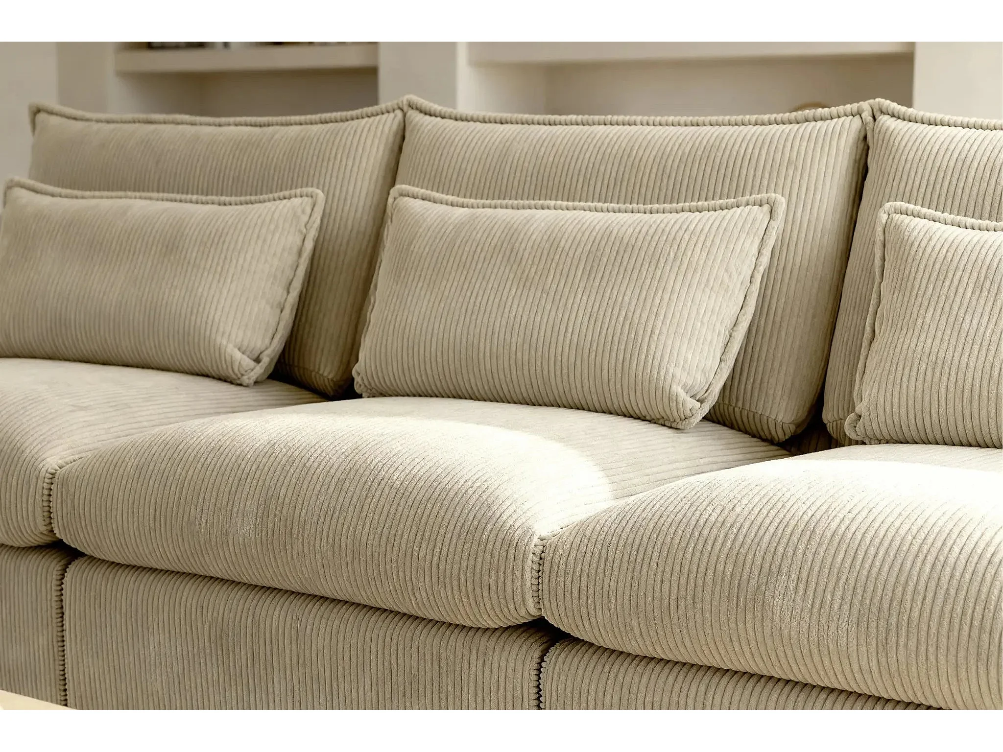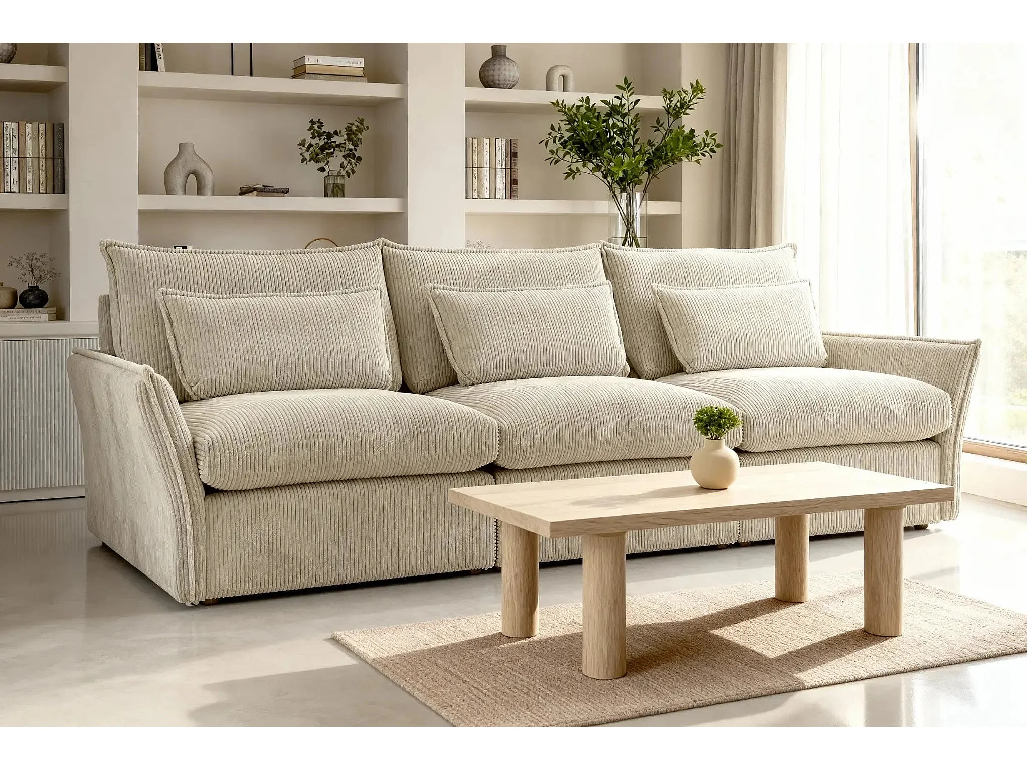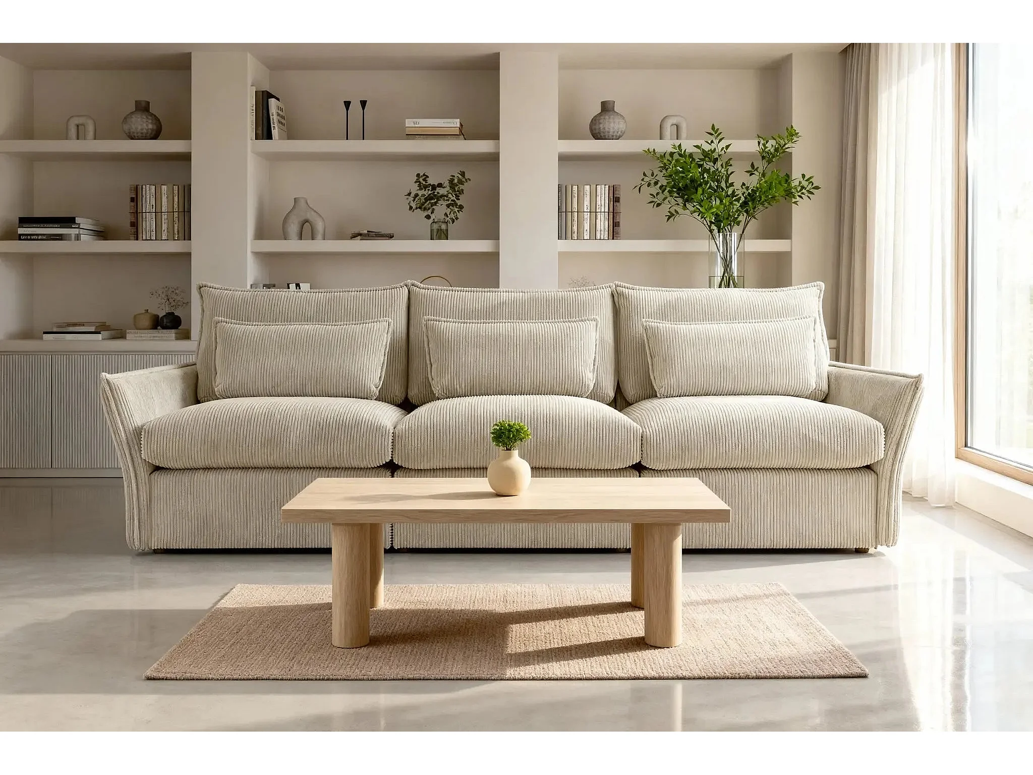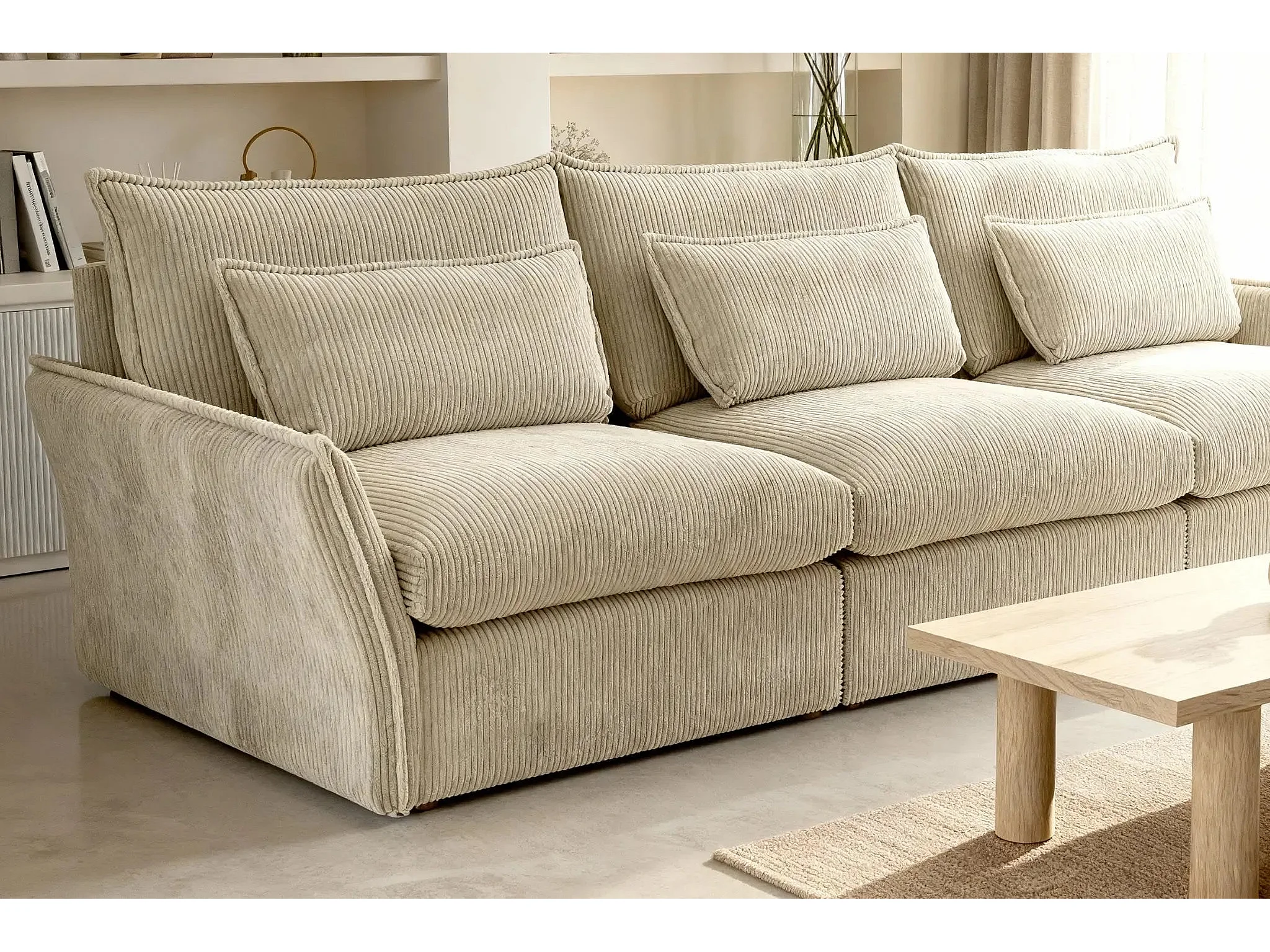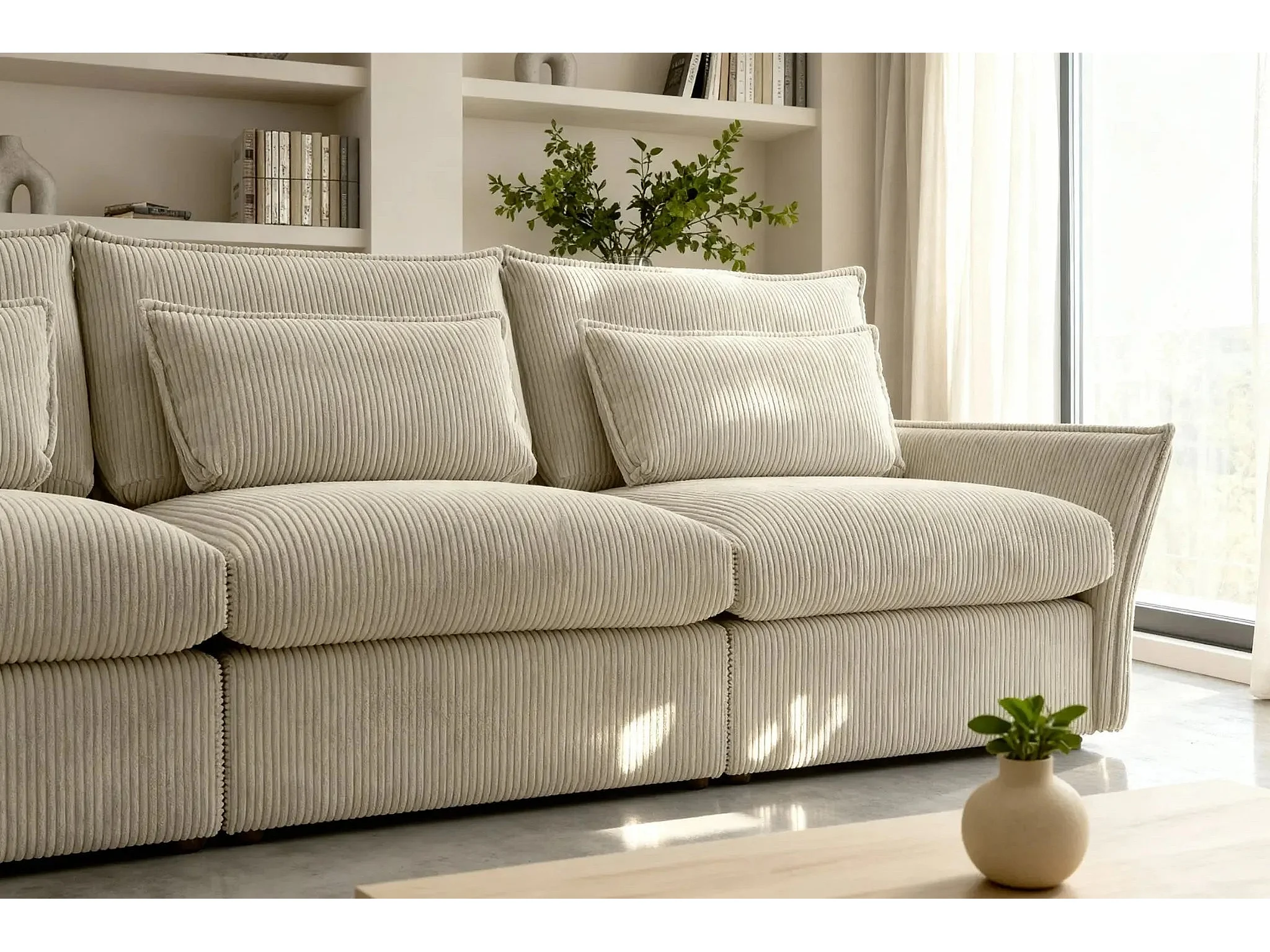 ANGELE - Canapé droit velours côtelé 3 places - Beige