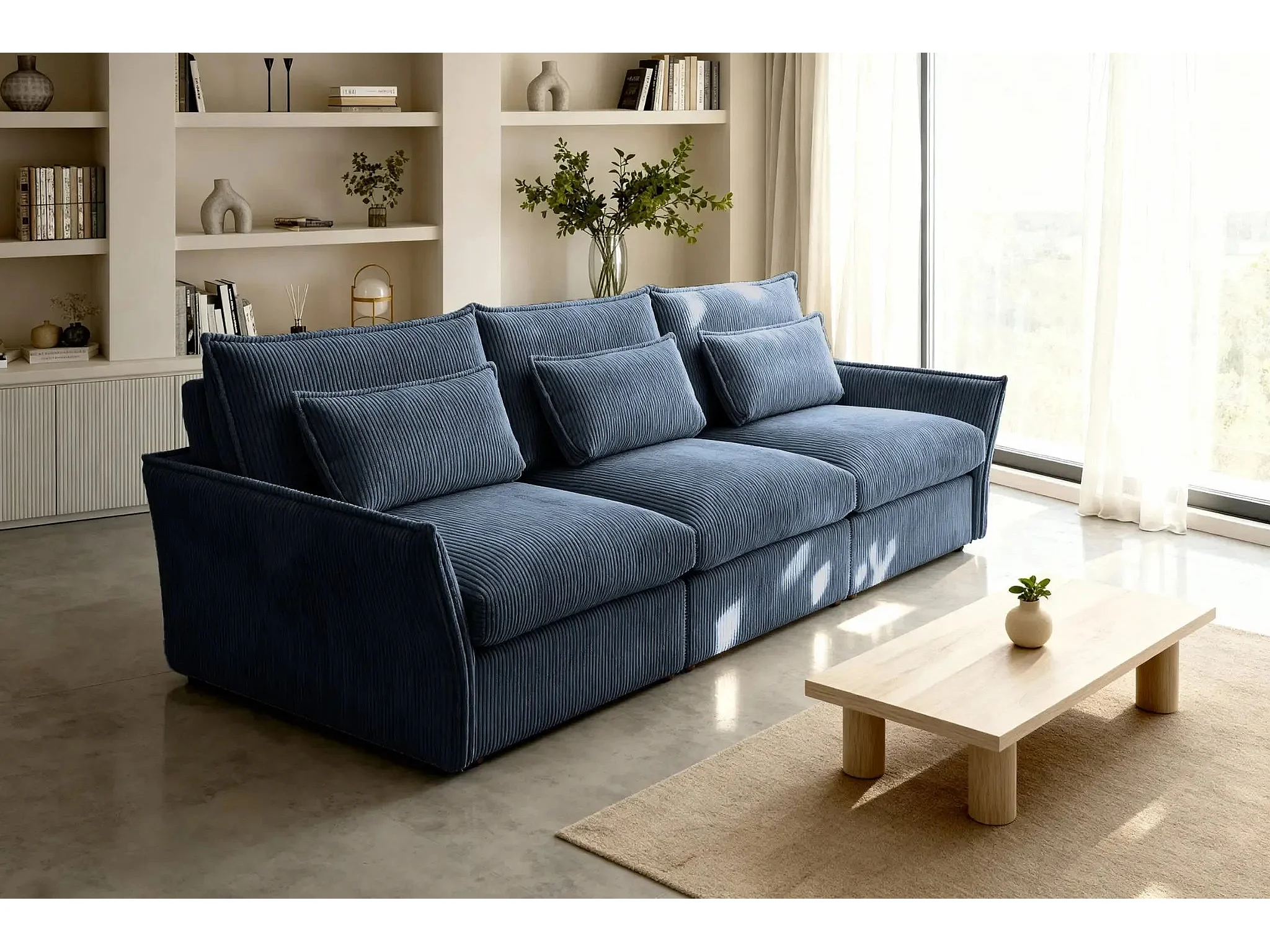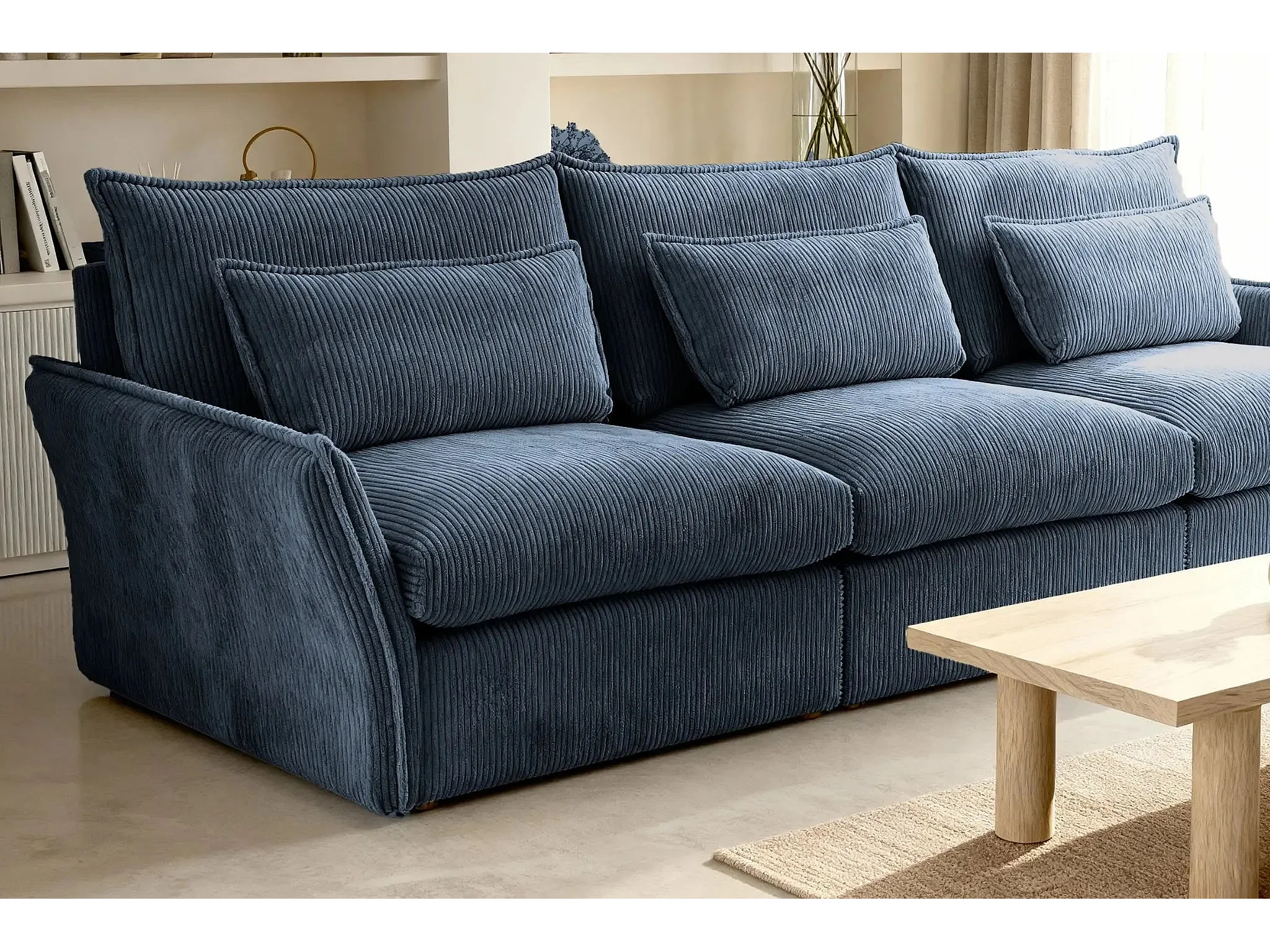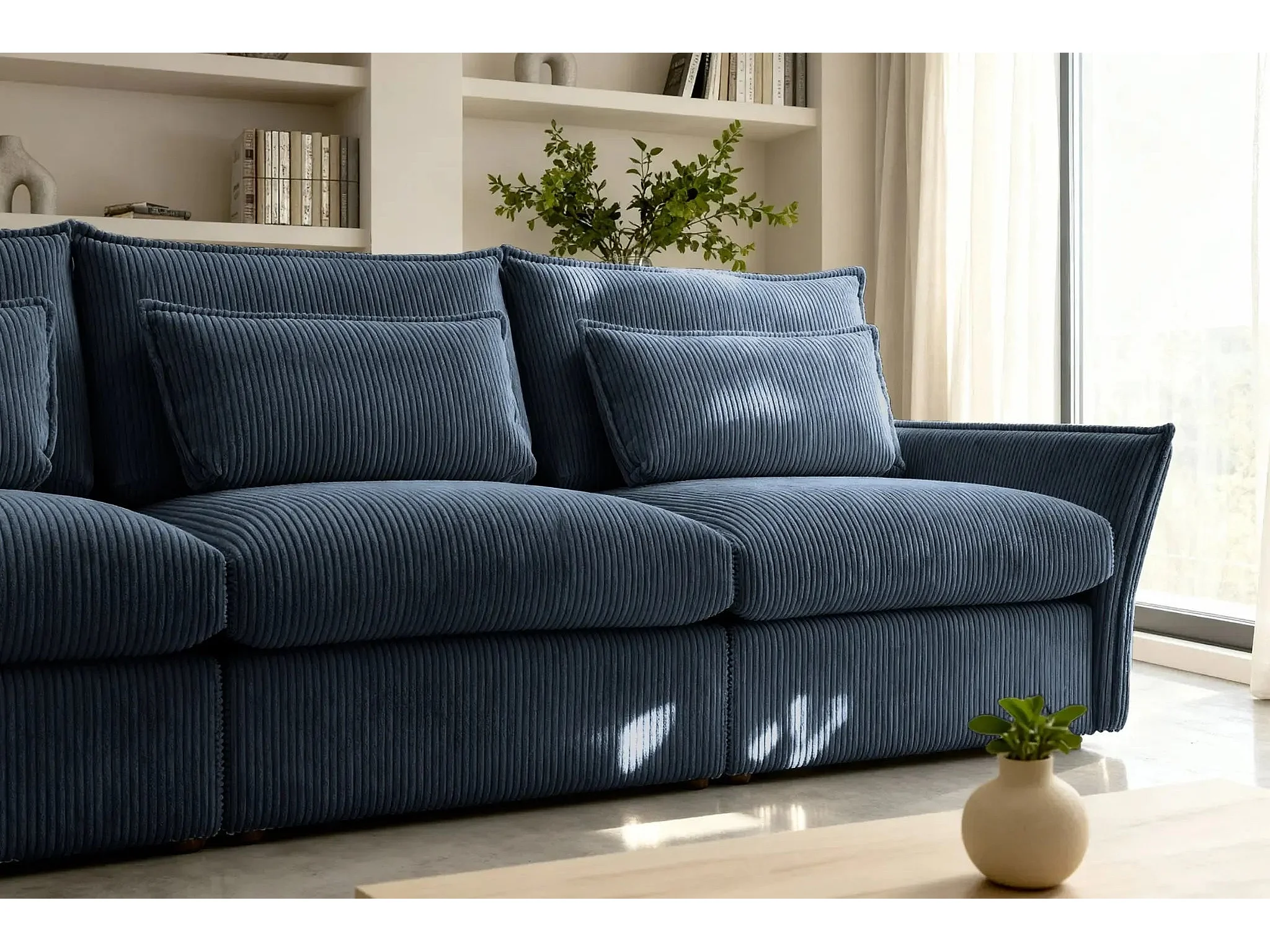 ANGELE - Canapé droit velours côtelé 3 places - Bleu