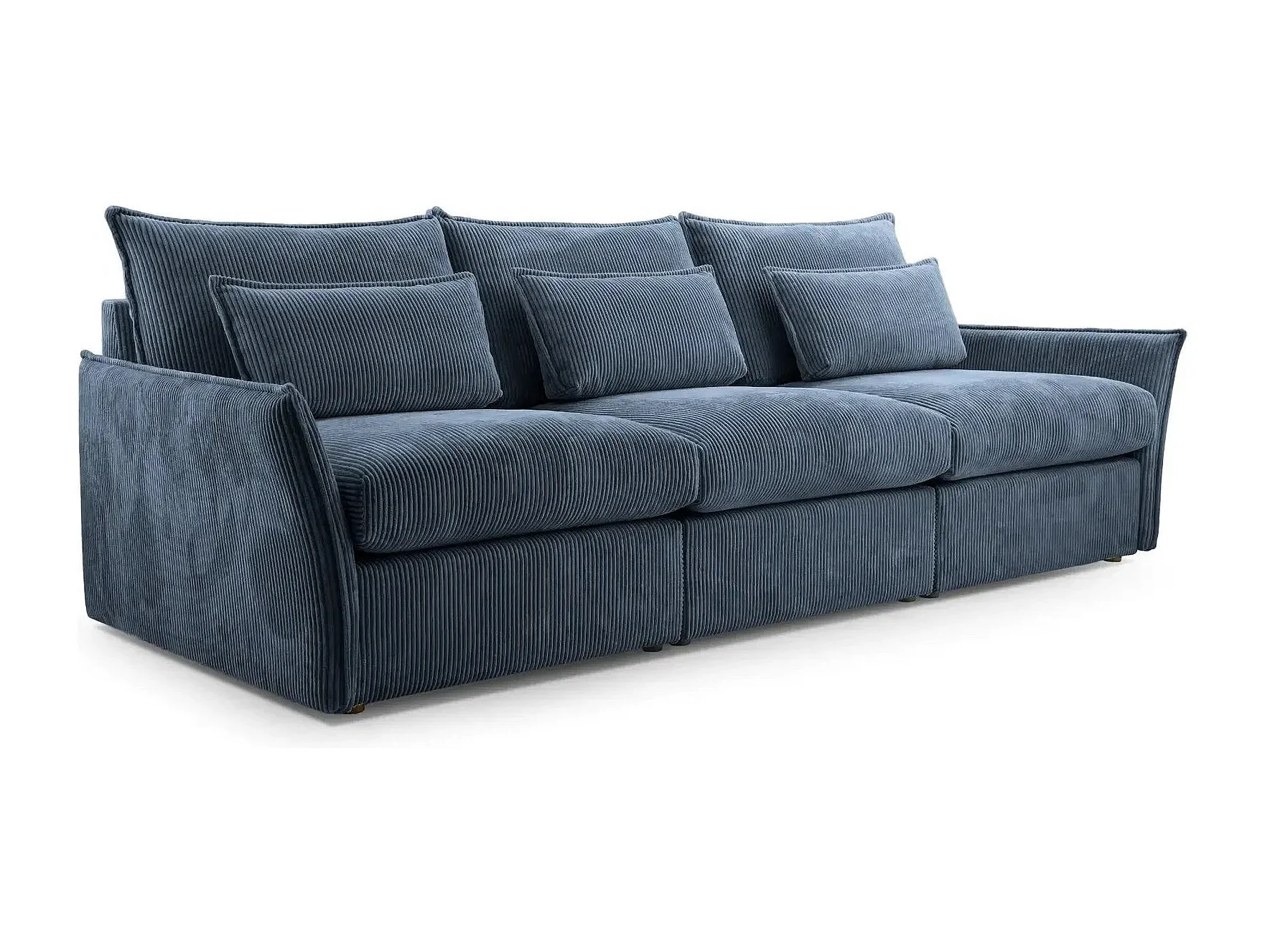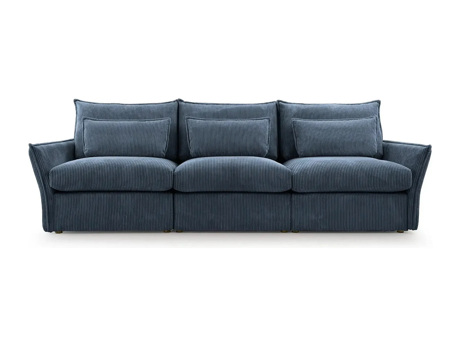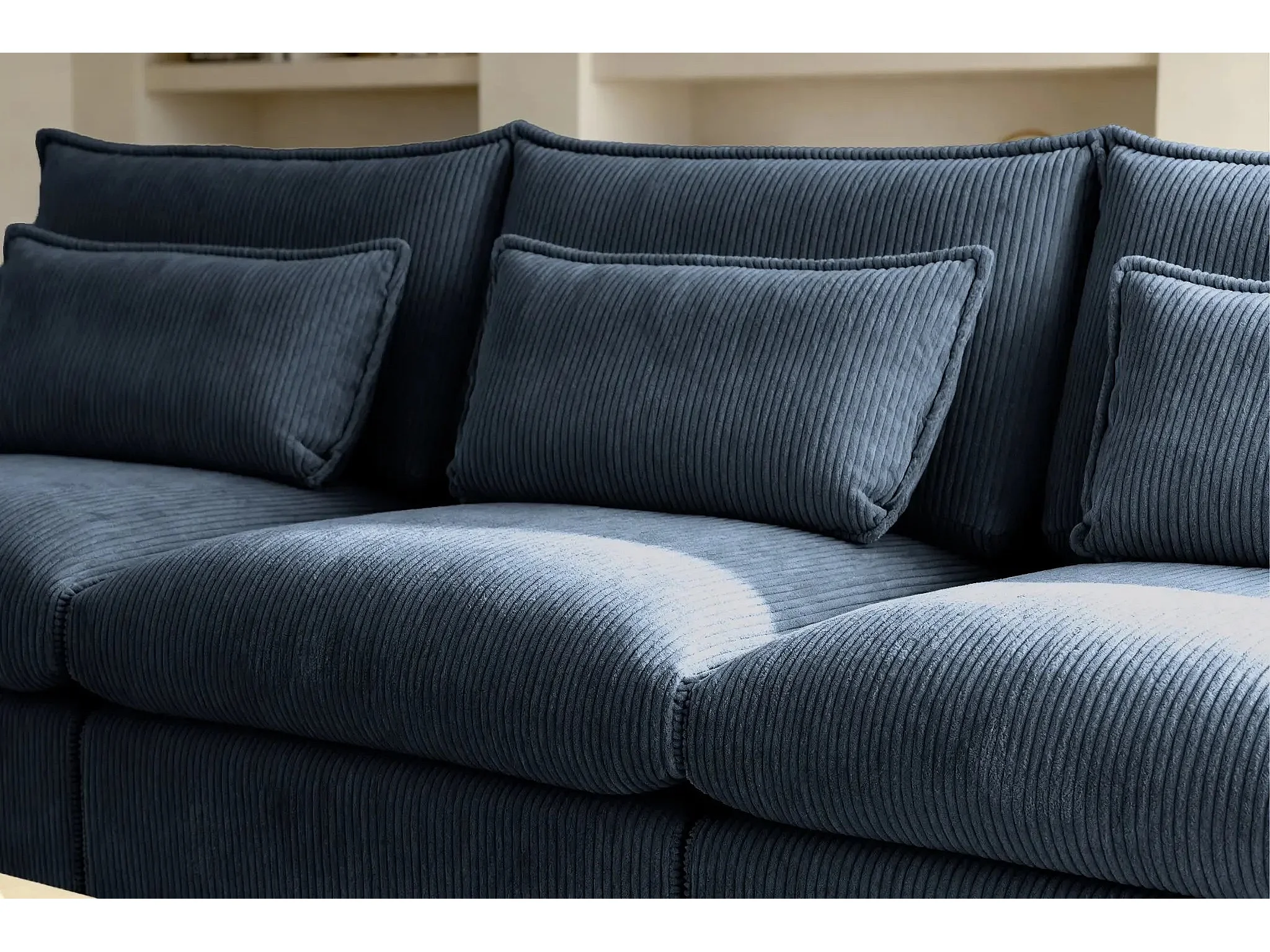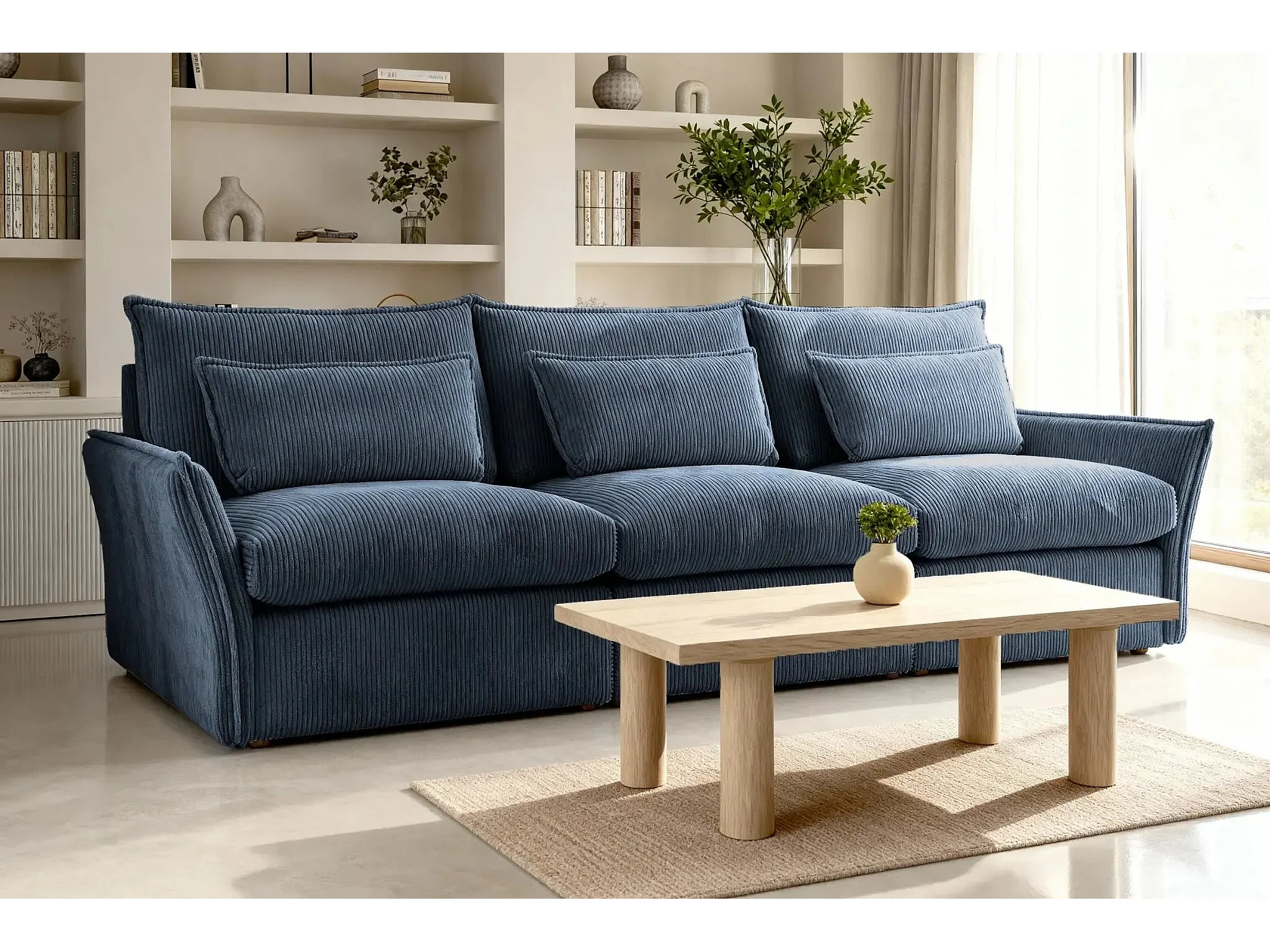 ANGELE - Canapé droit velours côtelé 3 places - Bleu