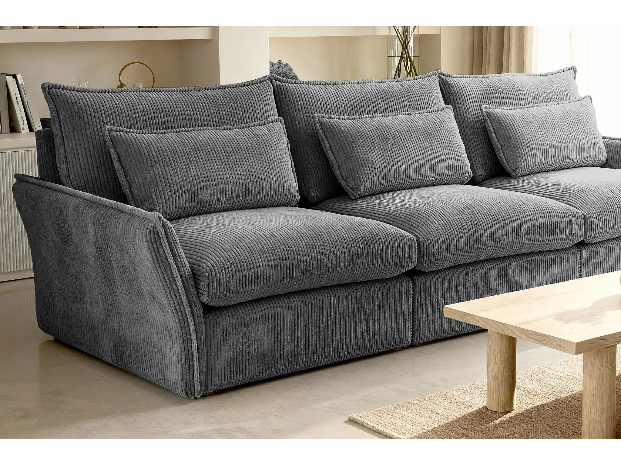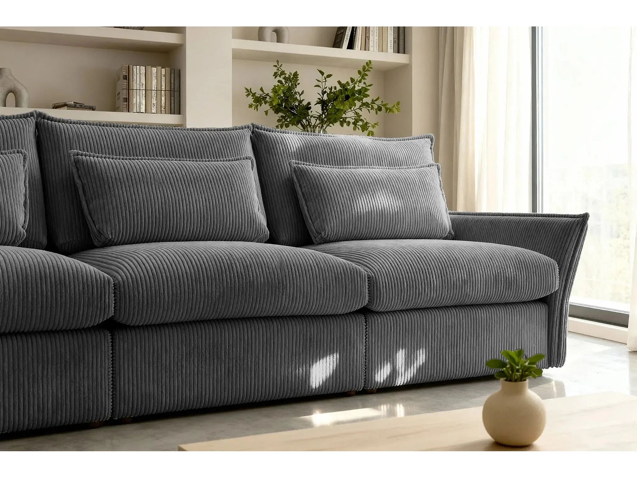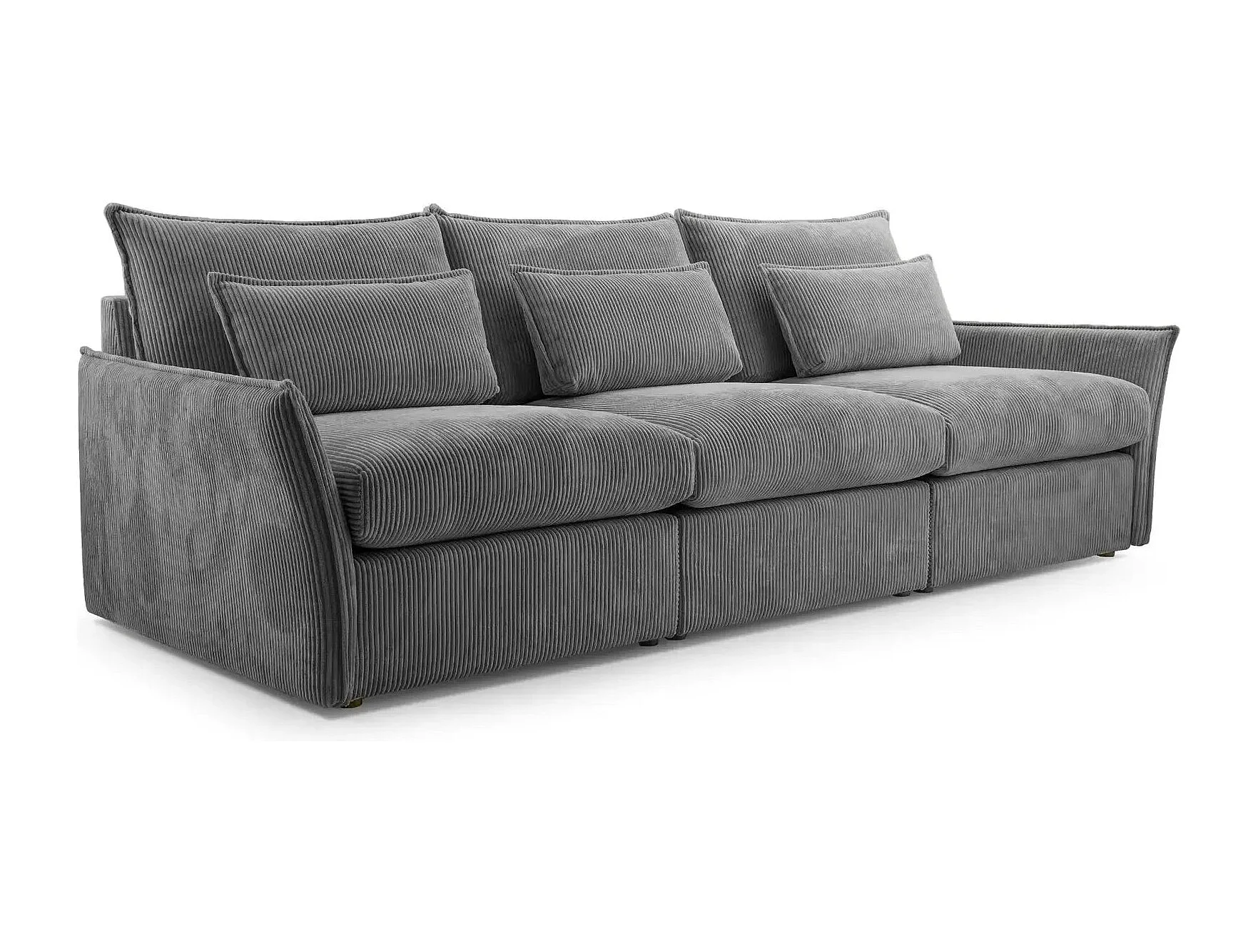 ANGELE - Canapé droit velours côtelé 3 places - Gris foncé