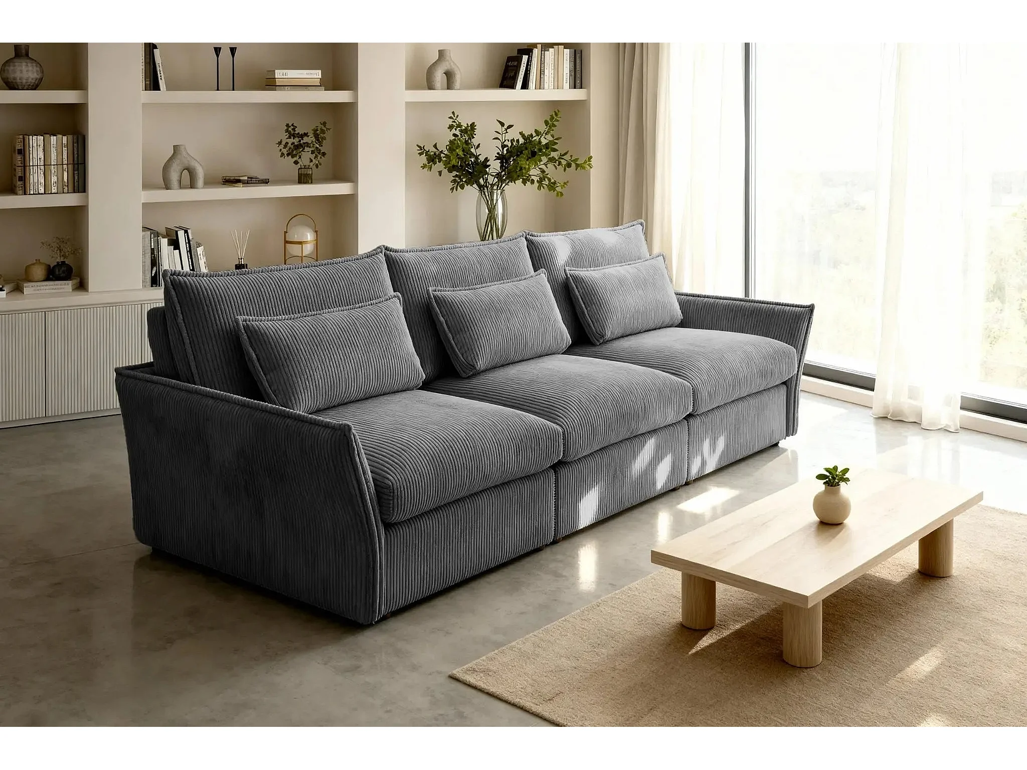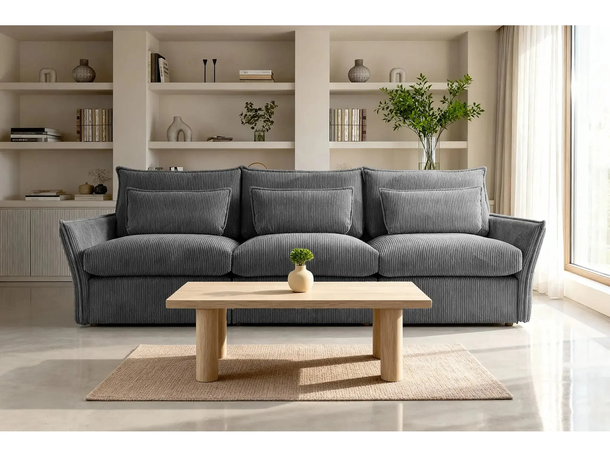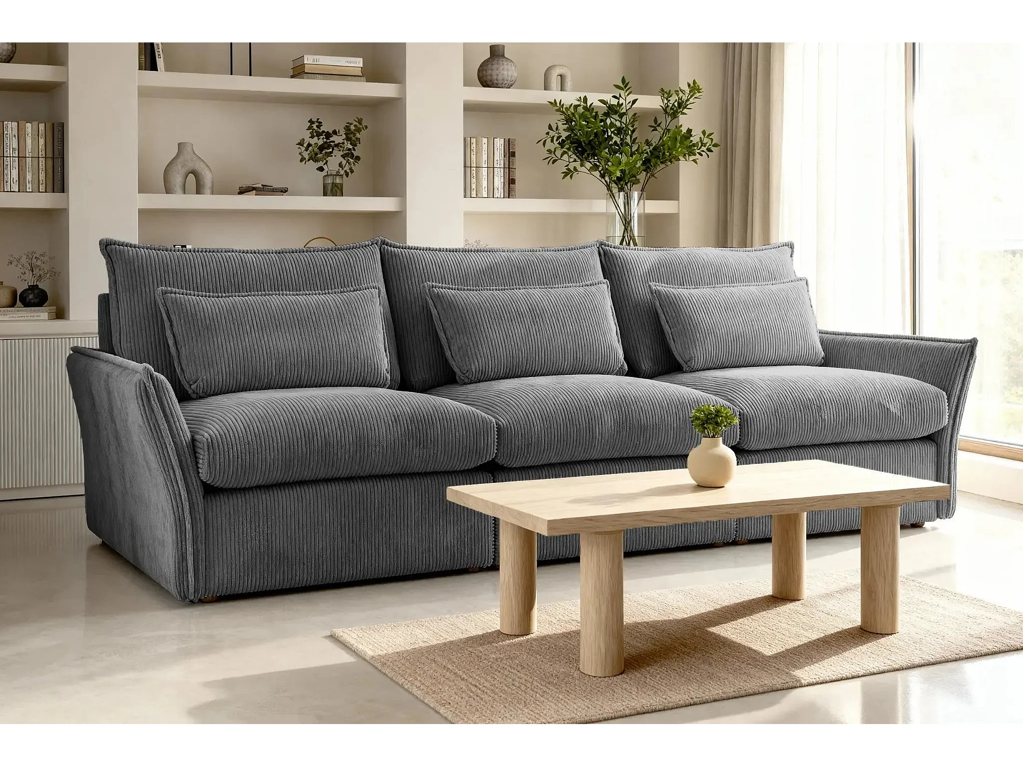 ANGELE - Canapé droit velours côtelé 3 places - Gris foncé