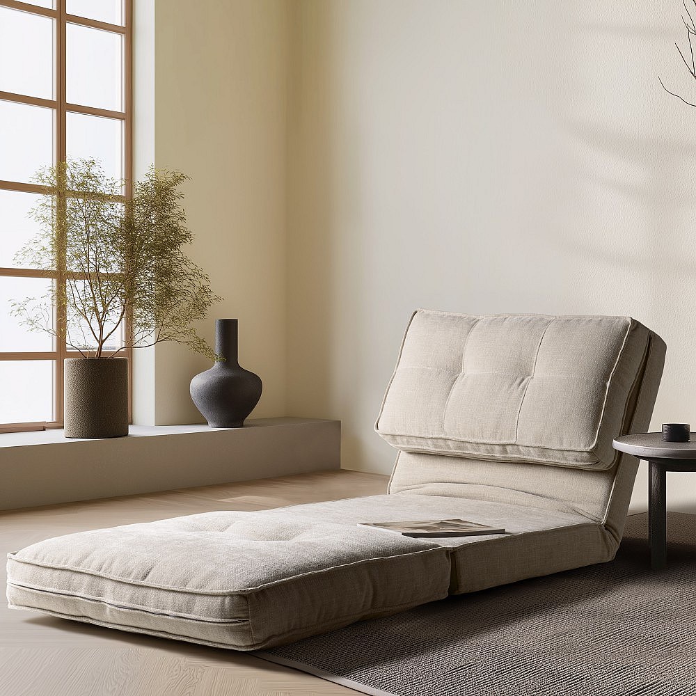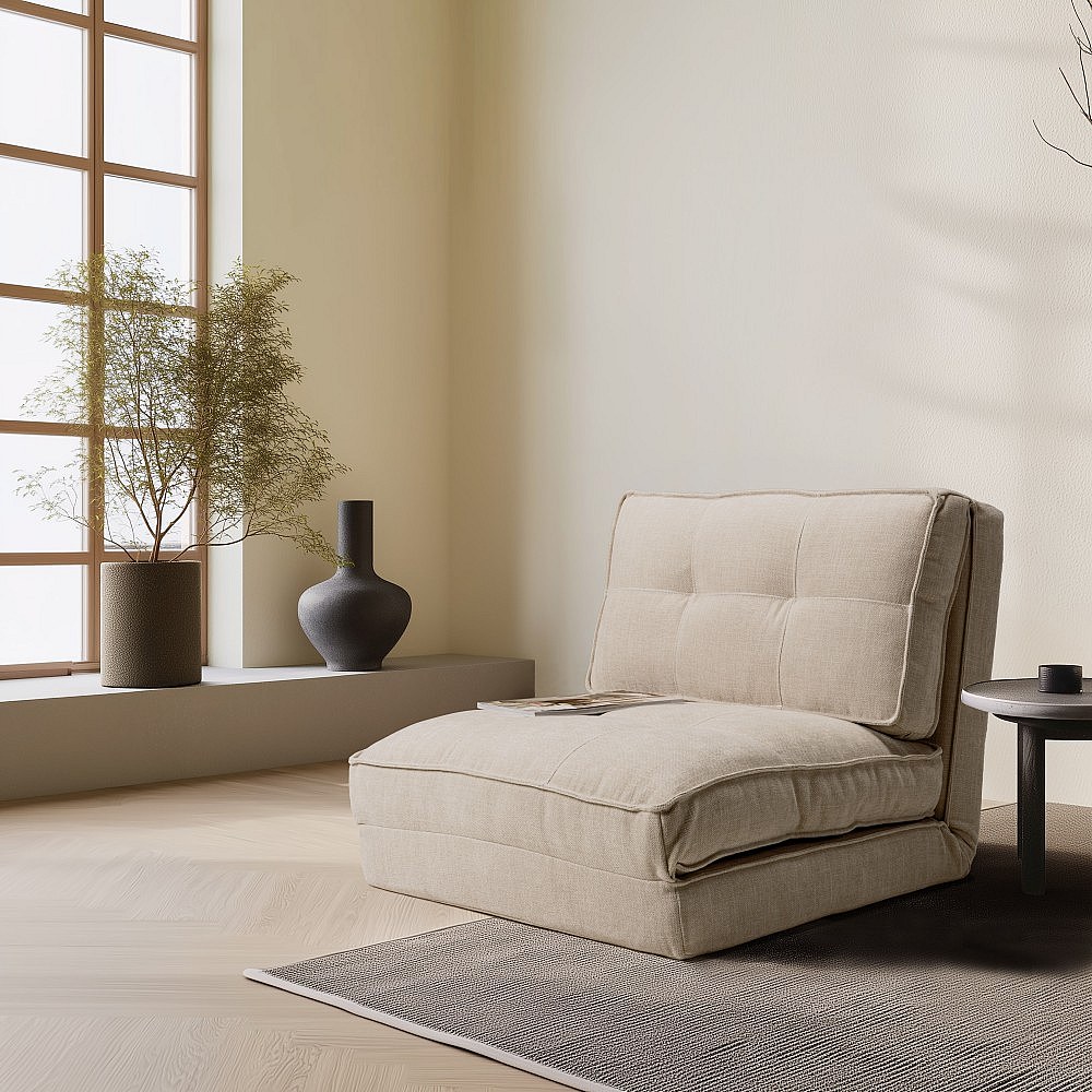 ANGELE - Chauffeuse convertible 1 place en tissu couleur écru