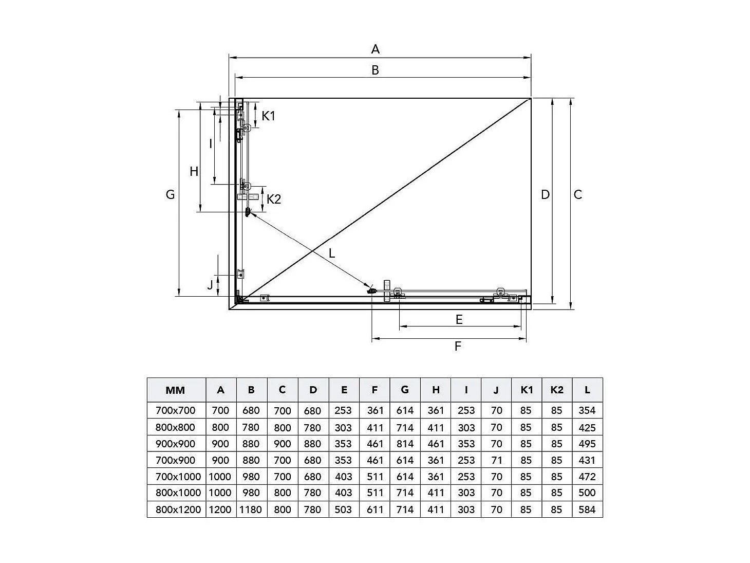 Angle Carré Design 70X70 Cadre Noir Opaque Verre Trempé Mat 6 Mm | City