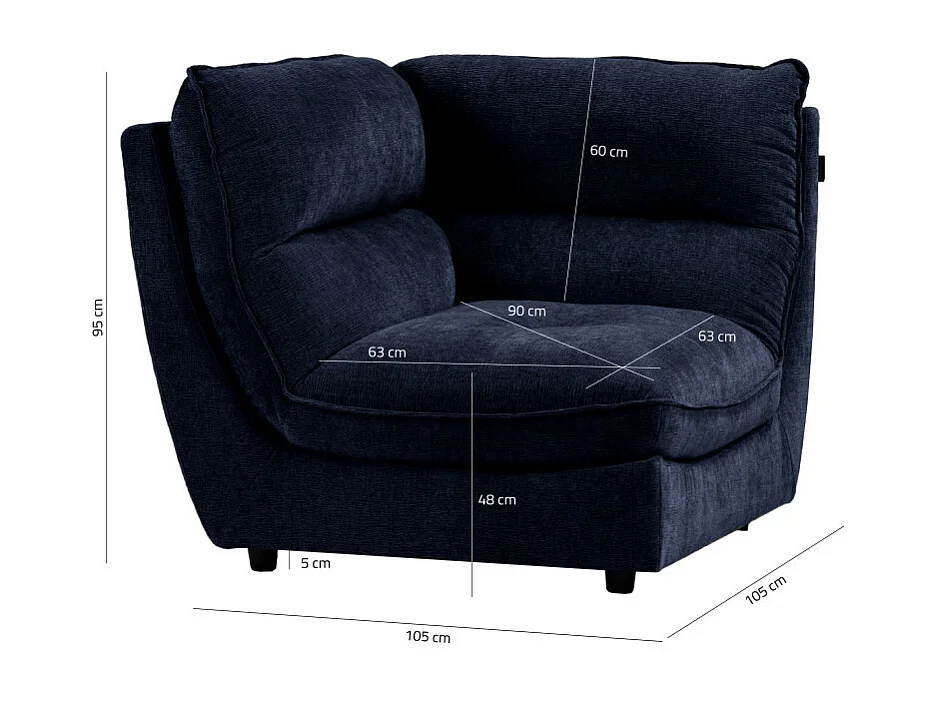 Angle pour canapé modulable en tissu doux bleu nuit - CHARLES