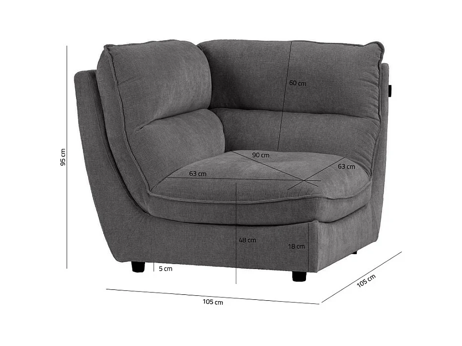 Angle pour canapé modulable en tissu doux gris foncé - CHARLES