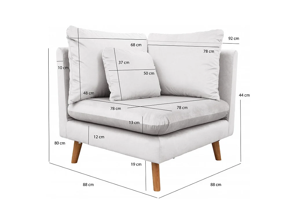 Angle pour canapé modulable en velours gris clair - LASSIE