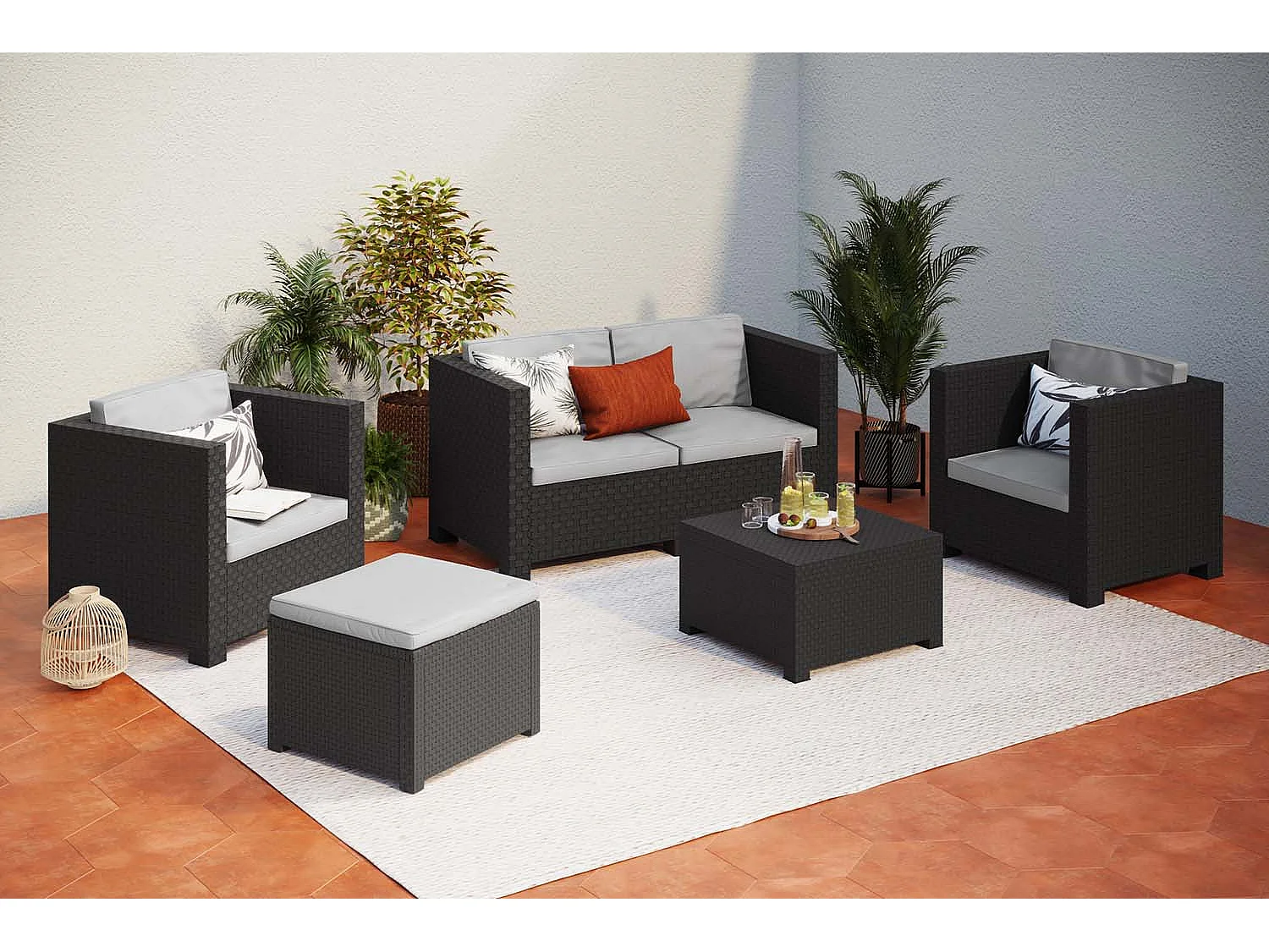 Salon de jardin 5 places effet résine tressée gris ANKARA