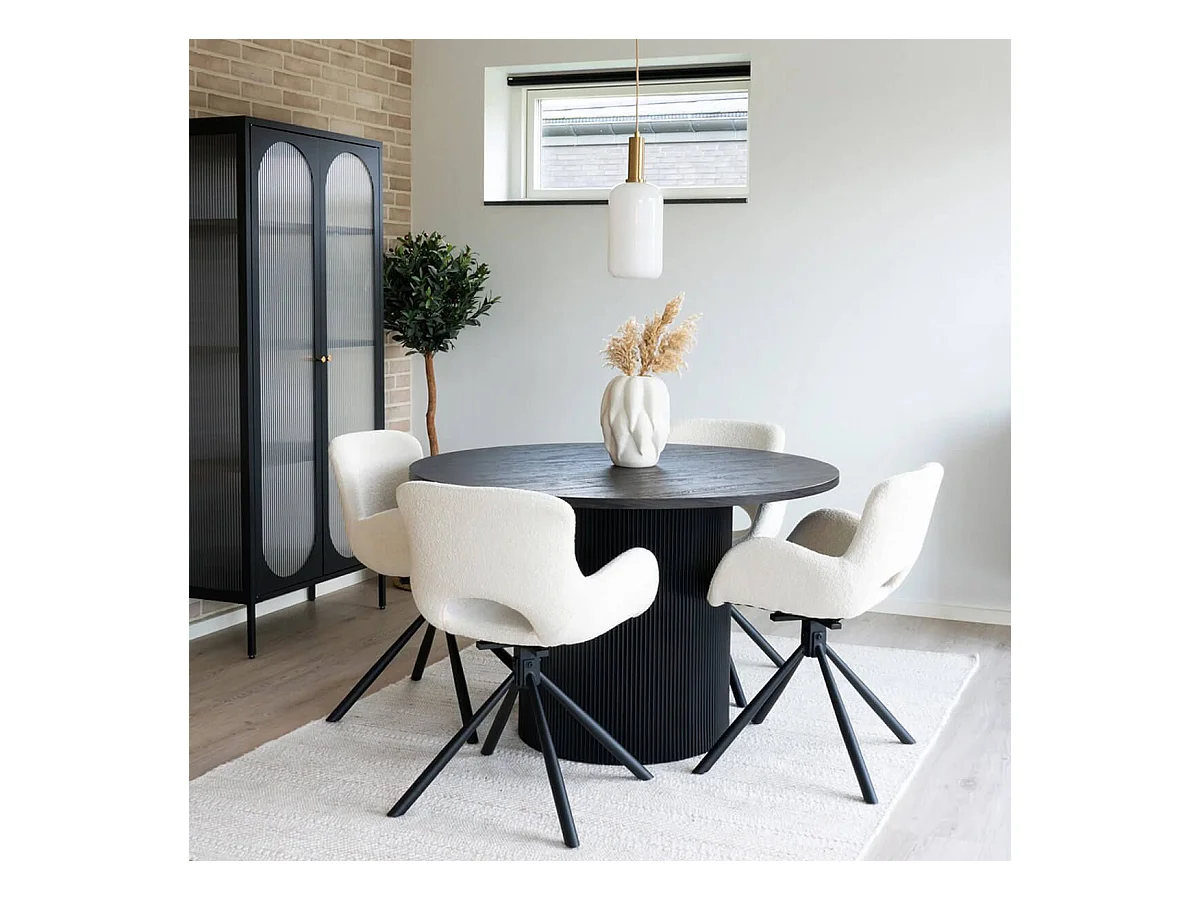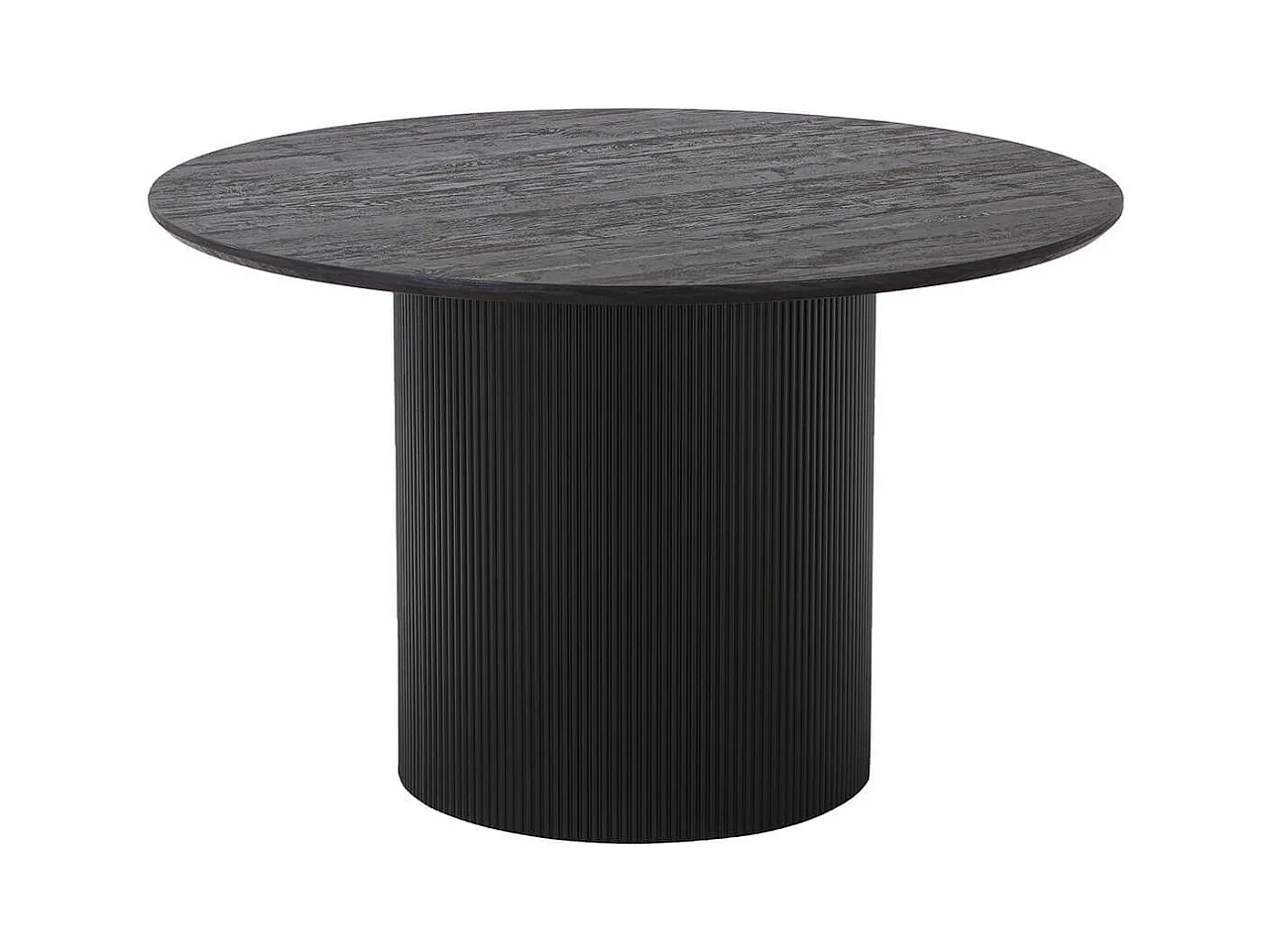 ANKARA - Table repas Ronde 120cm Pieds Relief MDF Effet bois foncé