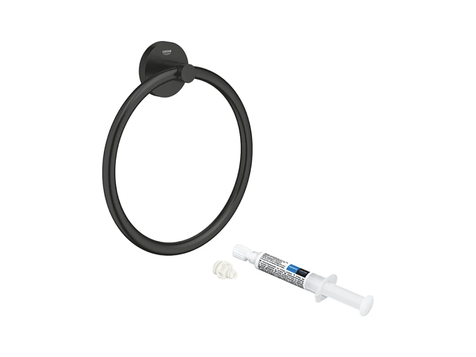 Anneau porte serviettes GROHE Start noir mat + colle GROHE QuickGlue