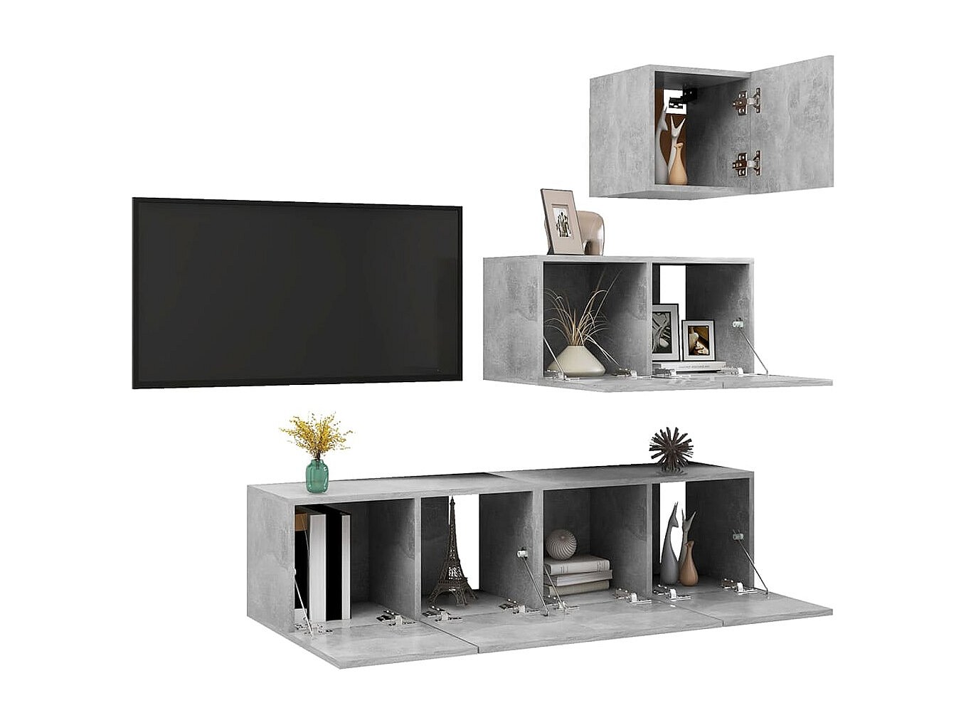 Antelope Ensemble de meubles TV 4 pcs Gris béton Bois d'ingénierie