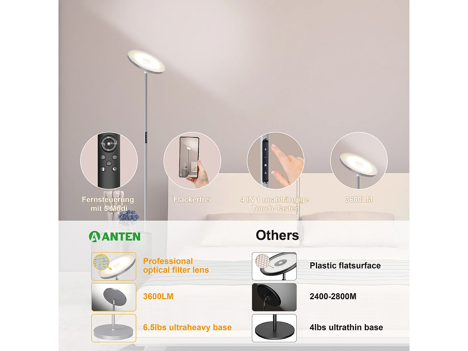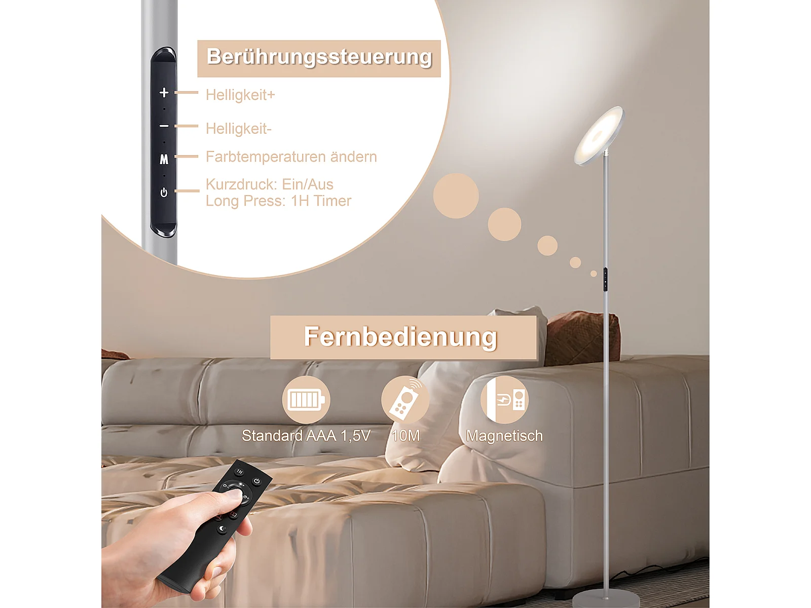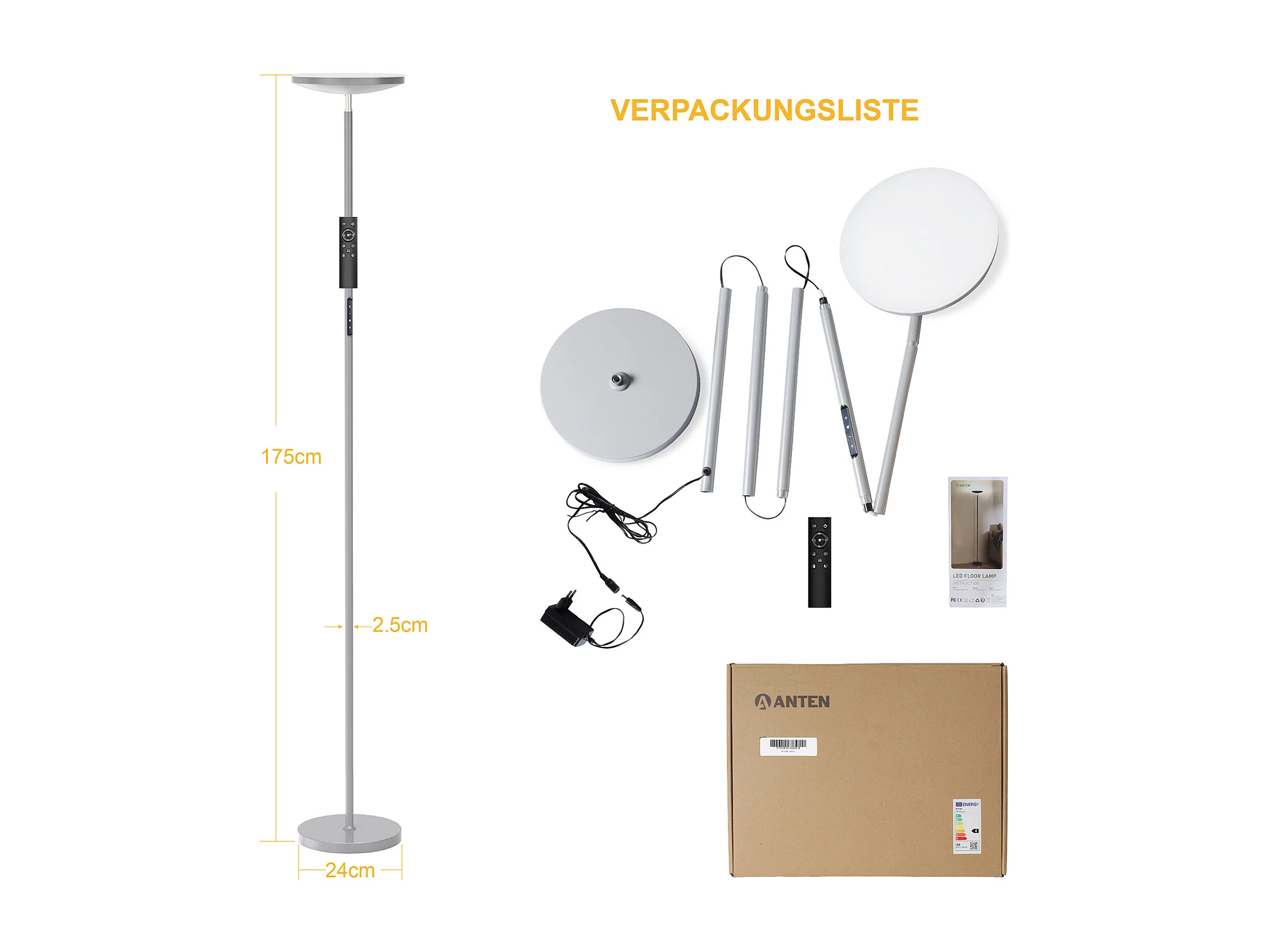 Anten Lampadaire LED, 30W/3300M Lumineux Lampadaire,3000K-6000K Dimmable Lampe sur Pied avec Télécommande et Contrôle Tactile,pour Chambre et Bureau