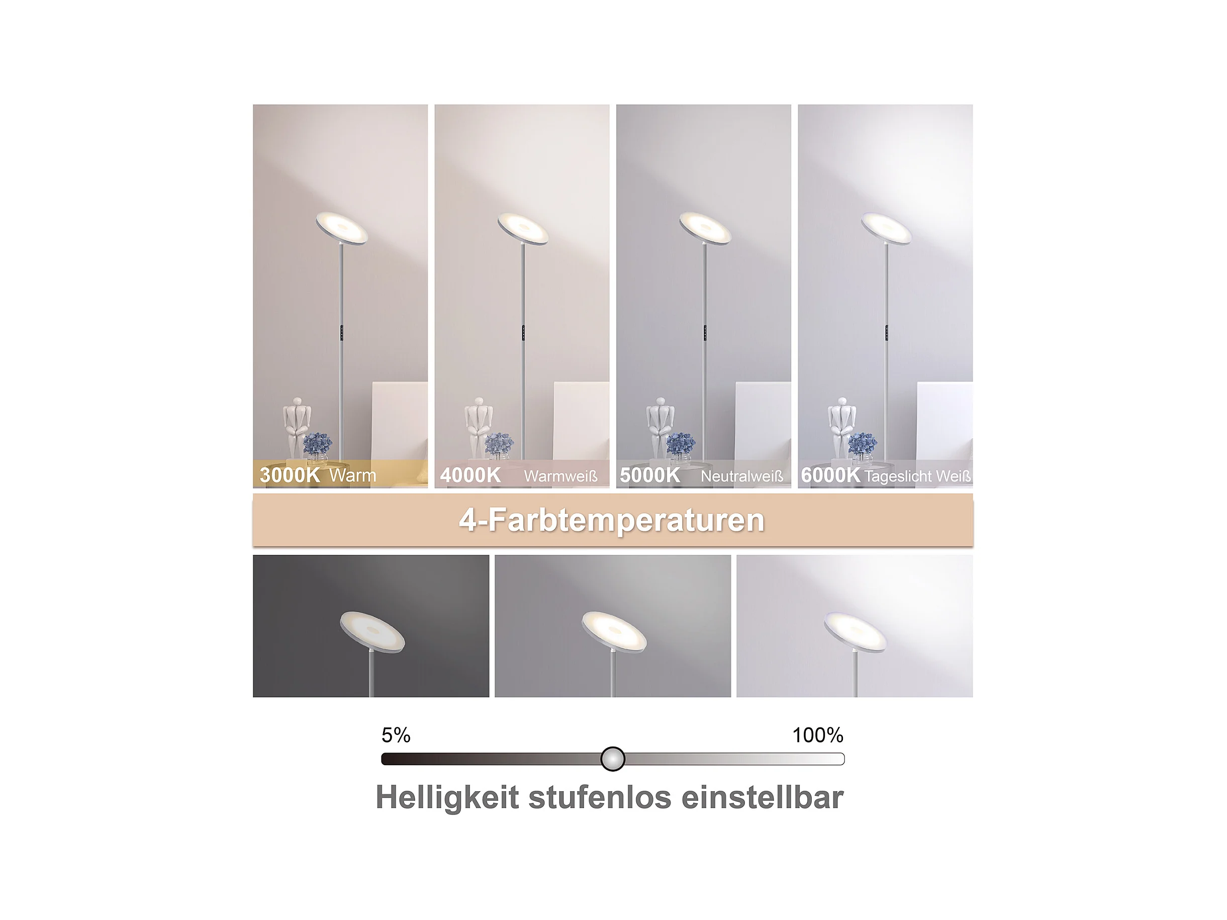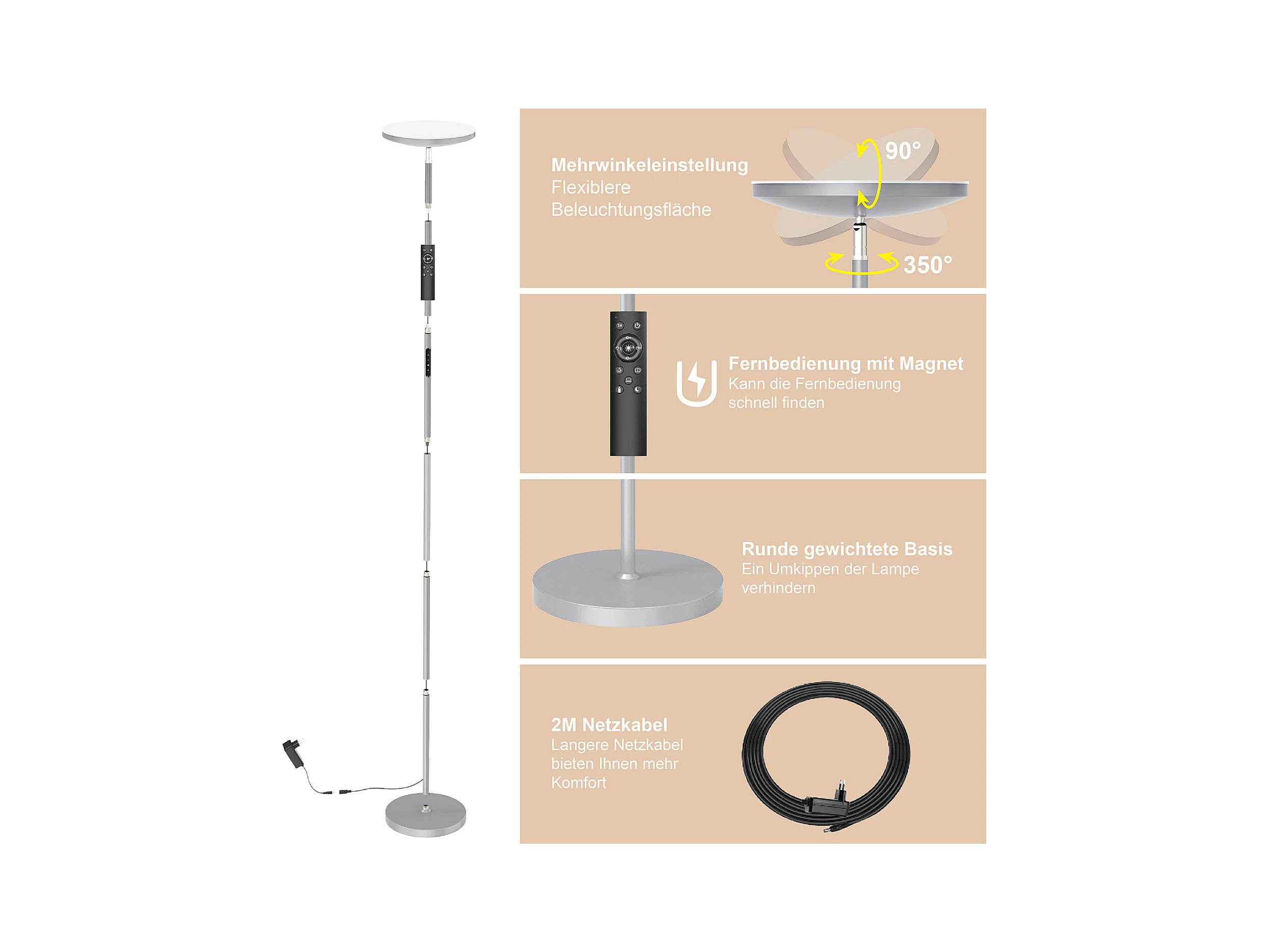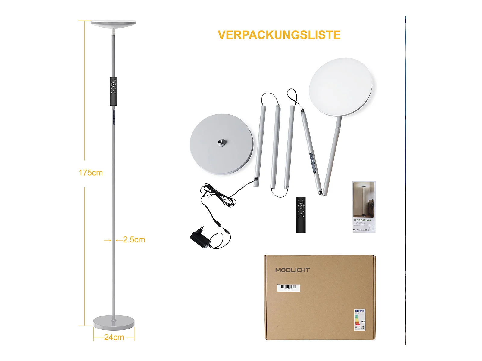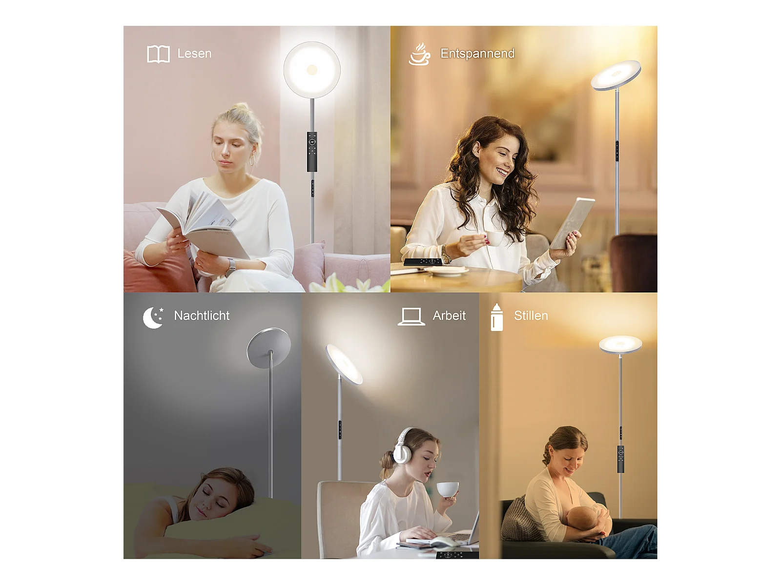 Anten Lampadaire LED, 30W/3300M Lumineux Lampadaire,3000K-6000K Dimmable Lampe sur Pied avec Télécommande et Contrôle Tactile,pour Chambre et Bureau