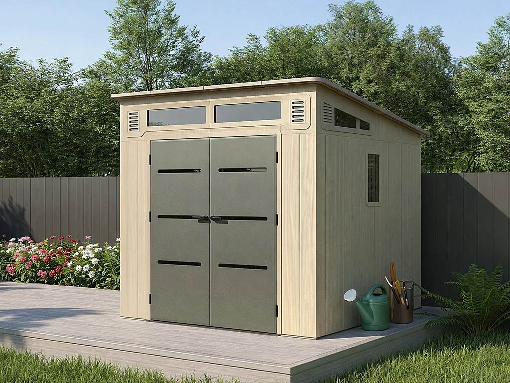 Abri de jardin en résine monopente beige et gris 6,5 m² avec plancher - épaisseur 22 mm - ANTEVA